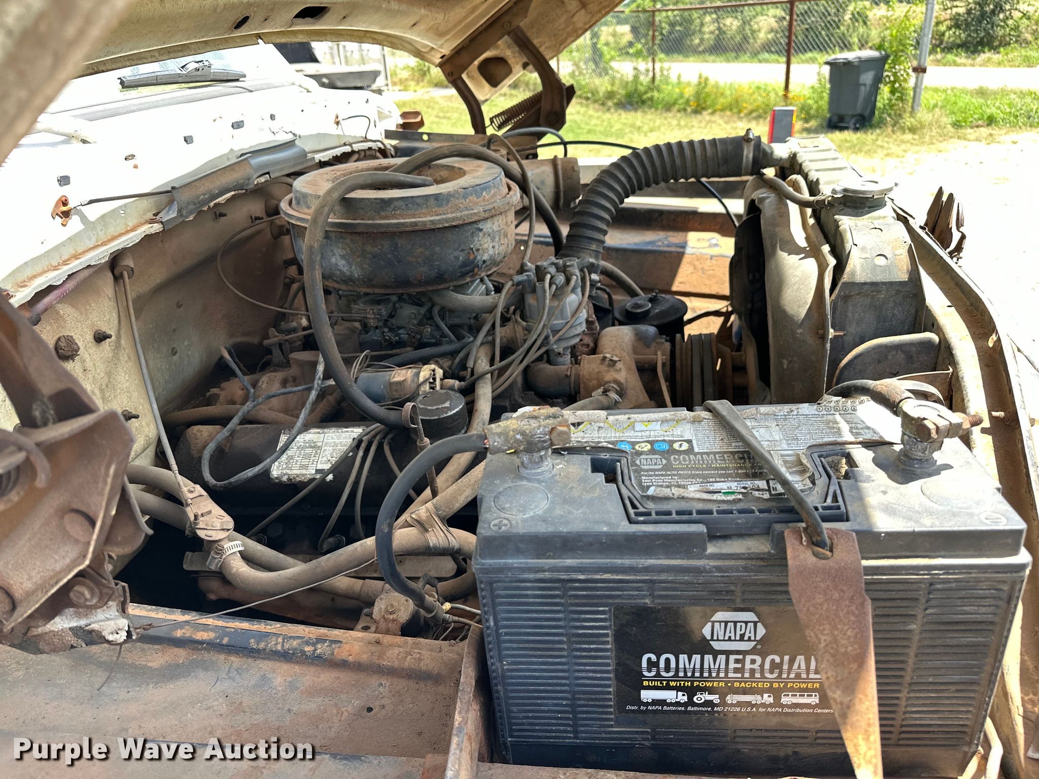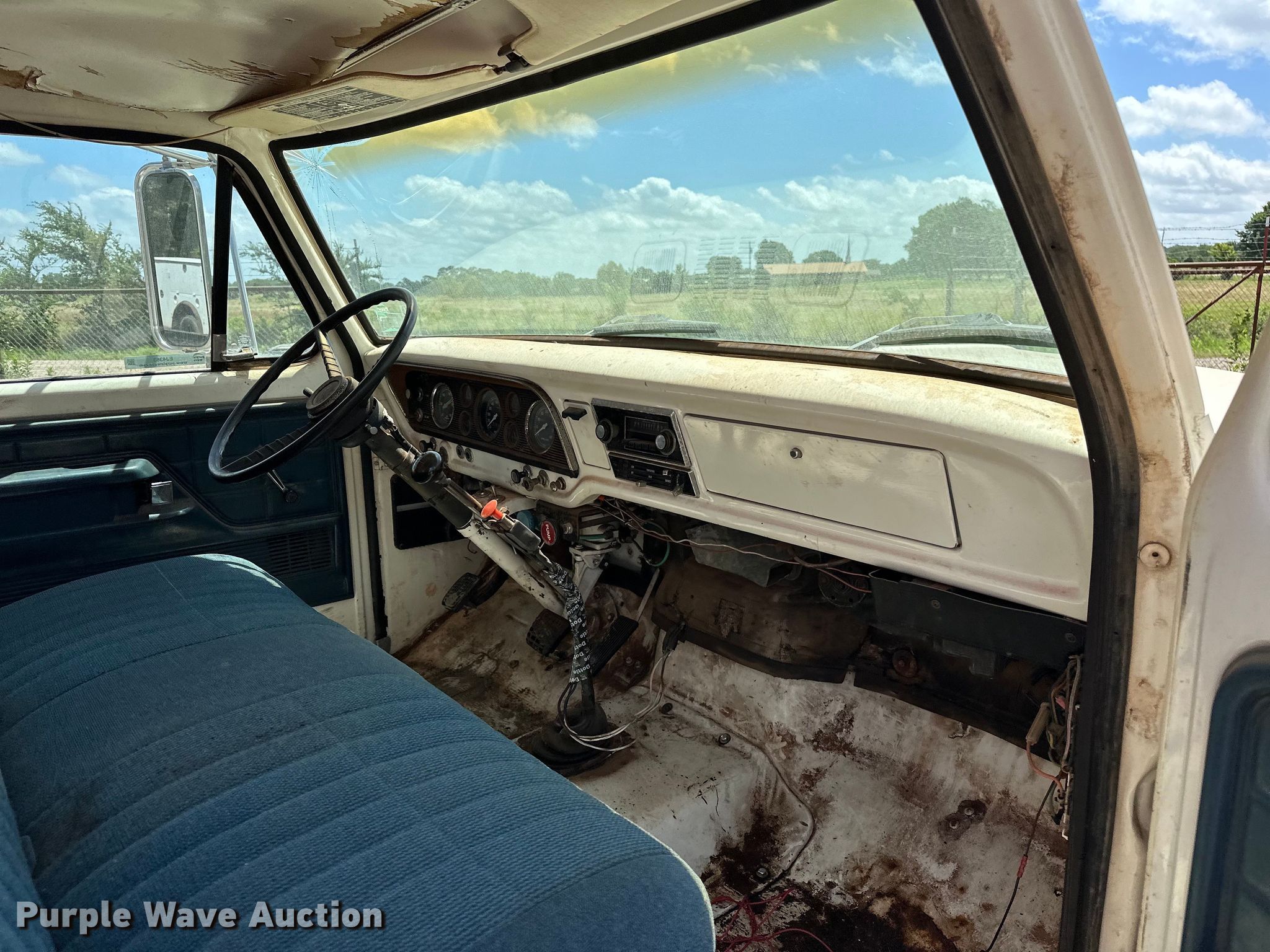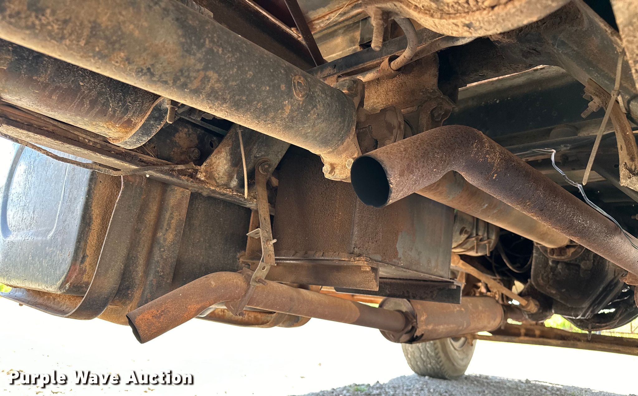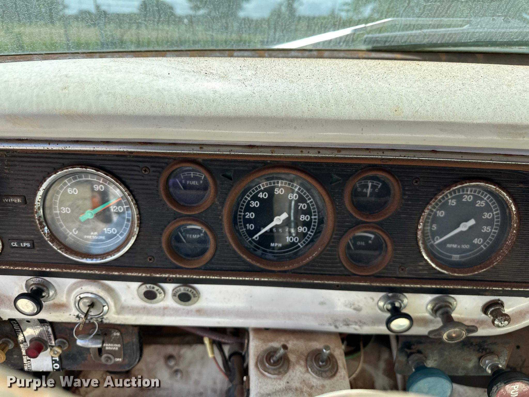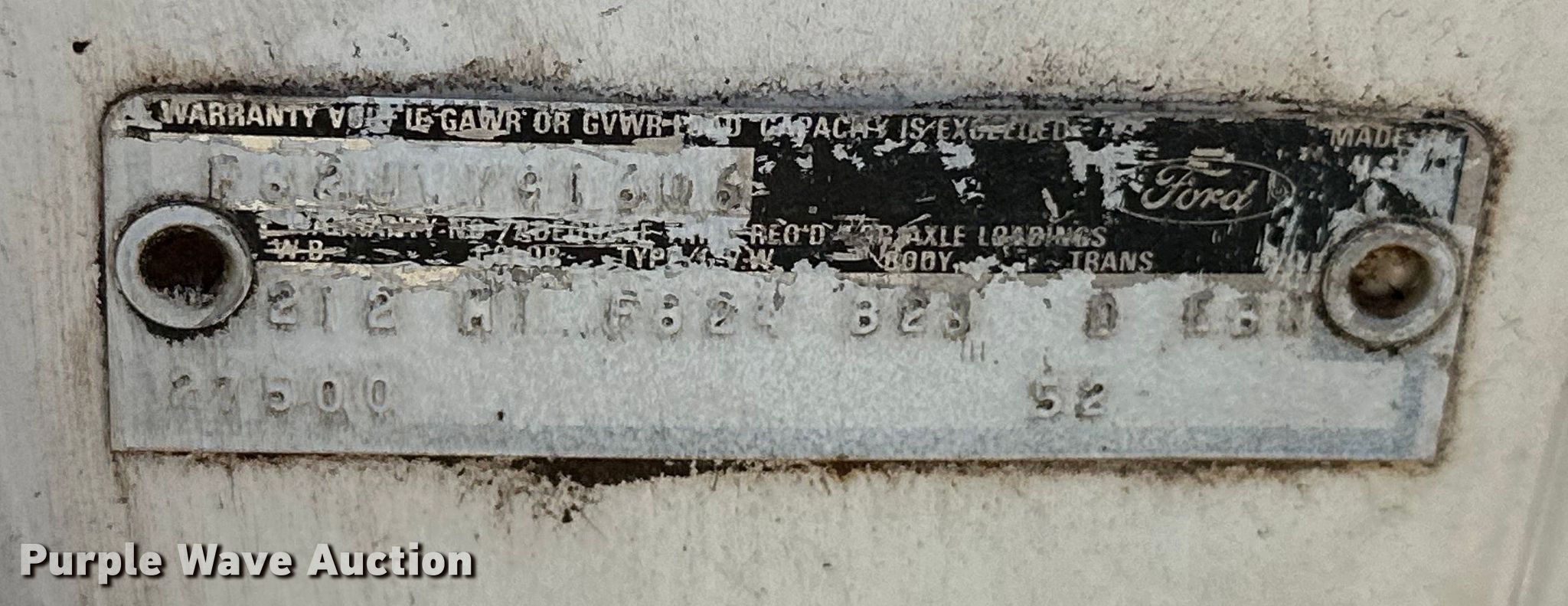 1977 Ford F800 flatbed truck. Miles: 88,553 on odometer, VIN: F82JVY91606. Engine Ford, Displacement: 477 C.I.D, Cylinders: 8, Fuel type: Gas. Transmission Manual, Speed: 5, plus 2. Chassis Axles: Single, Suspension: Spring, Brakes: Air, PTO, GVWR: 27,500 lbs. Features Dump flatbed Parkhurst, 15' 9" L x 96" W, Removable sides, Ram: Single. Tires Size: 10.00-20. Notes Windshield chipped or cracked, Engine issues, misfire. Oklahoma classic title. Title distribution may be delayed up to 14 days from verification of funds. Checotah, OK 74426