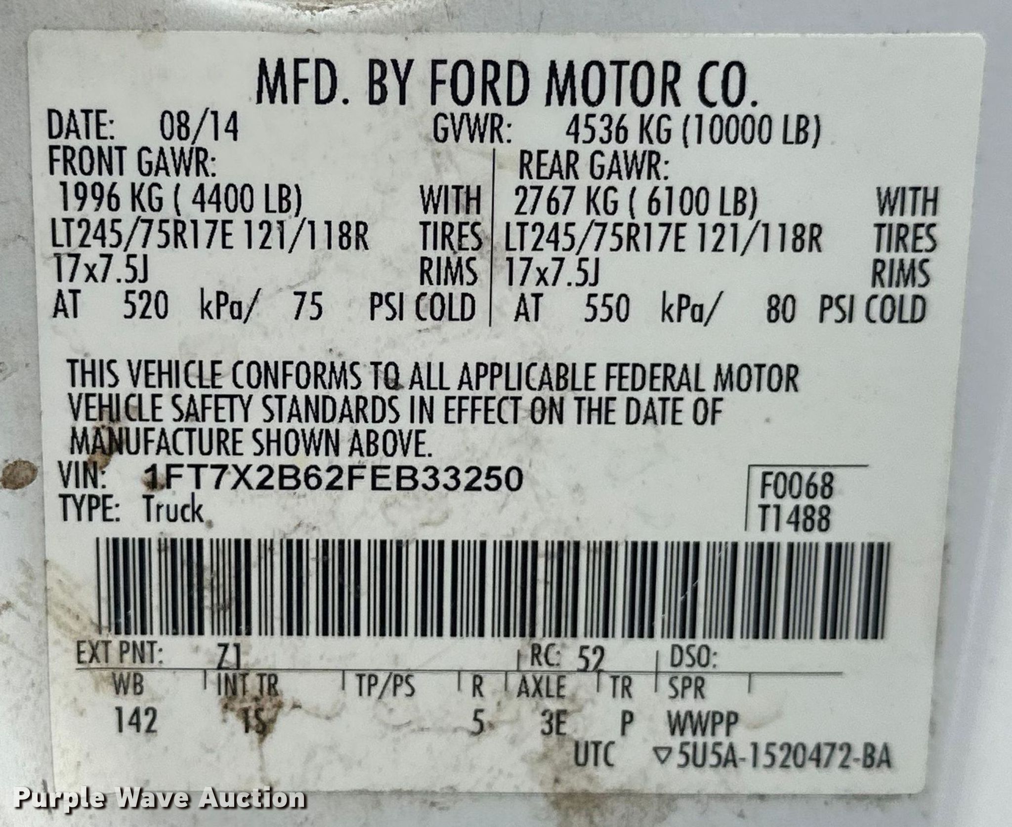 Purple Wave is selling a used 3/4 or 1 Ton Pickup or Van in Oklahoma. This item is a 2015 Ford F250 Super Duty SuperCab pickup truck with the following: Miles: 168,378 on odometer, VIN: 1FT7X2B62FEB33250