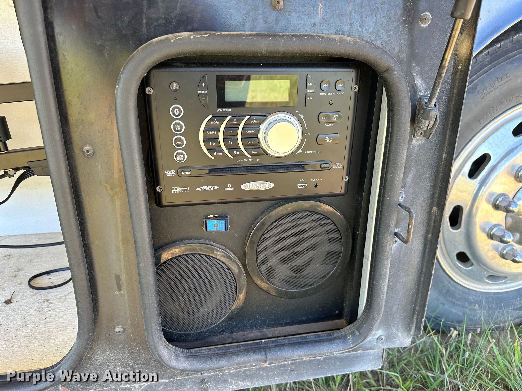 2007 Fleetwood Discovery RV. Miles: 80,082 on odometer, Camper length: 41', VIN: 4UZACJDC37CZ34521, Insurance salvage unit claim #: 4-805636. Engine Caterpillar, Cylinders: 6, Fuel type: Diesel, HP: 330. Transmission Allison, Automatic. Chassis Axles: Single, Suspension: Air, Brakes: Air, GVWR: 31,000 lbs, GAWR: 19,000 lbs. Interior Kitchen: Sink, Microwave, Oven, Stove: Propane, Living room: Pull out couch, Bathroom, Washer, Dryer, Beds: 1 Bed type: Queen, TVs: 2, Satellite, Sound system, Heater, AC units: 2. Features Slide outs: 3, Awnings: 2 Awning type: Manual, Auto leveler, Generator Onan Quite Diesel 7500, Fuel type: Diesel, kW: 7.5, Rear hitch. Tires Size: 275/70R22.5, Brand: Hankook. Notes Tornado damage, Windshield chipped or cracked, Passenger mirror damaged, Passenger rear slide issues, difficult to slide. Oklahoma title. Oklahoma Farm Bureau Insurance. Seminole, OK 74868