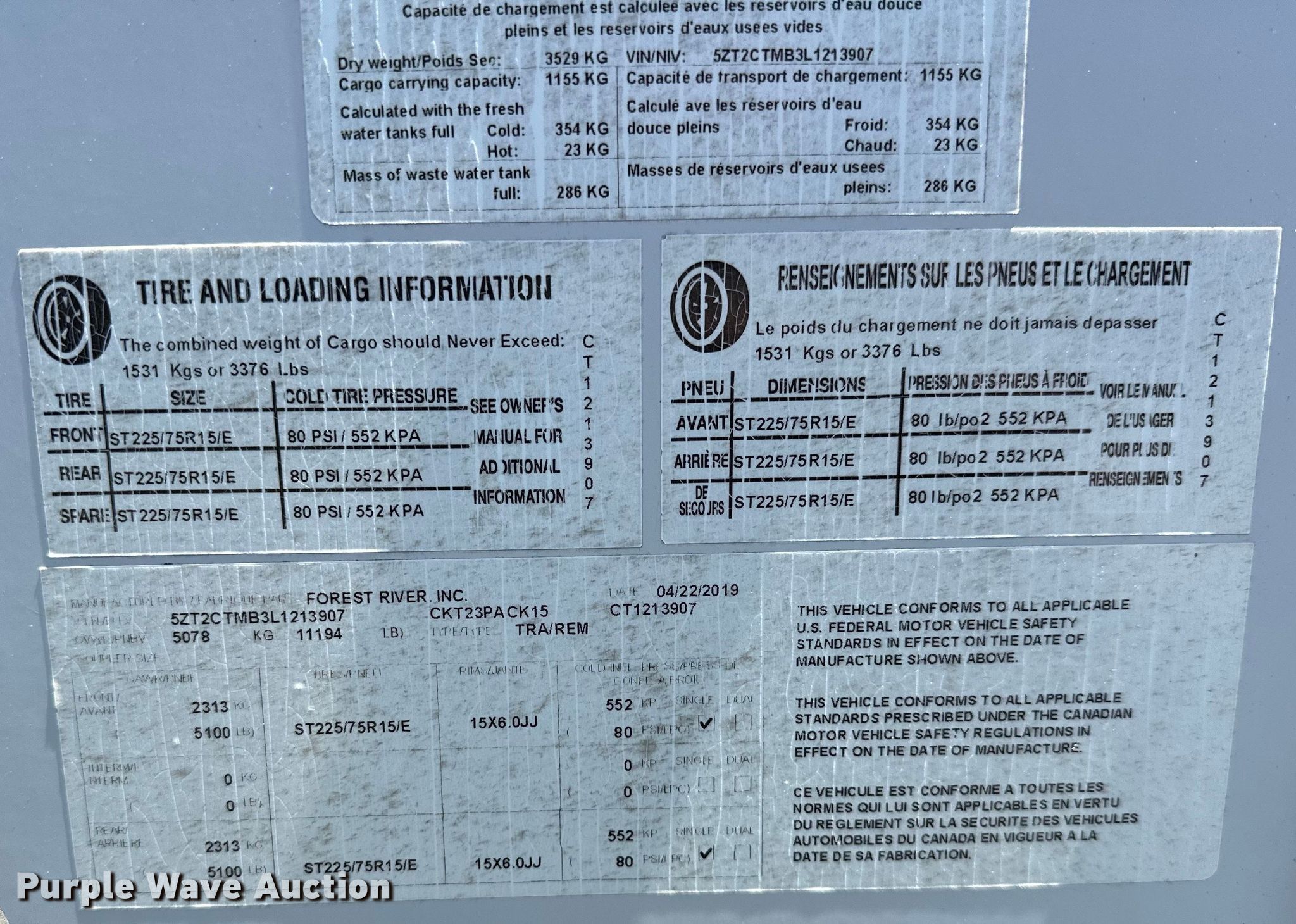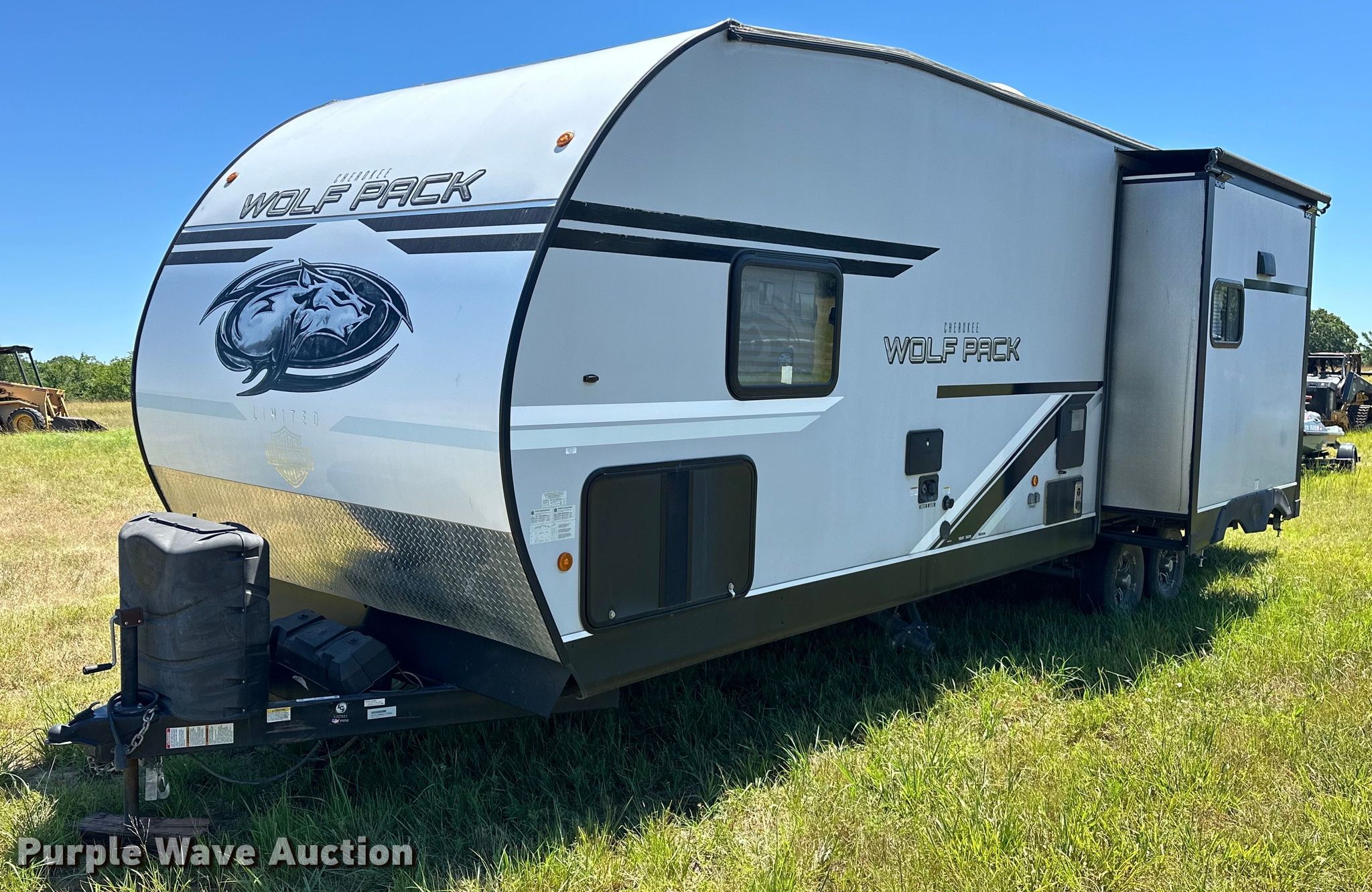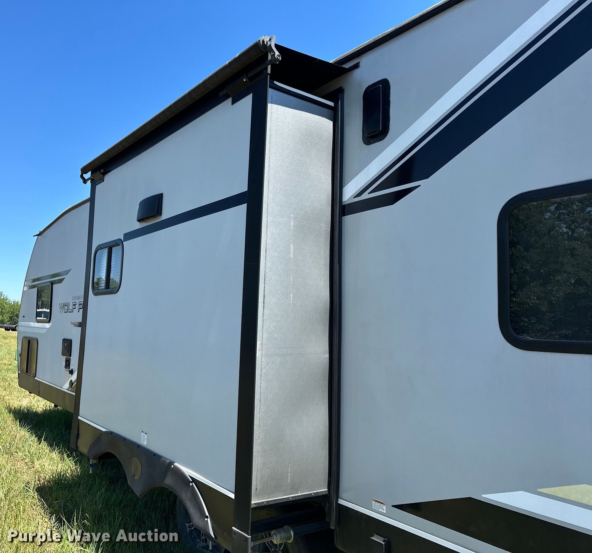 Purple Wave is selling a used RV or Camper in Oklahoma. This item is a 2020 Forrest River Cherokee Wolf Pack camper with the following: Camper length: 33' 6", VIN: 5ZT2CTMB3L1213907, Insurance salvage unit claim #: 4-806139