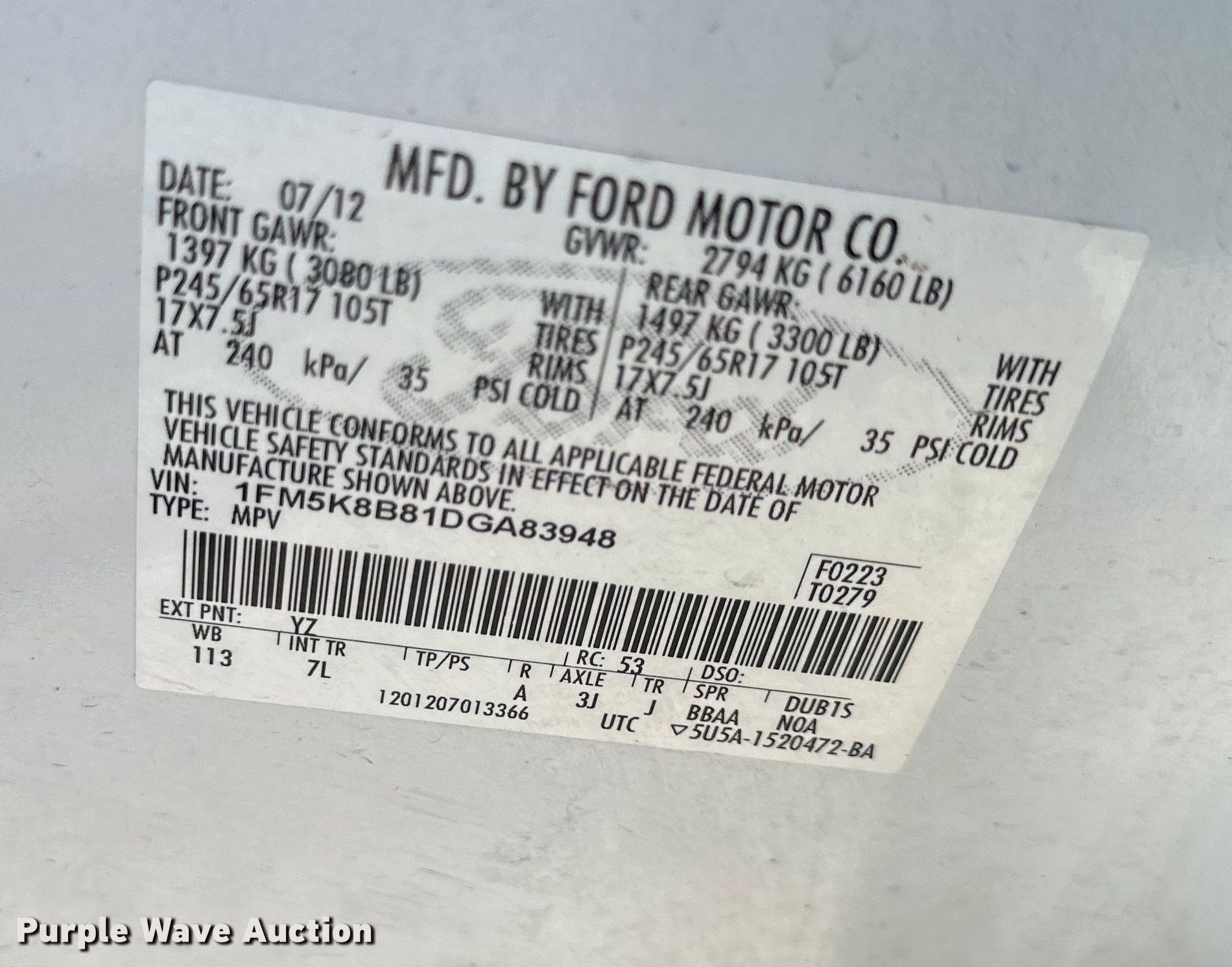 - VIN: 1FM5K8B81DGA83948