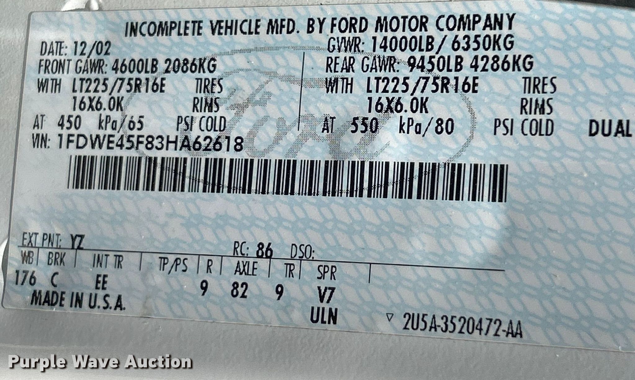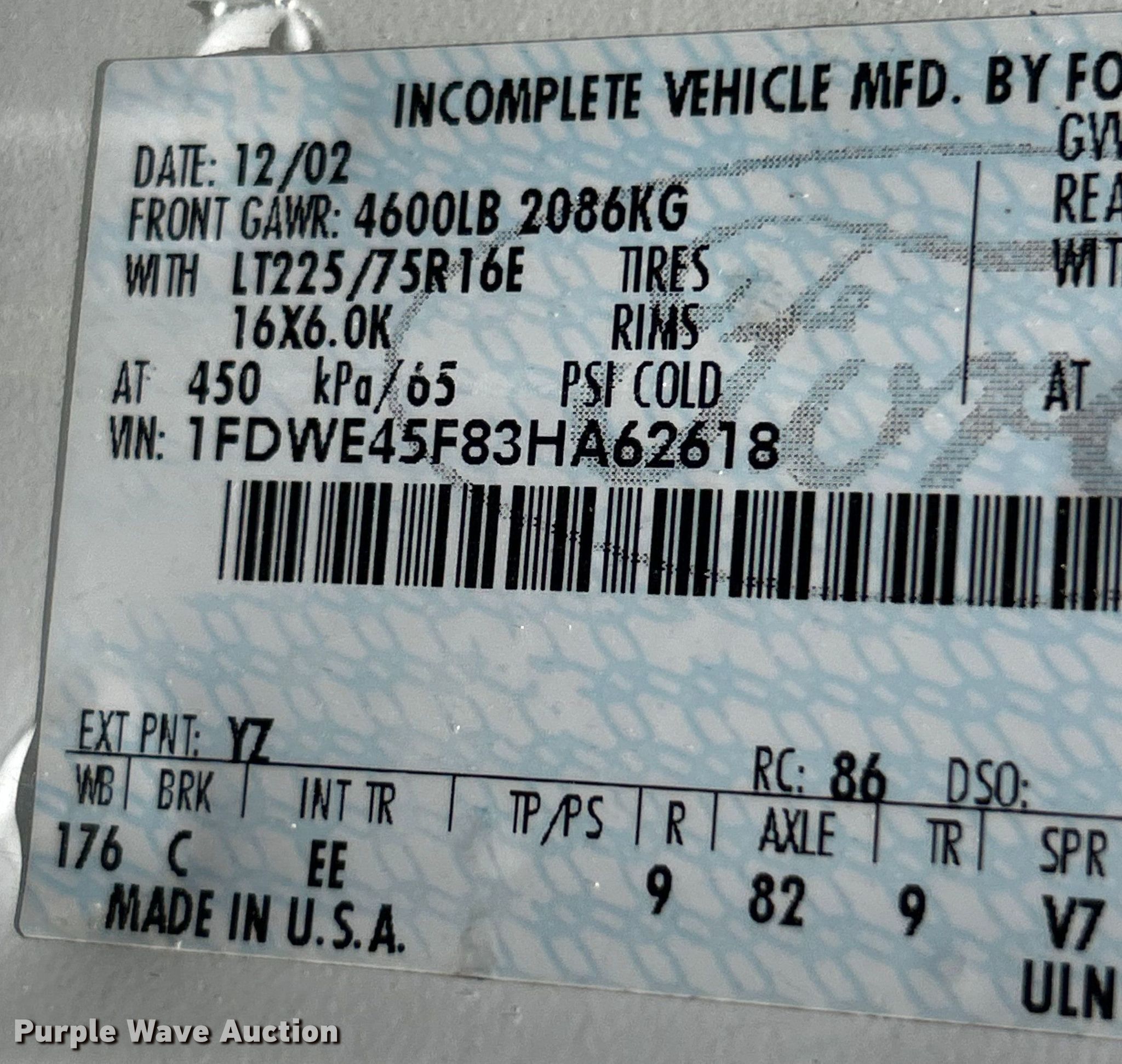- VIN: 1FDWE45F83HA62618