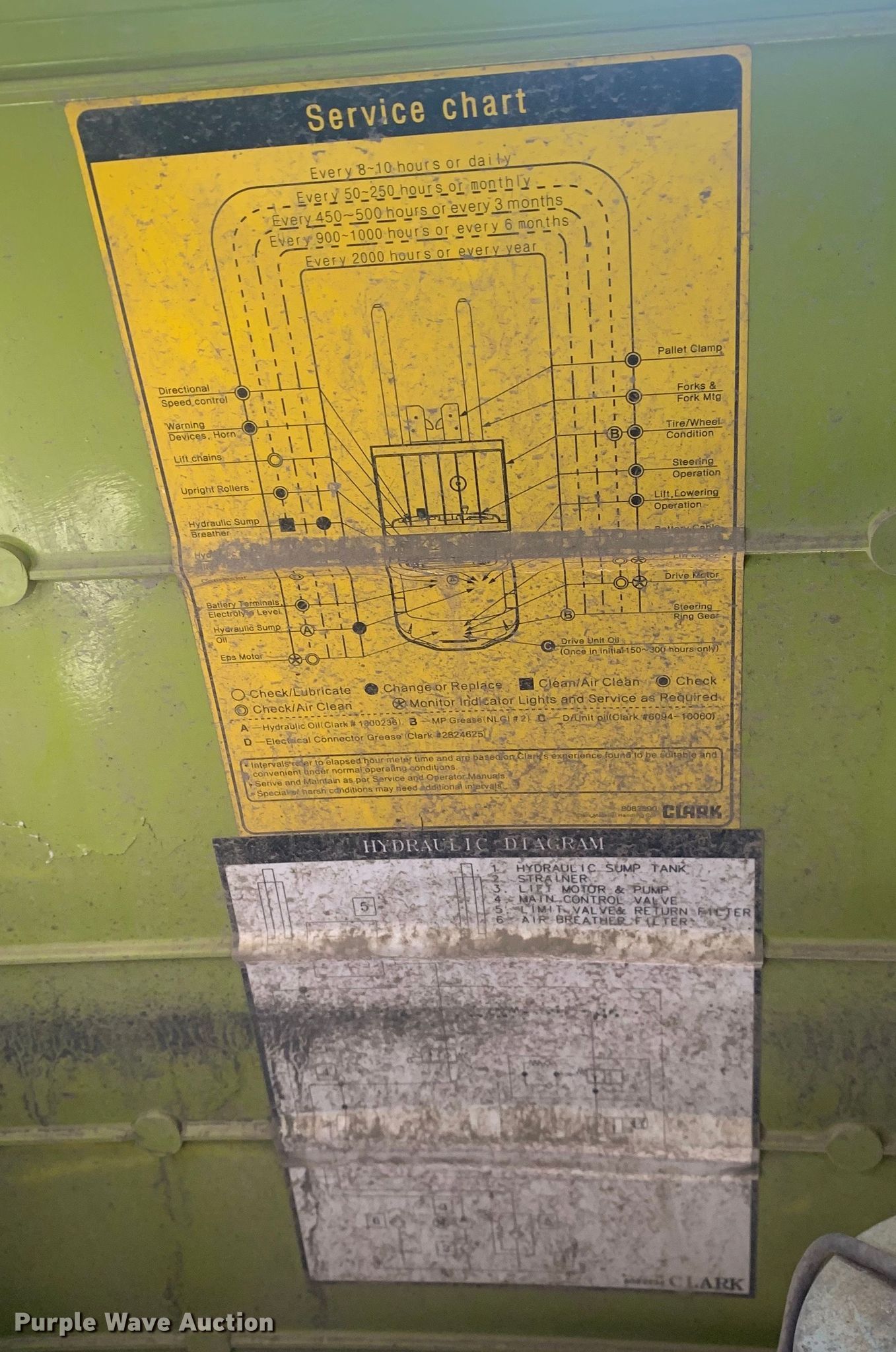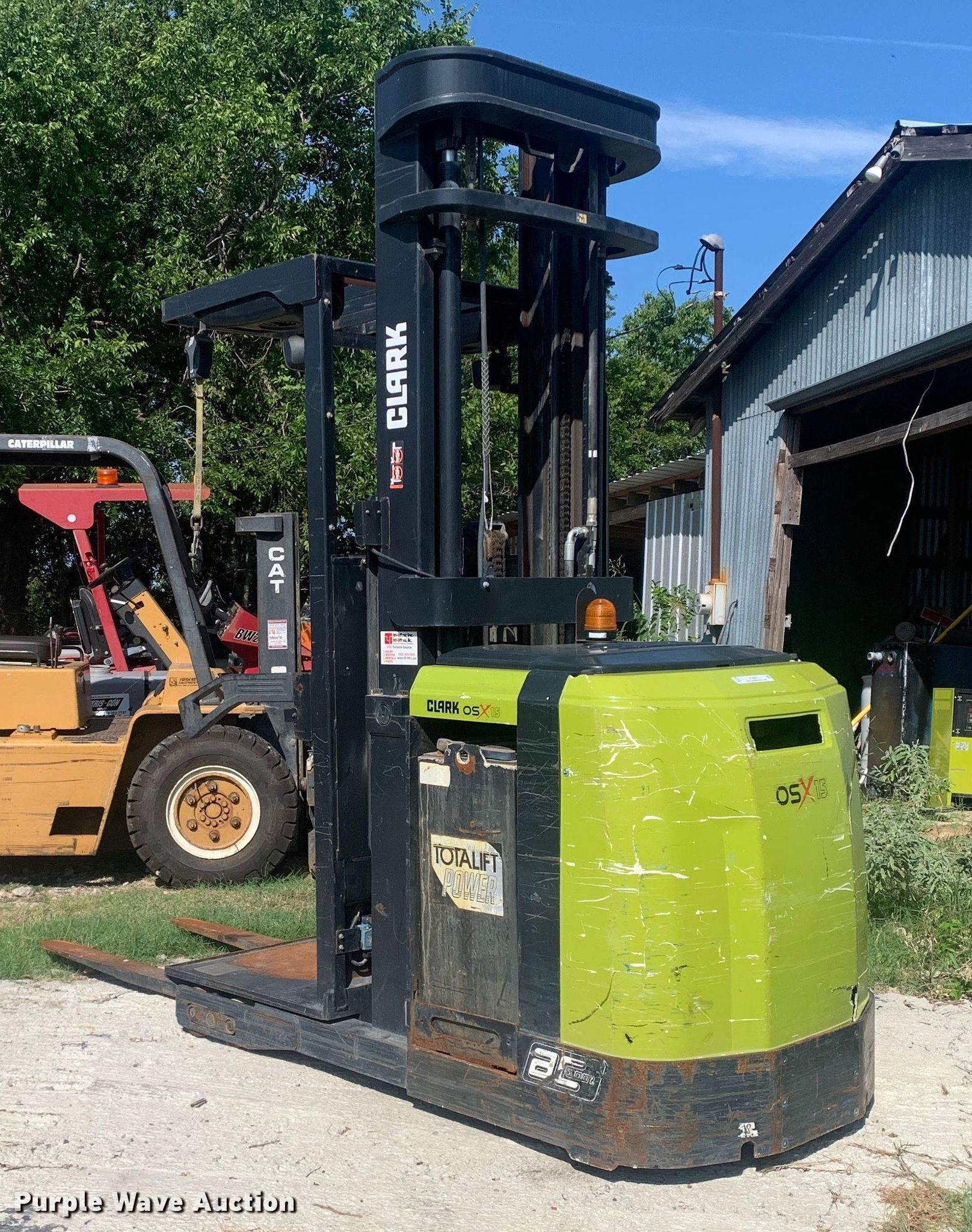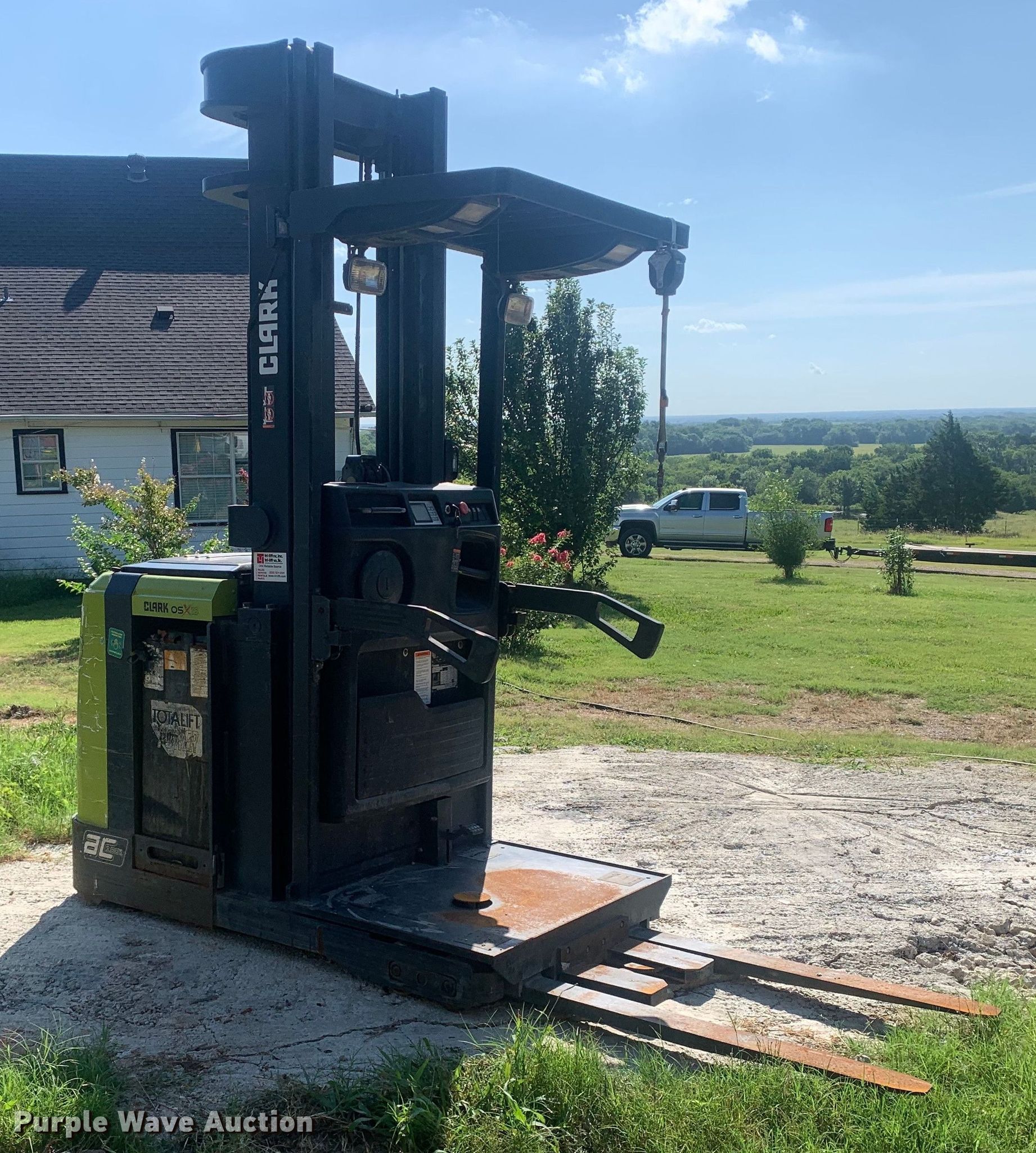 Purple Wave is selling a used Warehouse Forklift in Texas. This item is a Clark OSX15 order picker with the following: Hours: 1,044 on meter, Serial: OSX15-0393-9798KF
