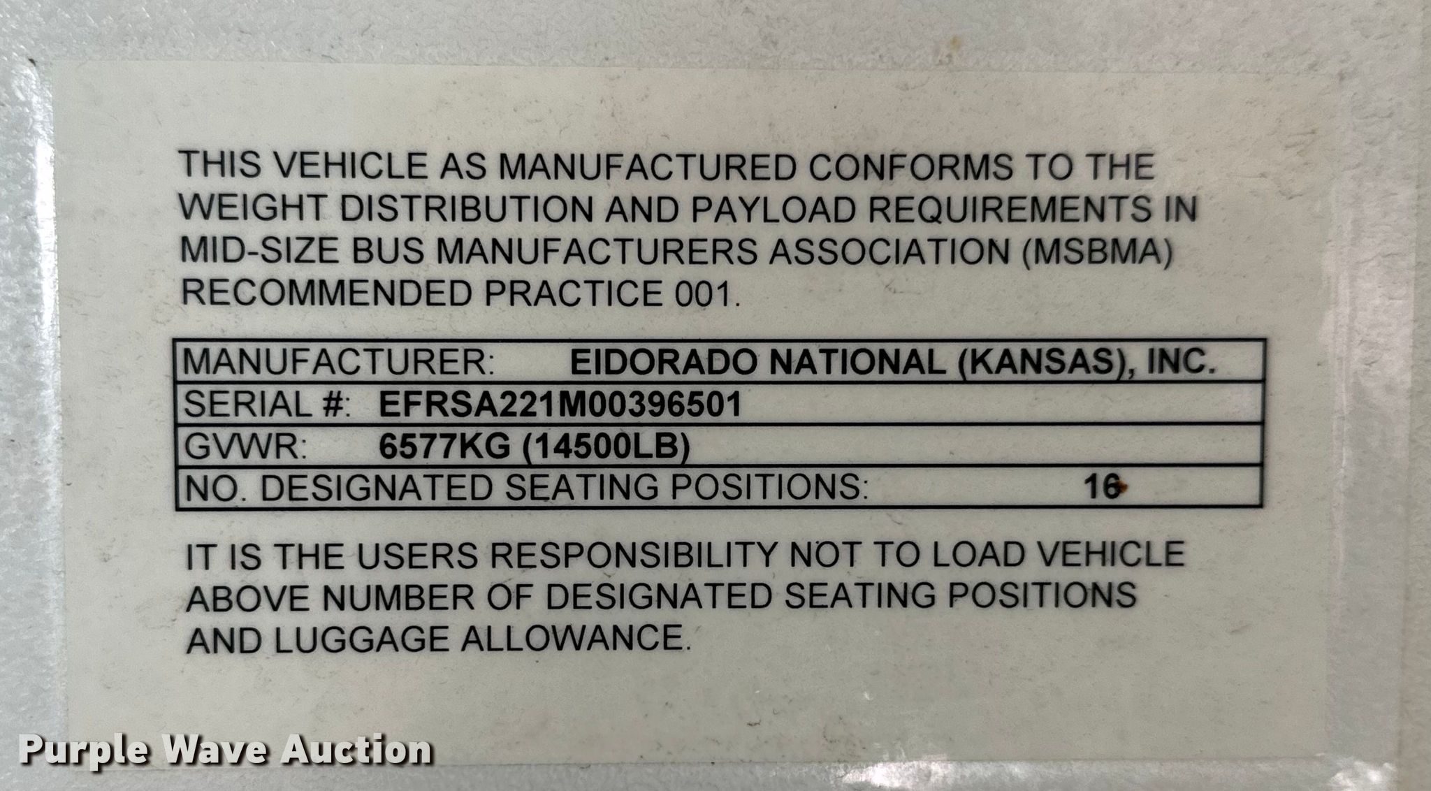 Purple Wave is selling a used Bus in Kansas. This item is a 2010 Eldorado E450 Super Duty shuttle bus with the following: Miles: 268,294 on odometer, VIN: 1FDFE4FS2ADA48889, Unit #: 190
