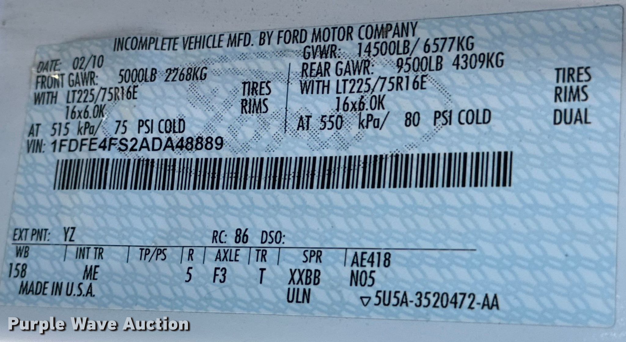 • VIN: 1FDFE4FS2ADA48889