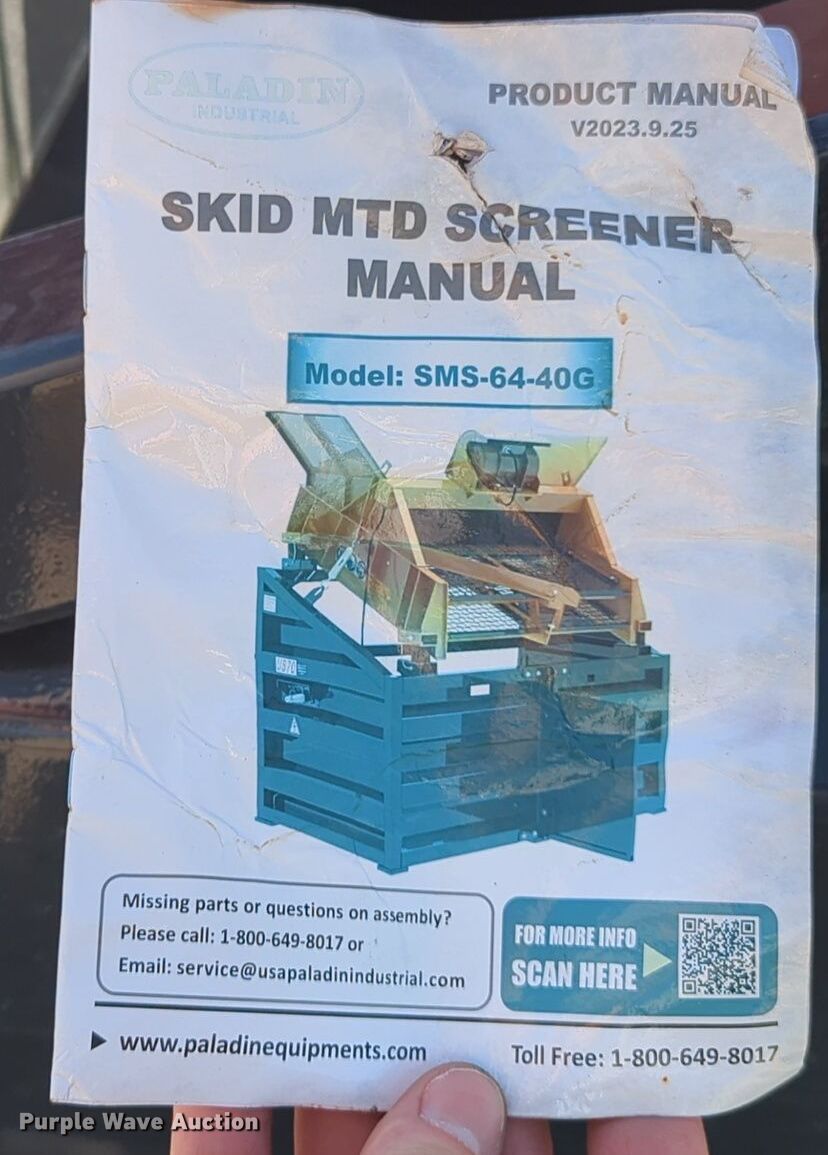 Purple Wave is selling a used Screen or Screening Plant in Oklahoma. This item is a 2024 Paladin SMS-64-40G screen with the following: Screen deck: 50"L x 58" W, Unused