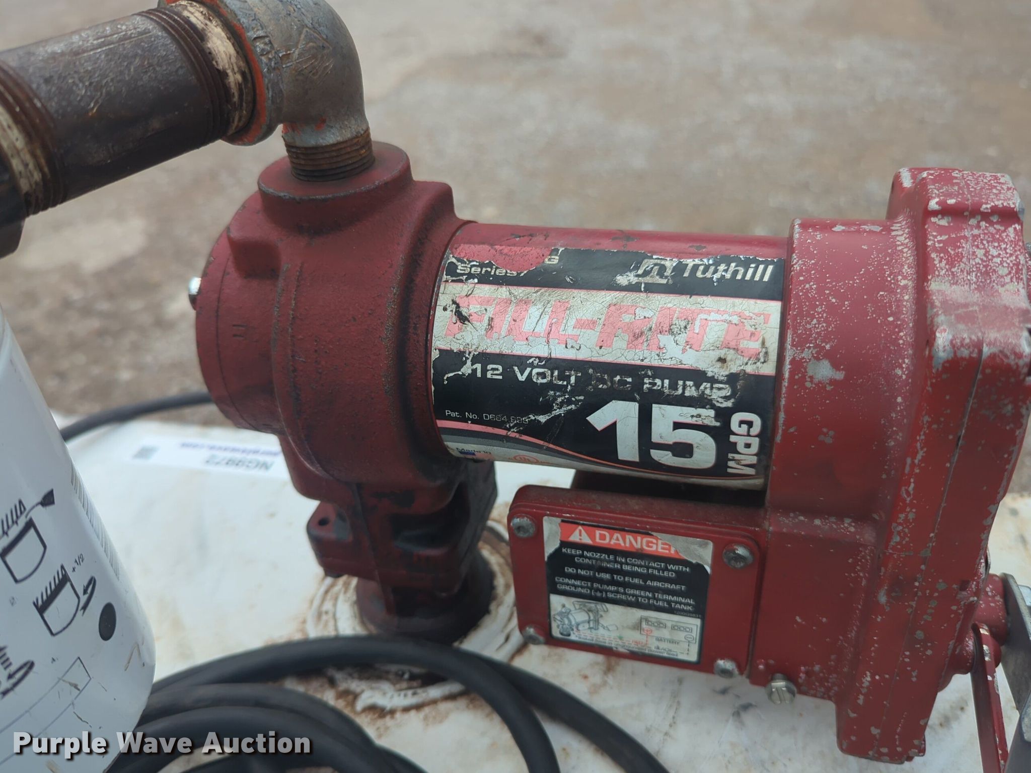 Purple Wave is selling a used Fuel and Lube in Oklahoma. This item is a Fuel tank with the following: Capacity: 100 gallons, Fill-Rite pump, GPM: 15, Volts: 12, Hose, Nozzle