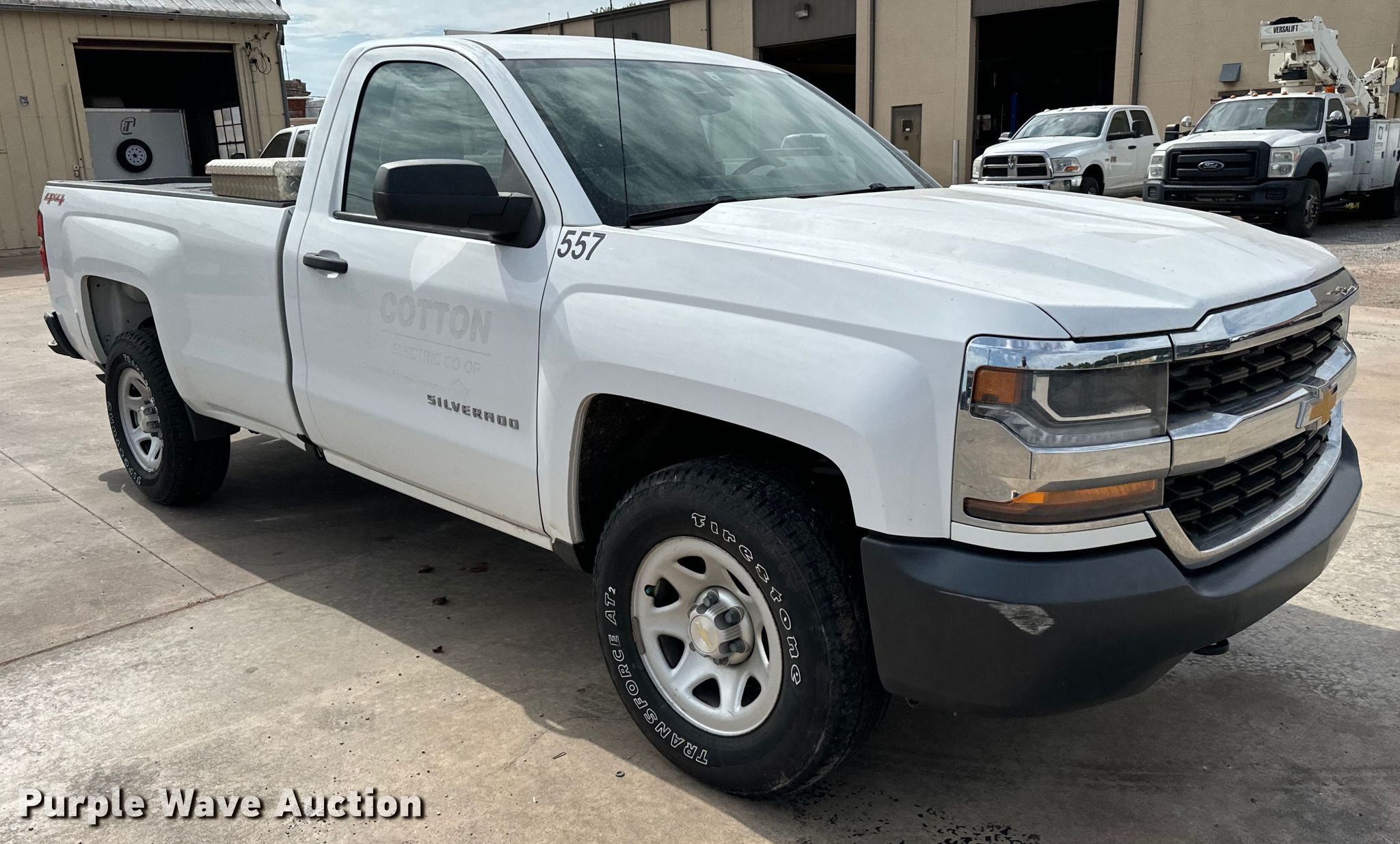 2016 Chevrolet Silverado 1500 pickup truck. Miles: 95,161 on odometer, VIN: 1GCNKNEC5GZ110094, Unit #: 557. Engine Displacement: 5.3L, Cylinders: 8, Fuel type: Gas. Transmission Automatic, Four wheel drive. Interior AC, Heat, Heated mirrors, Power windows, Power locks, Cruise control, Backup camera. Tires Size: LT265/70R17. Oklahoma title. Title distribution may be delayed up to 14 days from verification of funds. Cotton Electric COOP. Walters, OK 73572
