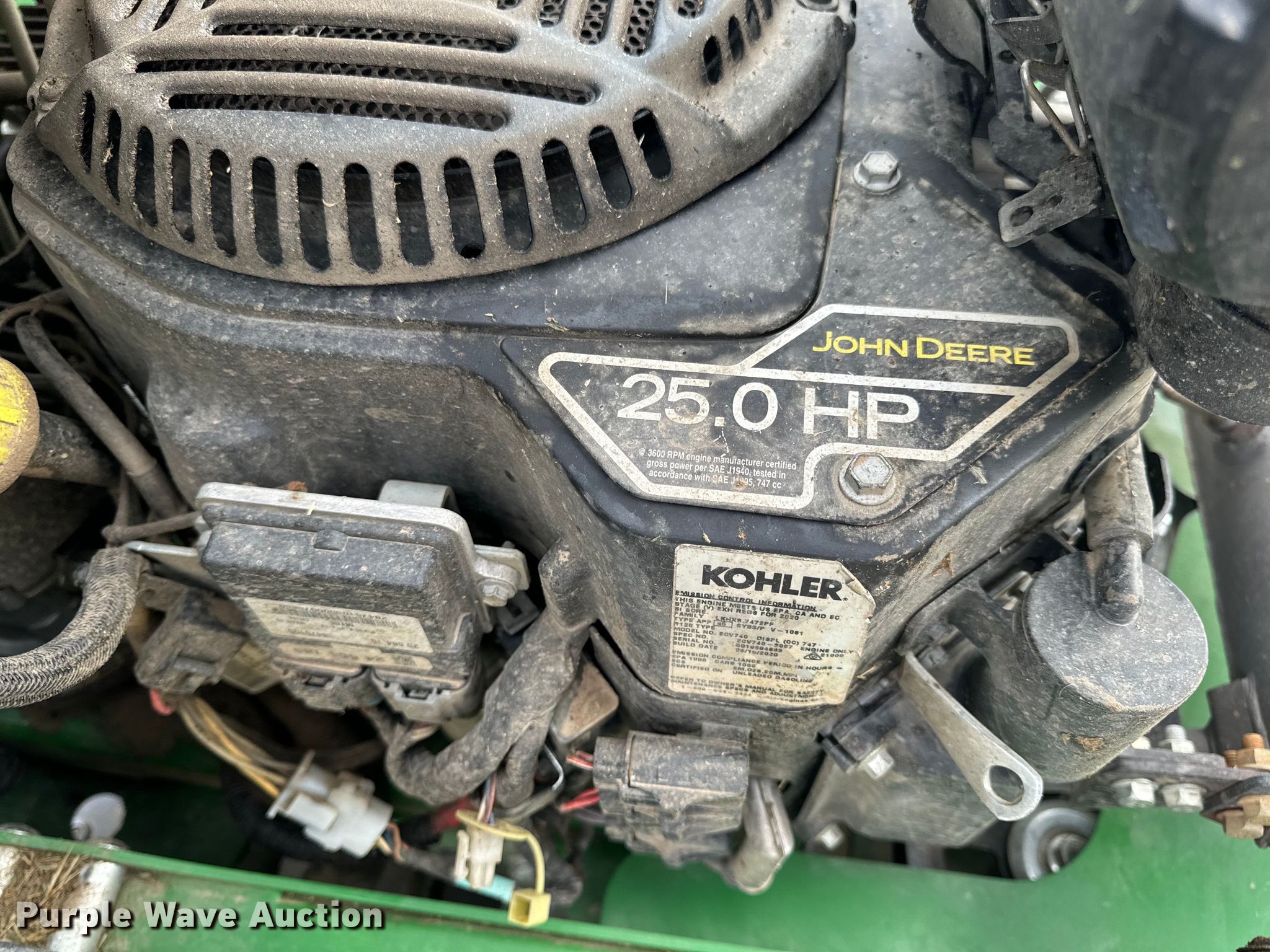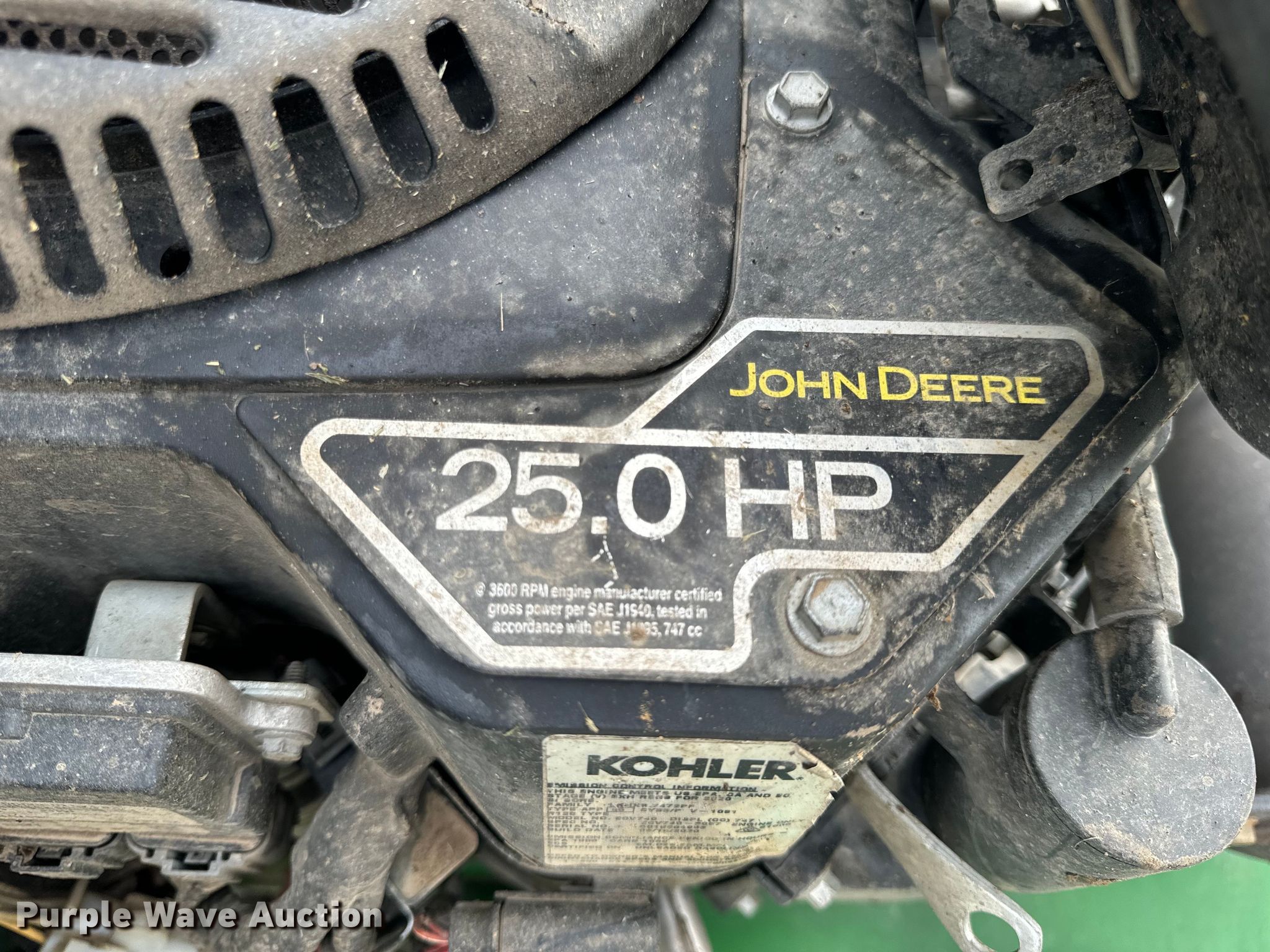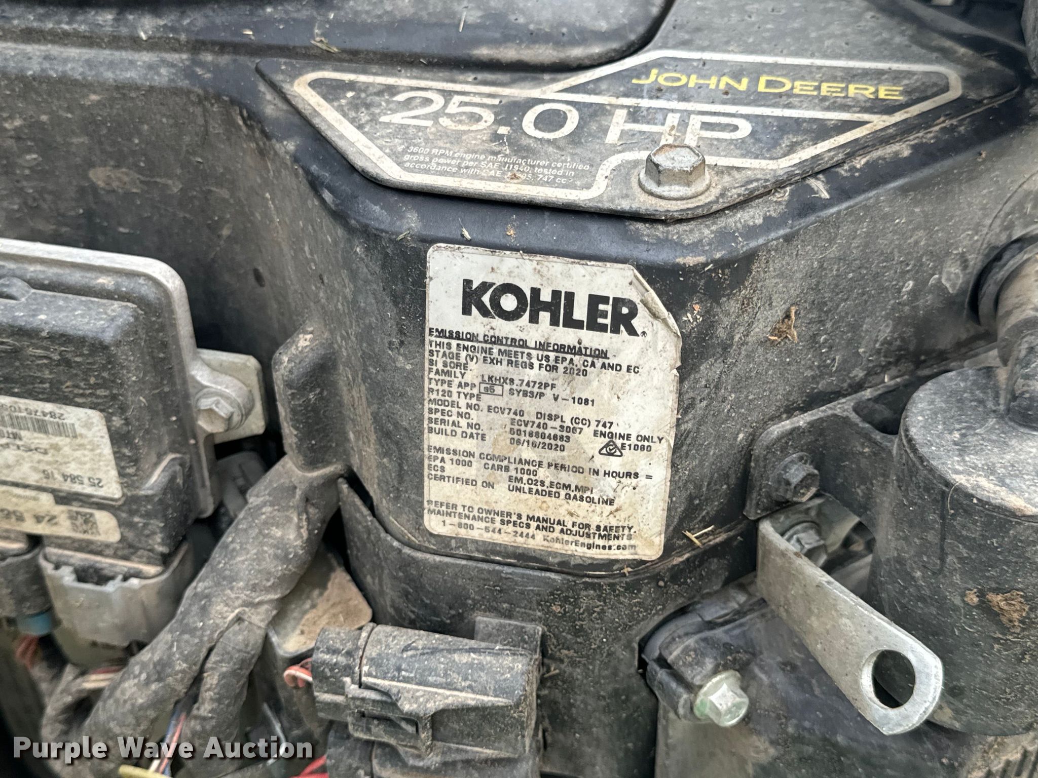 2022 John Deere 652R ZTR lawn mower. Hours: 767 on meter, Cutting width: 52", Serial: 1TC652RKCNY100236. Engine Kohler ECV740-S067, Serial: 5016804683, Displacement: 747 cc, Cylinders: 2, Fuel type: Gas, HP: 25. Transmission Hydrostatic. Chassis PTO. Features Stand on. Tires Front: 13X6.50/4.50, Rear: 20X10.00-8. Quality Cut Lawn Care LLC. Columbia, MO 65201