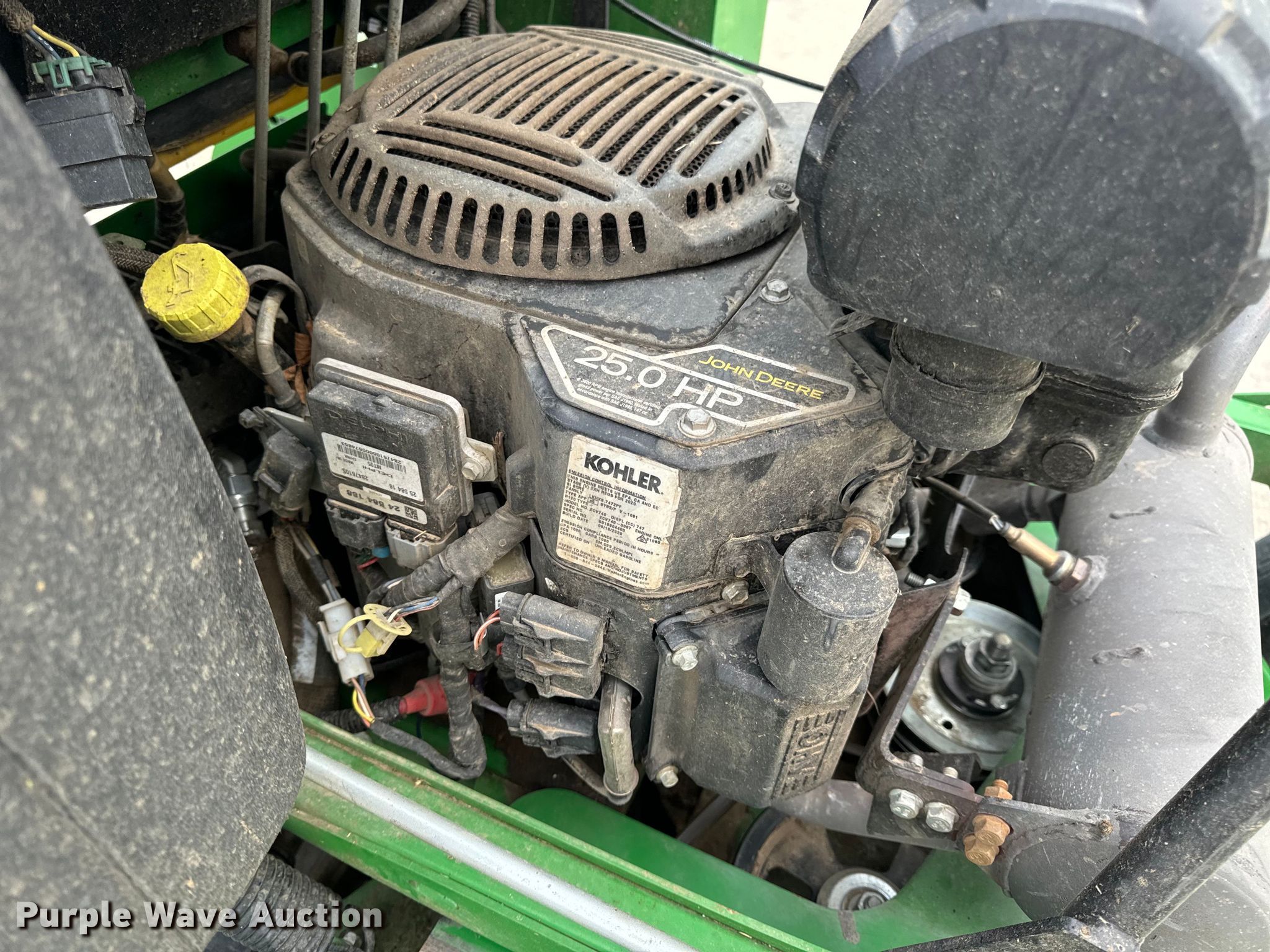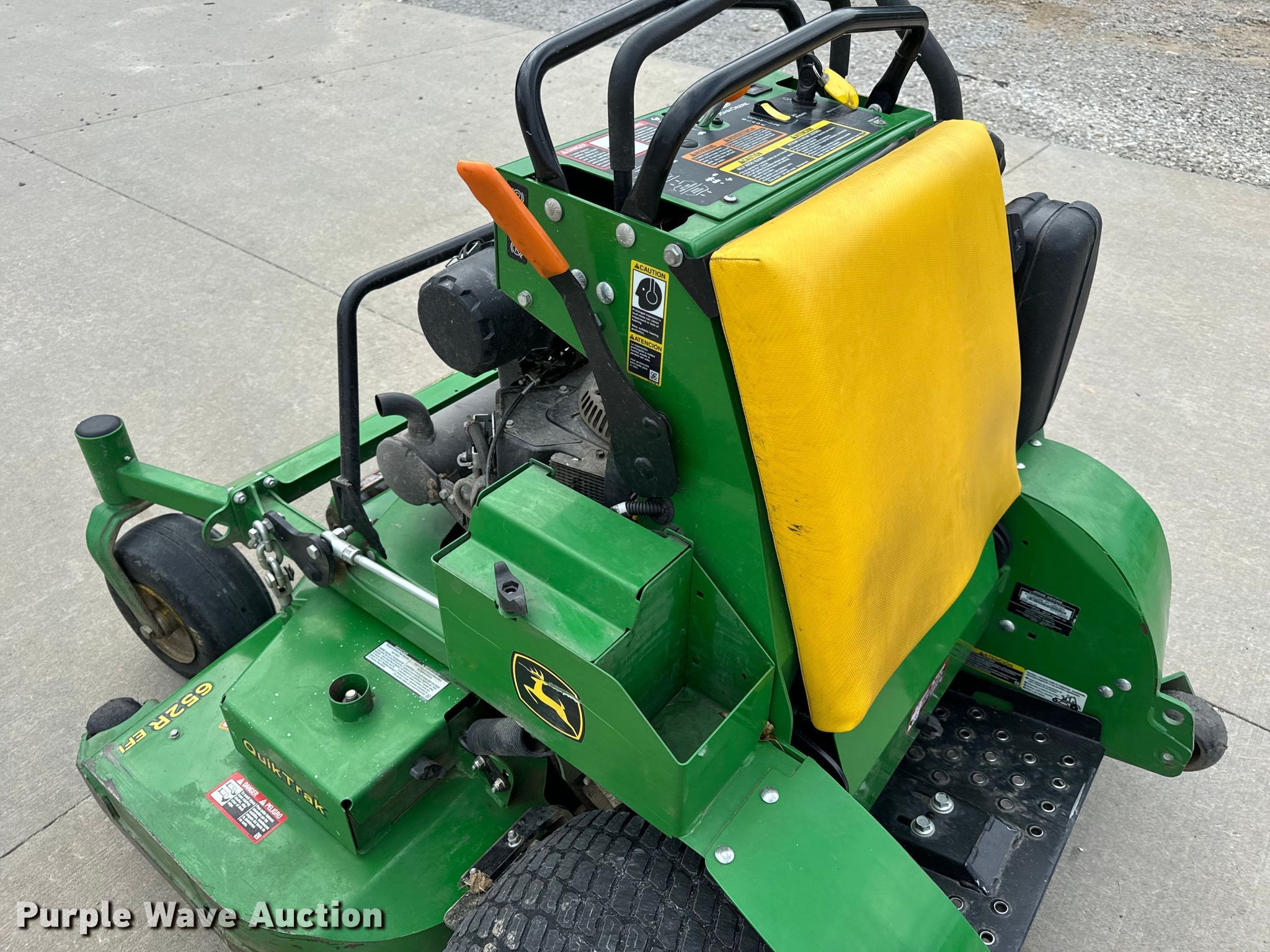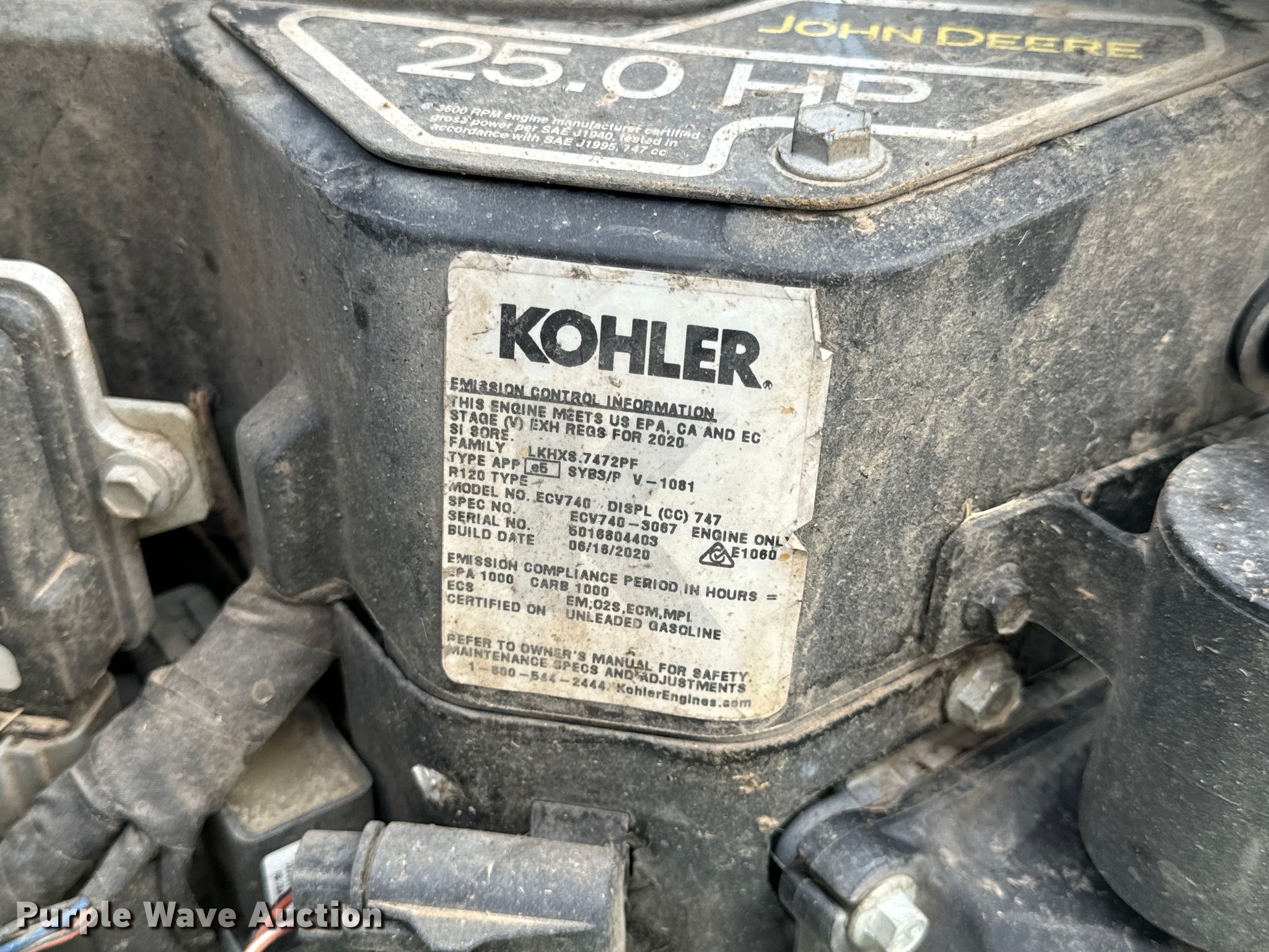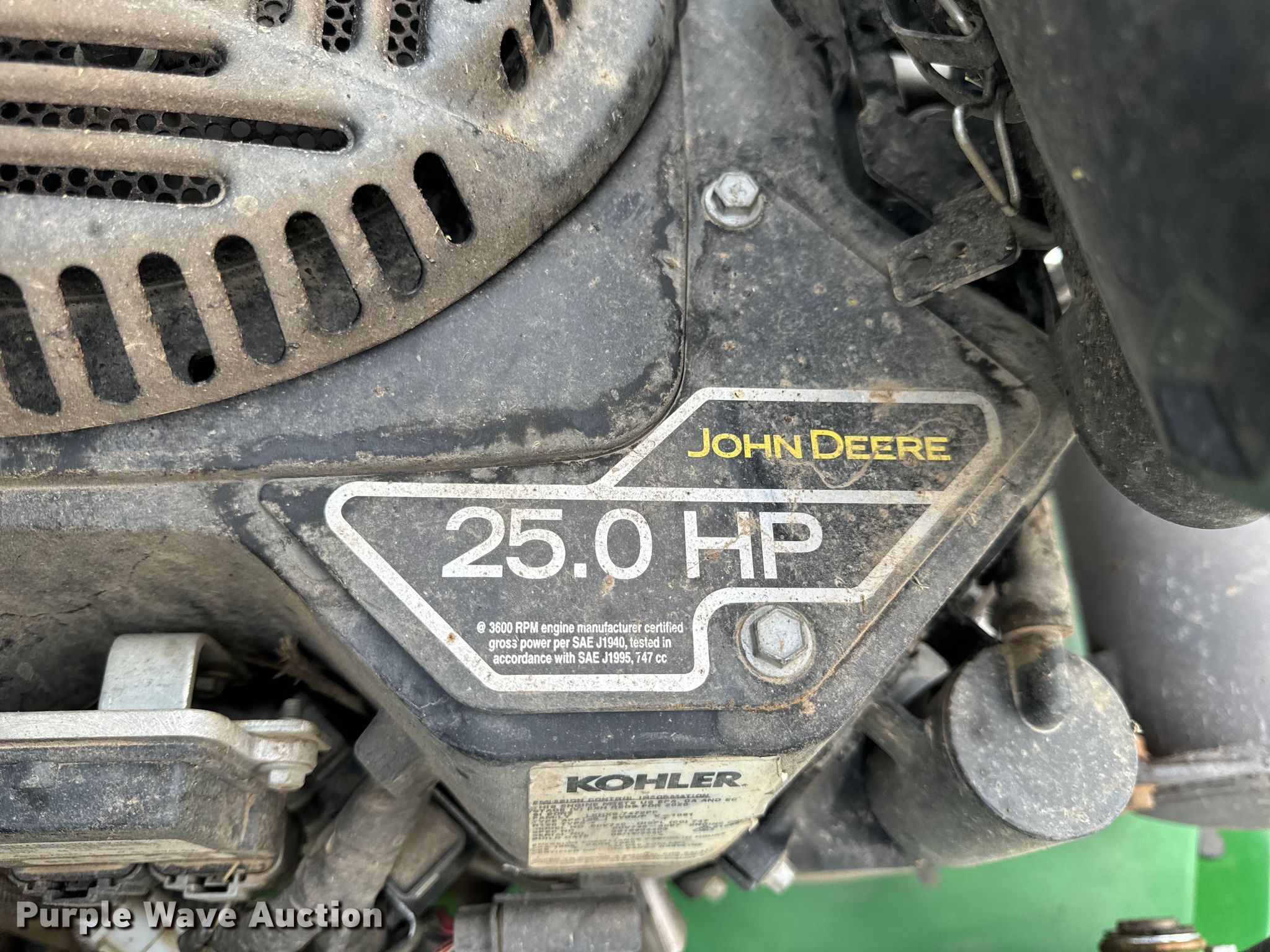 2022 John Deere 652R ZTR lawn mower. Hours: 737 on meter, Cutting width: 52", Serial: 1TC652RKJNY100235. Engine Kohler ECV740, Serial: 5016804403, Displacement: 747 cc, Cylinders: 2, Fuel type: Gas, HP: 25. Transmission Hydrostatic. Chassis PTO. Features Stand on. Tires Front: 13X6.50-6/4.50, Rear: 20X10.00-8. Notes Possible throttle linkage issue. Quality Cut Lawn Care LLC. Columbia, MO 65201