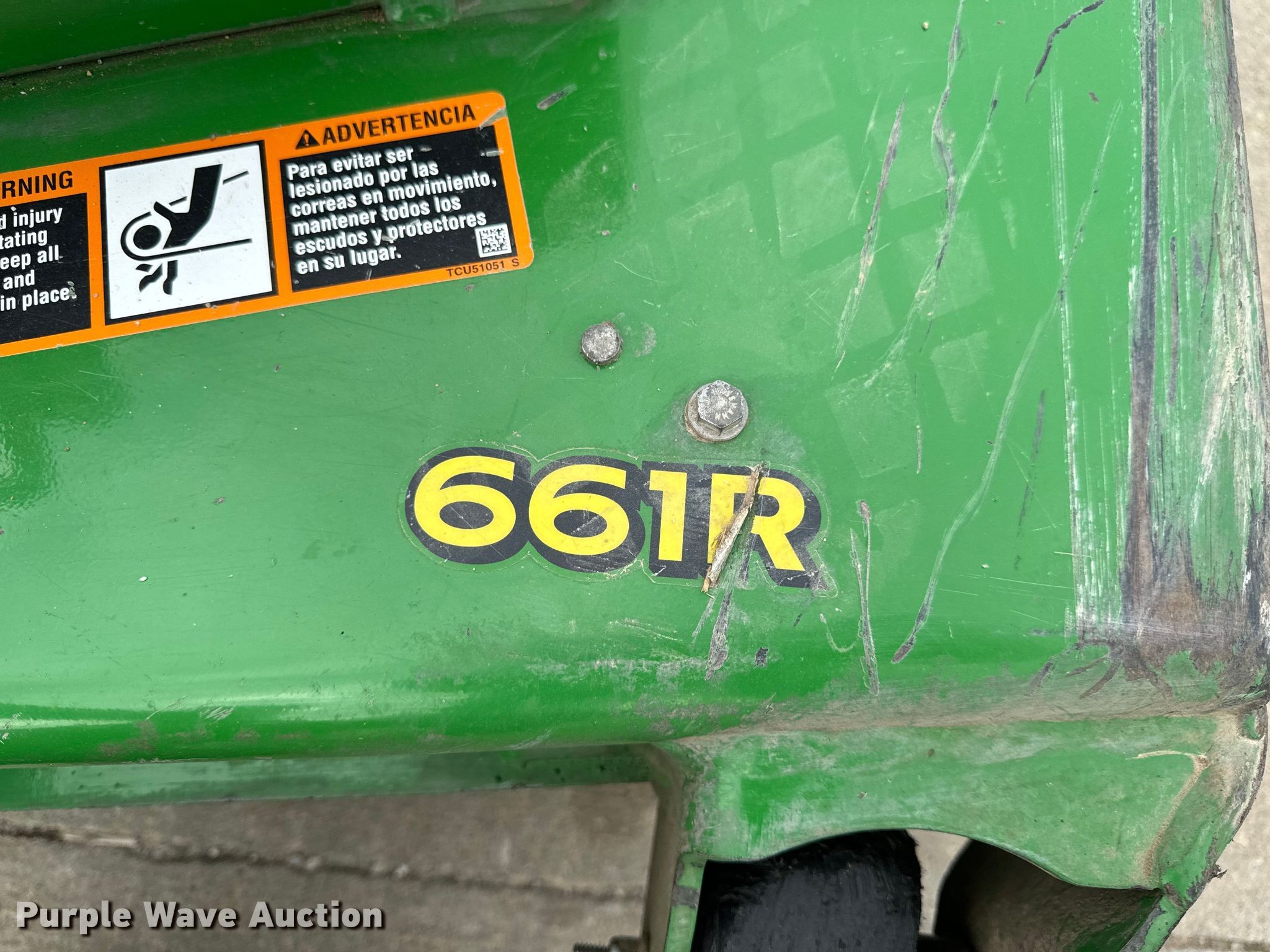 2022 John Deere 661R ZTR lawn mower. Hours: 1,155 on meter, Cutting width: 61", Serial: 1TC661RMCNT100025. Engine Cylinders: 2, Fuel type: Gas. Transmission Hydrostatic. Chassis PTO. Features Stand on. Tires Front: 13X6.50-6/4.50, Rear: 20X10.00-8. Quality Cut Lawn Care LLC. Columbia, MO 65201