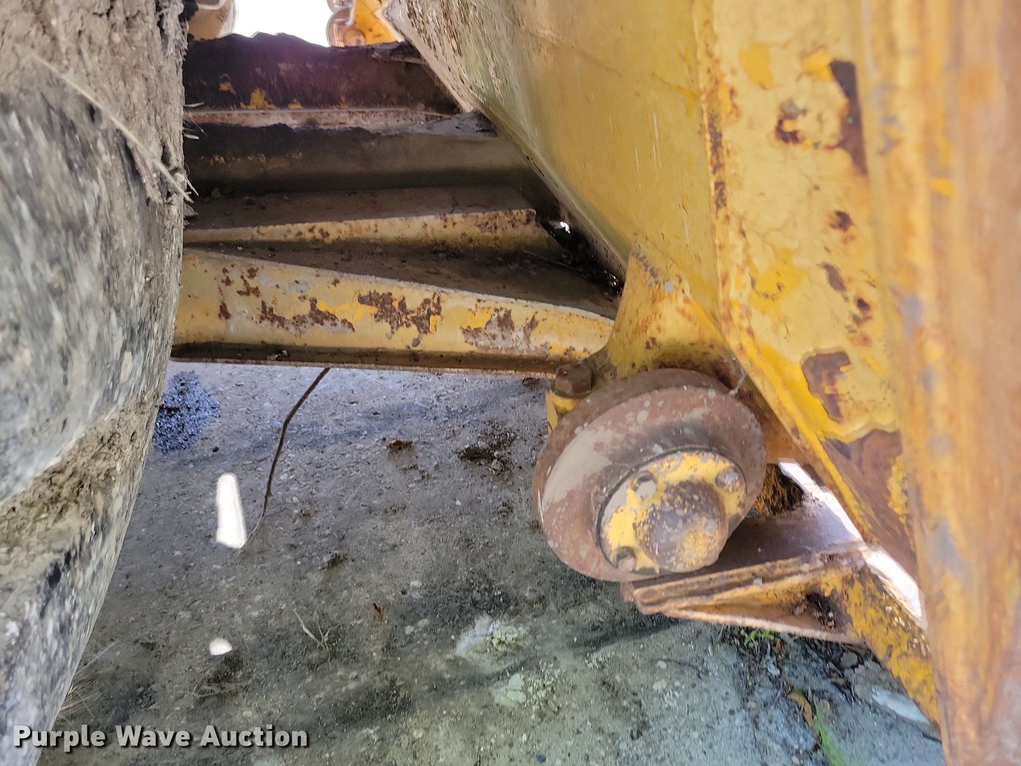1973 Caterpillar 627 conventional scraper. Serial: 69M859. Engine Caterpillar, Cylinders: 6, Fuel type: Diesel. Second engine Caterpillar, Cylinders: 6, Fuel type: Diesel. Transmission Powershift, 8F - 1R. Chassis Brakes: Air. Features Hydraulic lift, Axle ride, Scraper controls: Lever controls No. of controls: 3, Rear push block. Tires Size: 29.5-29. Notes Glass cracked, Non-operational unit. Kelderman Mfg.. Prole, IA 50229