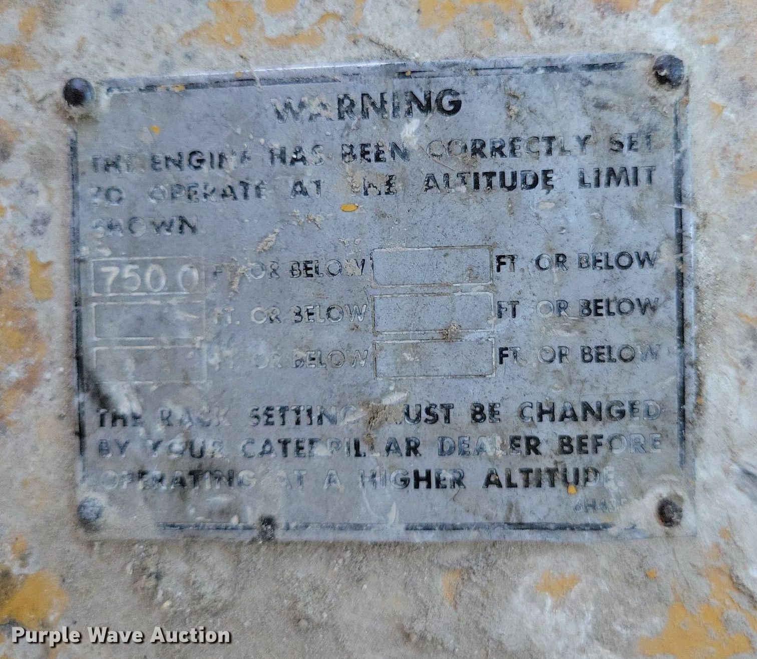 1970 Caterpillar 980B wheel loader. Serial: 89P623. Engine Caterpillar, Cylinders: 6, Fuel type: Diesel. Transmission Powershift, 4F - 4R. Operators station Enclosed cab, Bucket controls: Two-lever. Features Bucket Width: 125". Tires Size: 26.5-25. Notes Engine issues, head gasket needs replaced , Non-operational unit, Glass cracked. Kelderman Mfg.. Prole, IA 50229