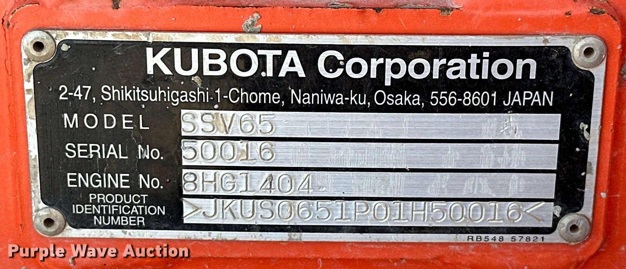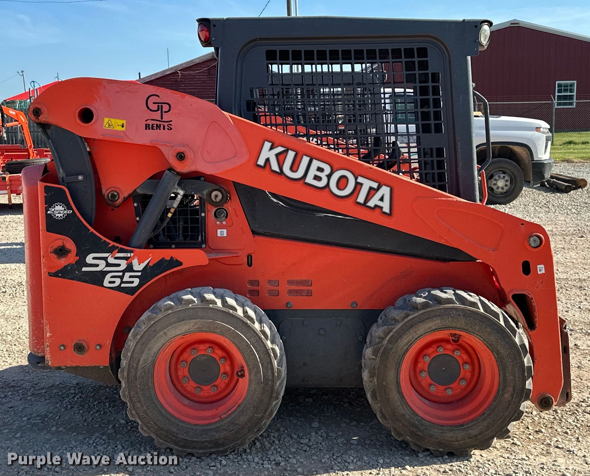 Purple Wave is selling a used Skid Steer Loader in Oklahoma. This item is a 2017 Kubota SSV65 skid steer loader with the following: Hours: 911 on meter, Serial: JKUS0651P01H50016