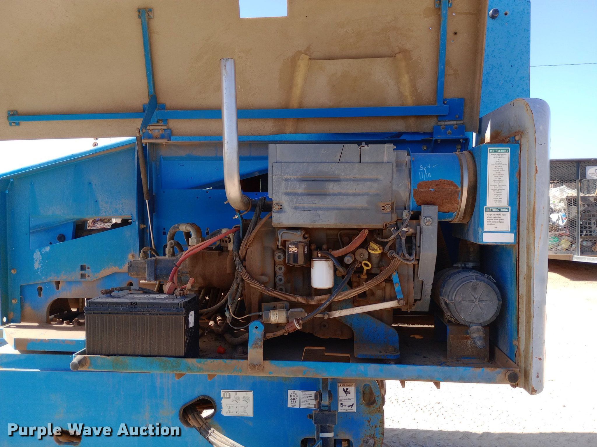 2008 Genie S-40 boom lift. Hours: 3,623 on meter, Serial: S4008-15050. Engine Deutz D2011L03I, Displacement: 2.332L, Cylinders: 3, Fuel type: Diesel, HP: 49. Chassis Four wheel drive. Features Rough terrain, Maximum lift capacity: 500 lbs, Maximum reach length: 31' 8", Maximum lift height: 40', Hydraulic extendable jib, Platform: 72" L x 30" W, Controls: Platform, Ground, Platform rotation: Hydraulic. Tires Tire size: 12-16.5. Dutton Rent-All, Inc. - Open Inspection Wednesday, July 24. 305 Southeast 4th Street. Lindsay, OK 73052
