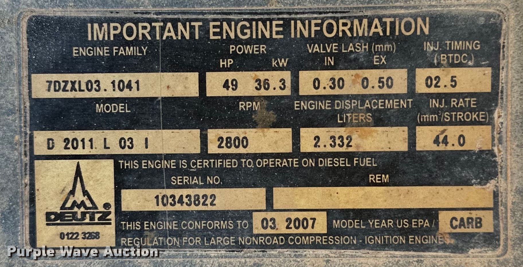2007 Genie S-60 boom lift. Hours: 4,384 on meter, Serial: S6007-15970. Engine Deutz D2011L03I, Serial: 10343822, Displacement: 2.332L, Cylinders: 3, Fuel type: Diesel, HP: 49, kW: 36.6. Chassis Four wheel drive. Features Rough terrain, Boom type: Articulating, Telescopic, Maximum lift capacity: 500 lbs, Maximum reach length: 50' 4", Maximum lift height: 60' 2", Hydraulic leveling, Platform: 94" L x 34" W, Controls: Platform, Ground, Platform rotation: Hydraulic, Safety alarm. Tires Tire size: 355/55D625. Dutton Rent-All, Inc. - Open Inspection Wednesday, July 24. 305 Southeast 4th Street. Lindsay, OK 73052
