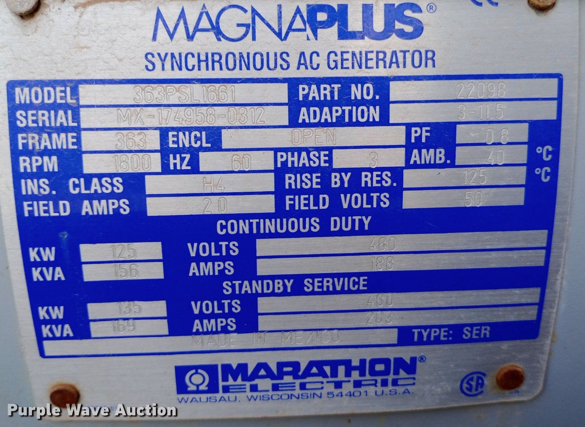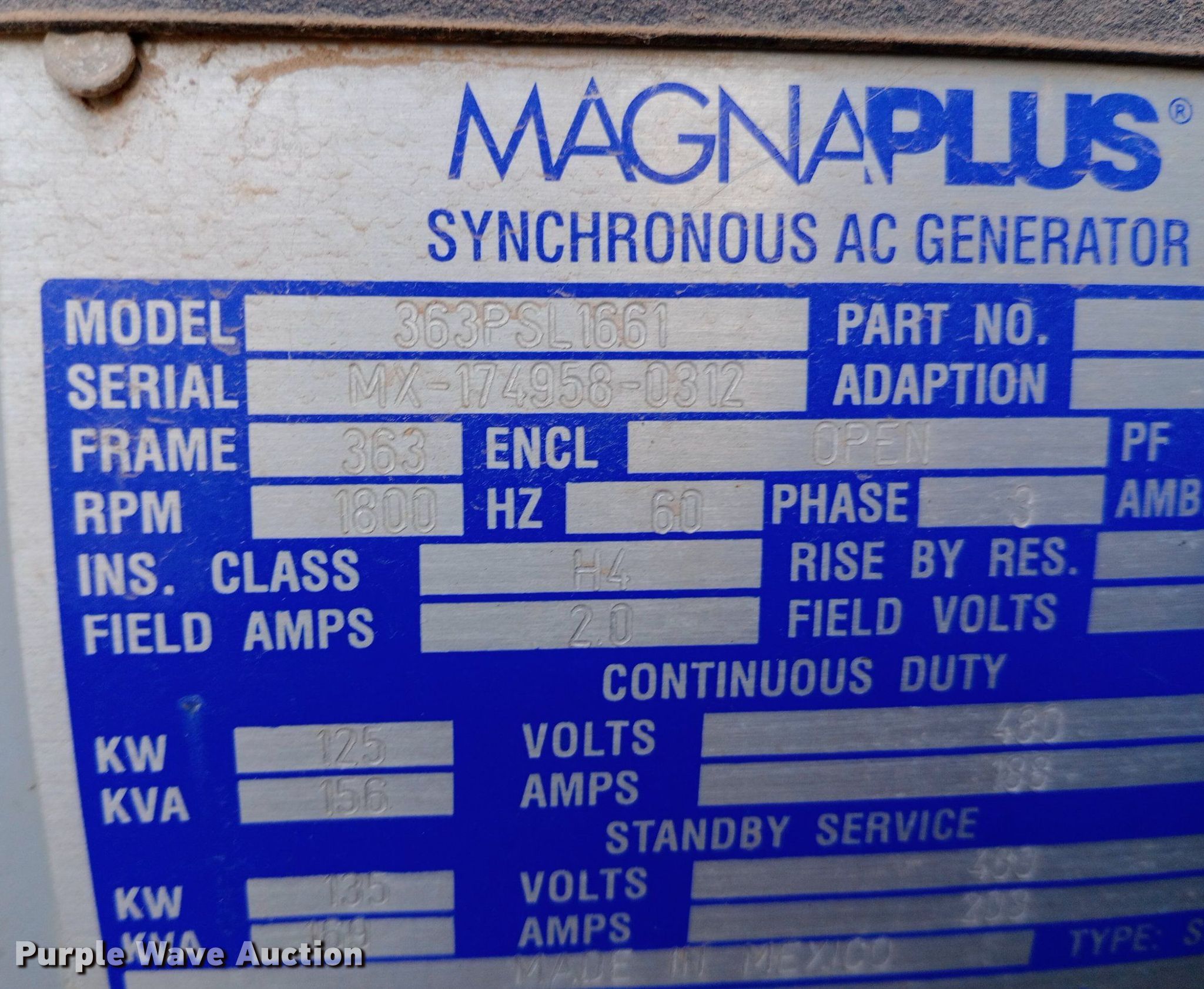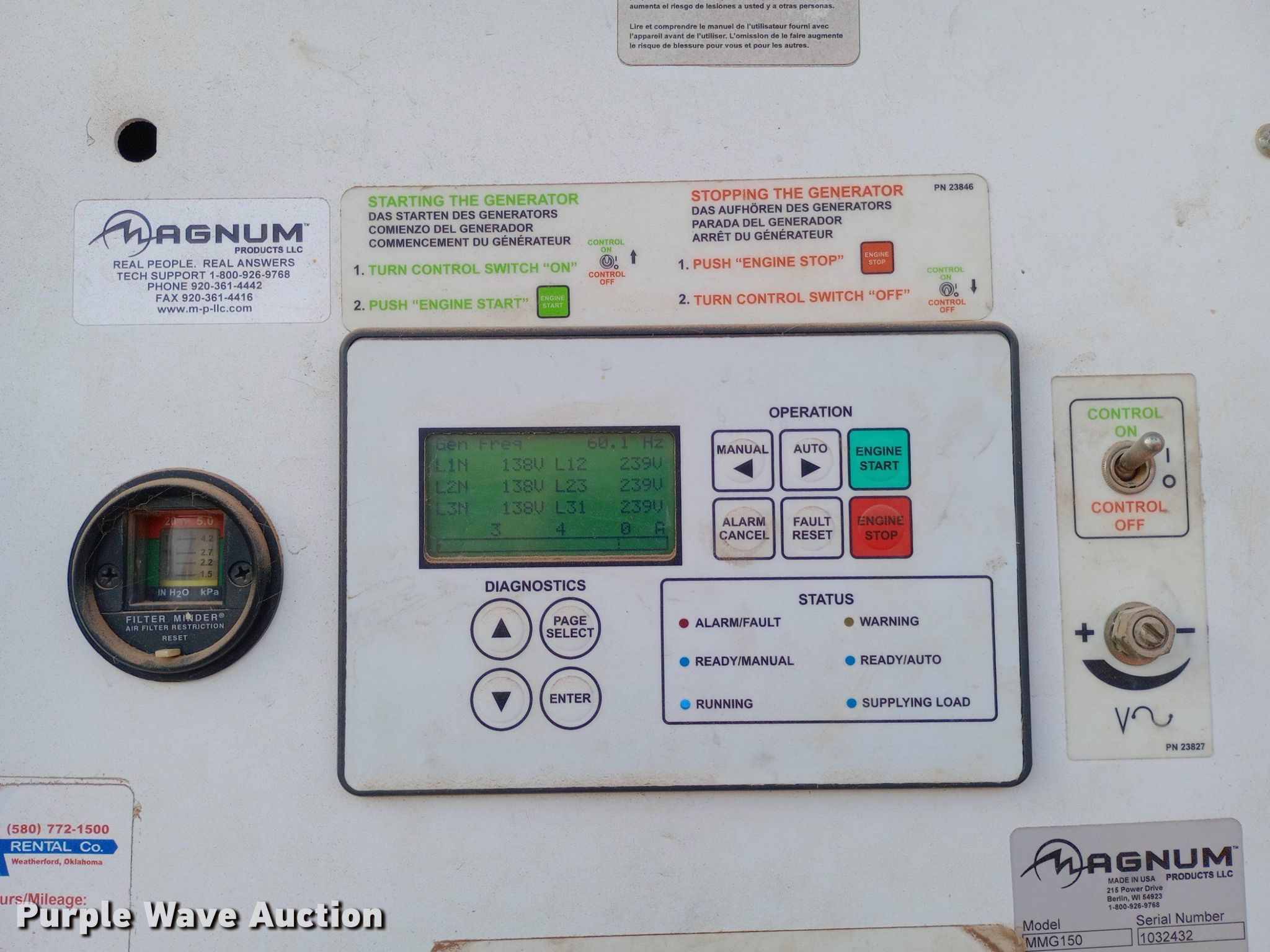 Purple Wave is selling a used Generator Set in Oklahoma. This item is a Magnum Magna Plus 150 generator with the following: Serial: MX-174958-0312