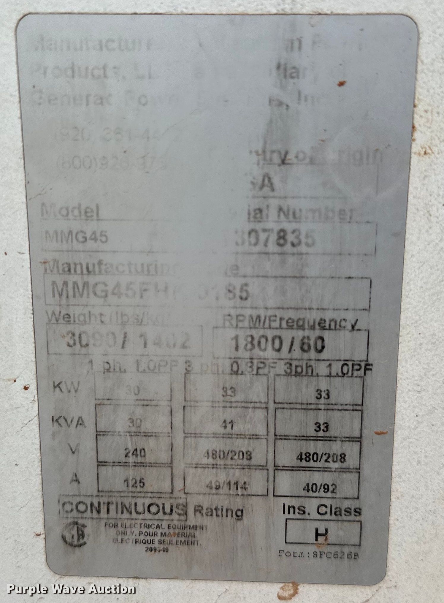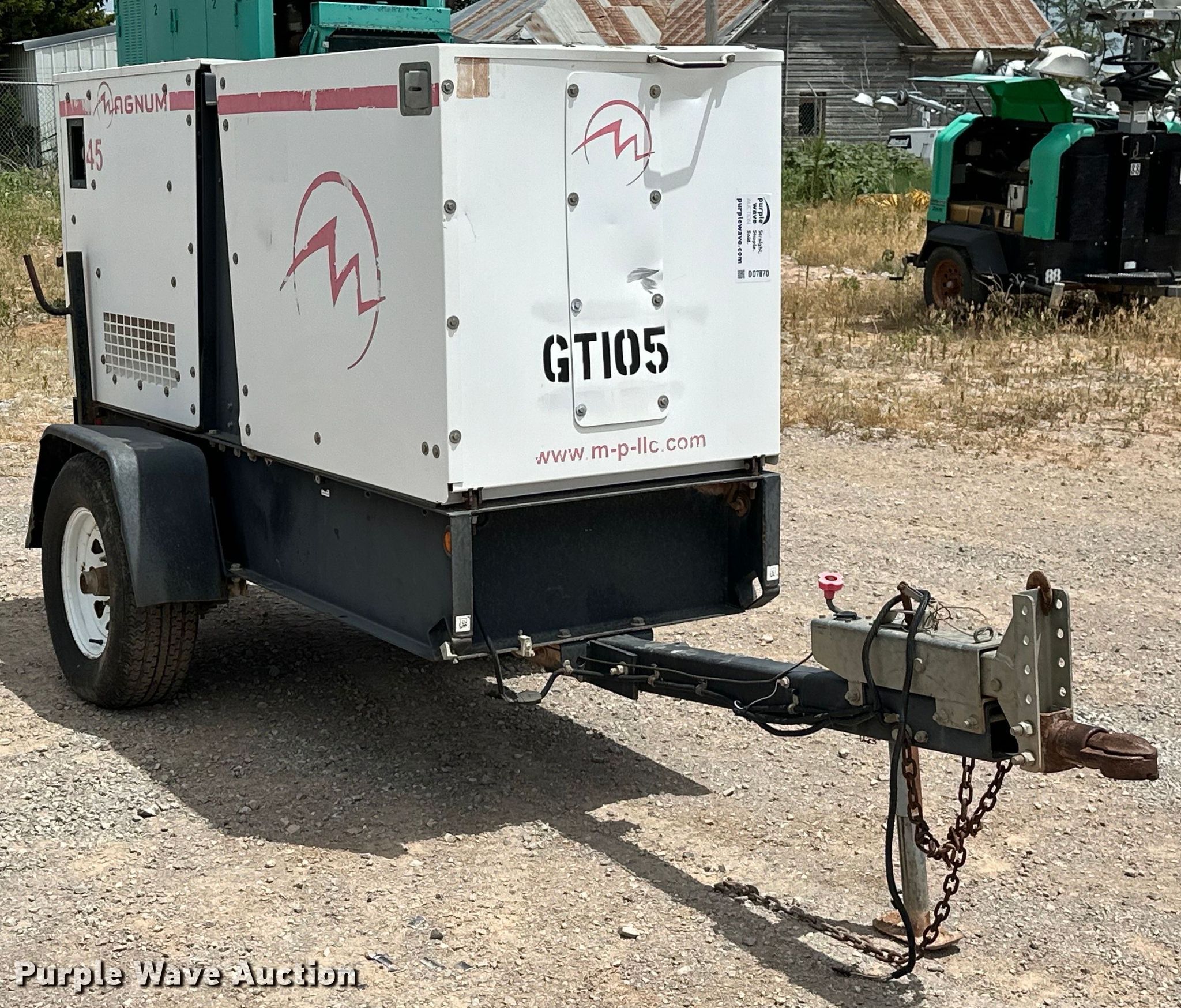 Purple Wave is selling a used Generator Set in Oklahoma. This item is a Magnum MMG45 generator with the following: Hours: 6,291 on meter, Serial: 307835, Unit #: GT105