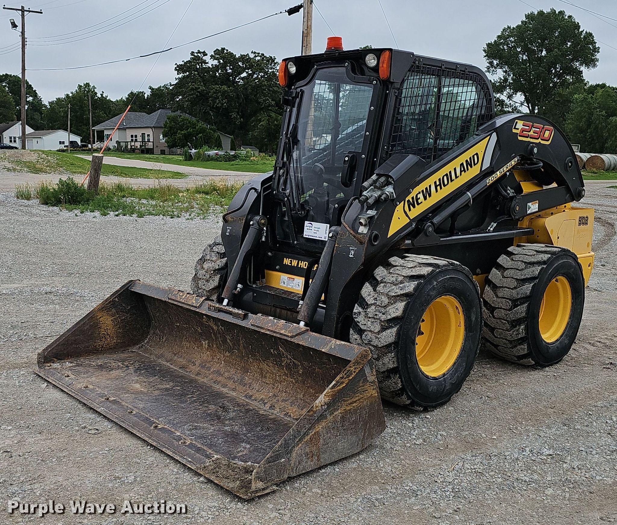 Purple Wave is selling a used Skid Steer Loader in Nebraska. This item is a 2015 New Holland L230 skid steer loader with the following: Hours: 1,445 on meter, Serial: JAF0L230PFM404834