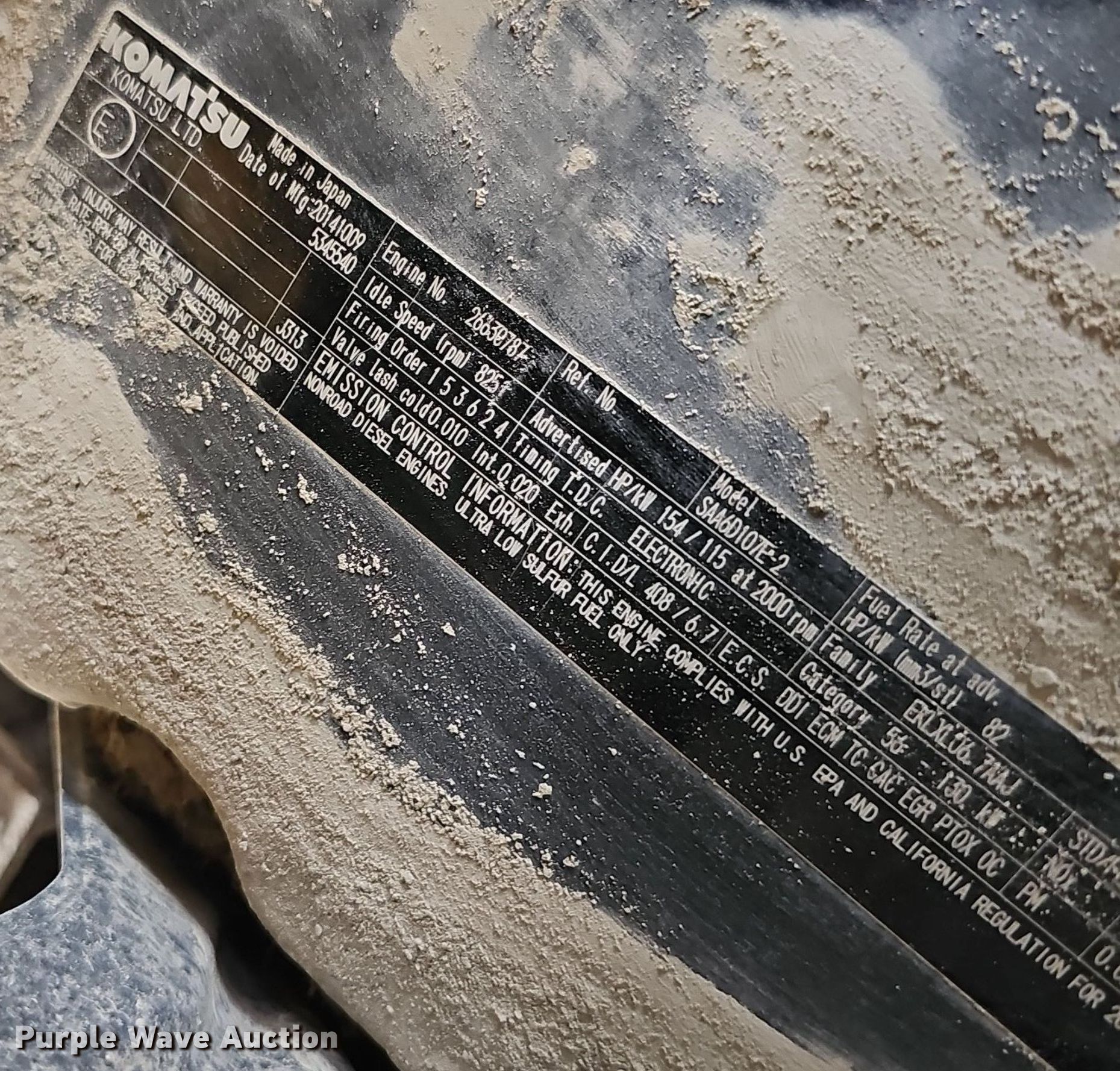 2016 Komatsu WA270-7 wheel loader. Hours: 5,672 on meter, Serial: KMTWA122CEA081077. Engine Komatsu SAA6D107E-2, Serial: 26630787, Displacement: 6.7L, Cylinders: 6, Fuel type: Diesel. Transmission Hydrostatic, 4F - 4R. Operators station Enclosed cab, AC, Heat, Bucket controls: Joystick. Features Auxiliary hydraulics: Front, Quick coupler: Hydraulic Komatsu 418-T80-4504, Counter weights, Bucket JRB, Width: 108", Self- leveling bucket, Cutting edge: Bolt-on, Forks Gem Fork CFLP WA200, Length: 60", Scale Trimble LoadRite L3180, Printer LoadRite LP950, Backup camera. Tires Size: 20.5R25, Brand: Titan MXL. Notes Maintenance records available upon request at [email protected]. Green Thumb, L.L.C.. Nehawka, NE 68413