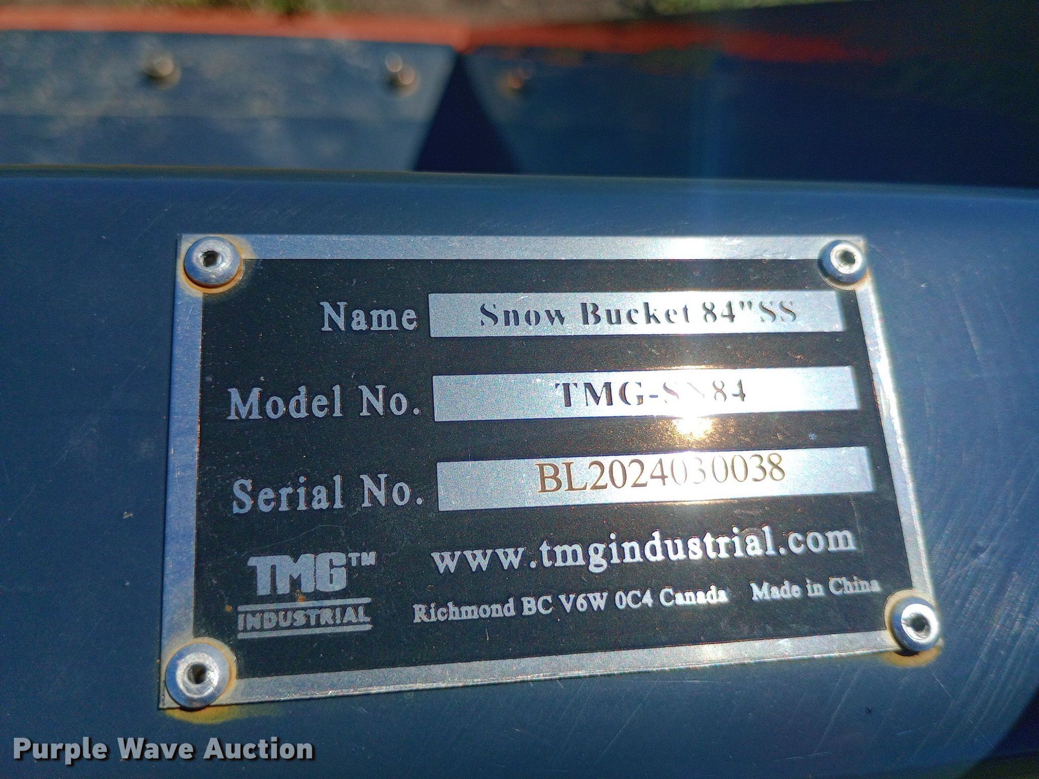 Purple Wave is selling a used Skid Steer Attach. in Kansas. This item is a TMG TMG-SN84 skid steer bucket with the following: Serial: BL2024030038