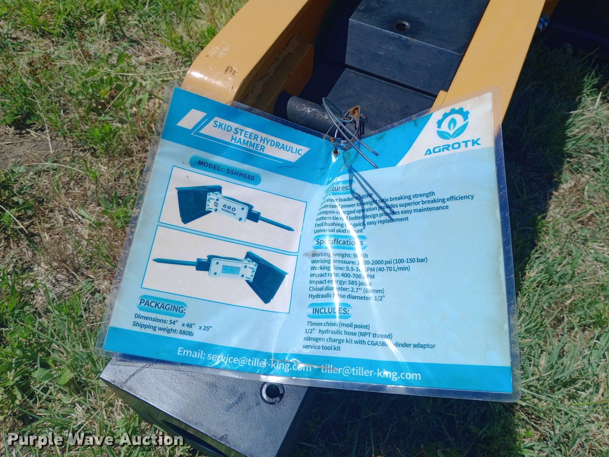 Purple Wave is selling a used Skid Steer Attach. in Kansas. This item is a 2024 Agrotk SSHH680A skid steer breaker with the following: Serial: SSHH68024021802B