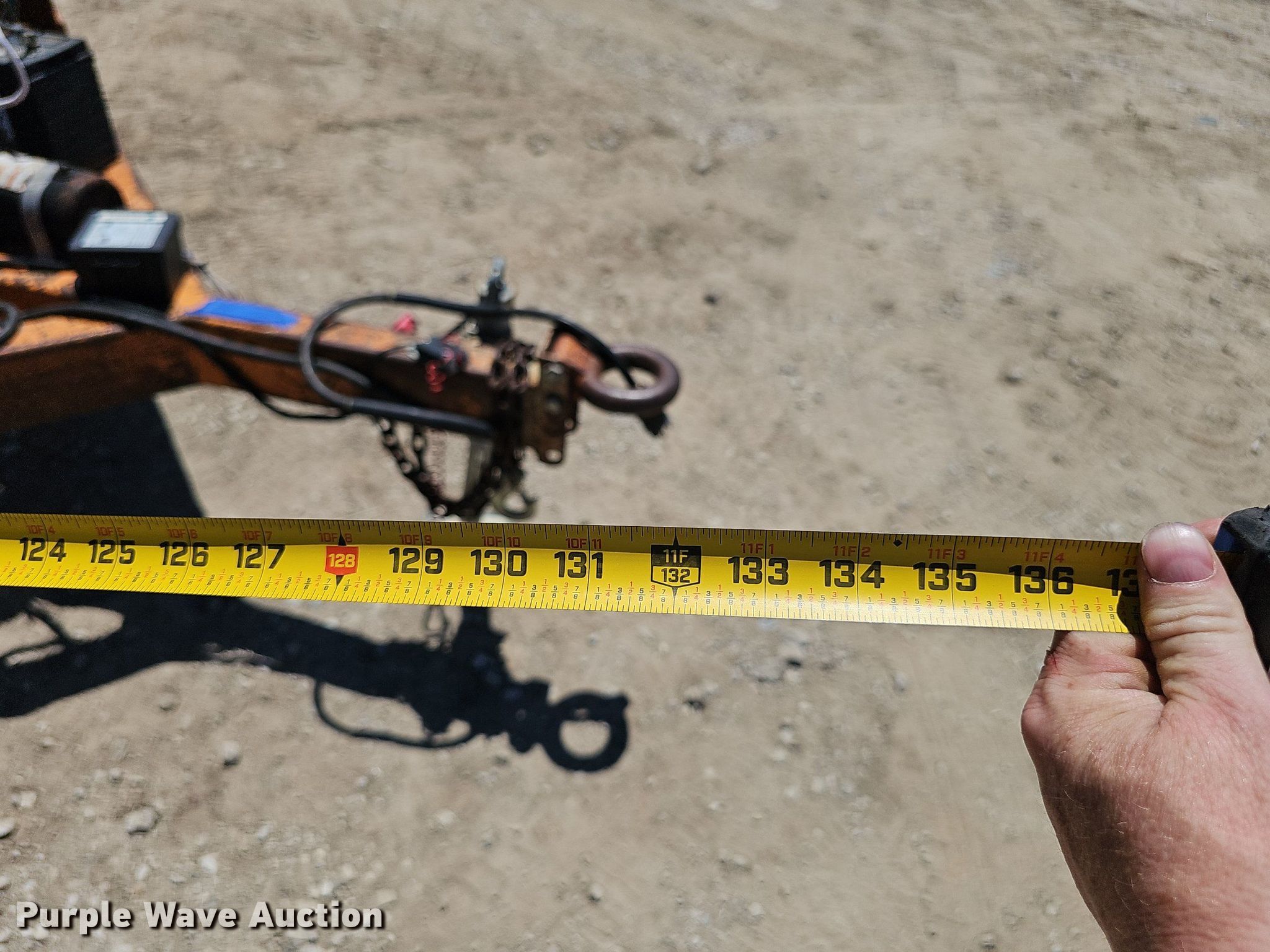 Shop built reel trailer. Dimensions. Overall: 11' L x 102" W. Features Reel: Single, Maximum reel width: 66", Maximum reel diameter: 96", Self-contained hydraulics. Chassis Hitch: Pintle, Landing gear: Single, Suspension: Spring, Brakes: Electric. Tires Size: ST235/80R16. Transfer of ownership documentation will be a bill of sale. Valley Corp / TJ Cable. Omaha, NE 68135
