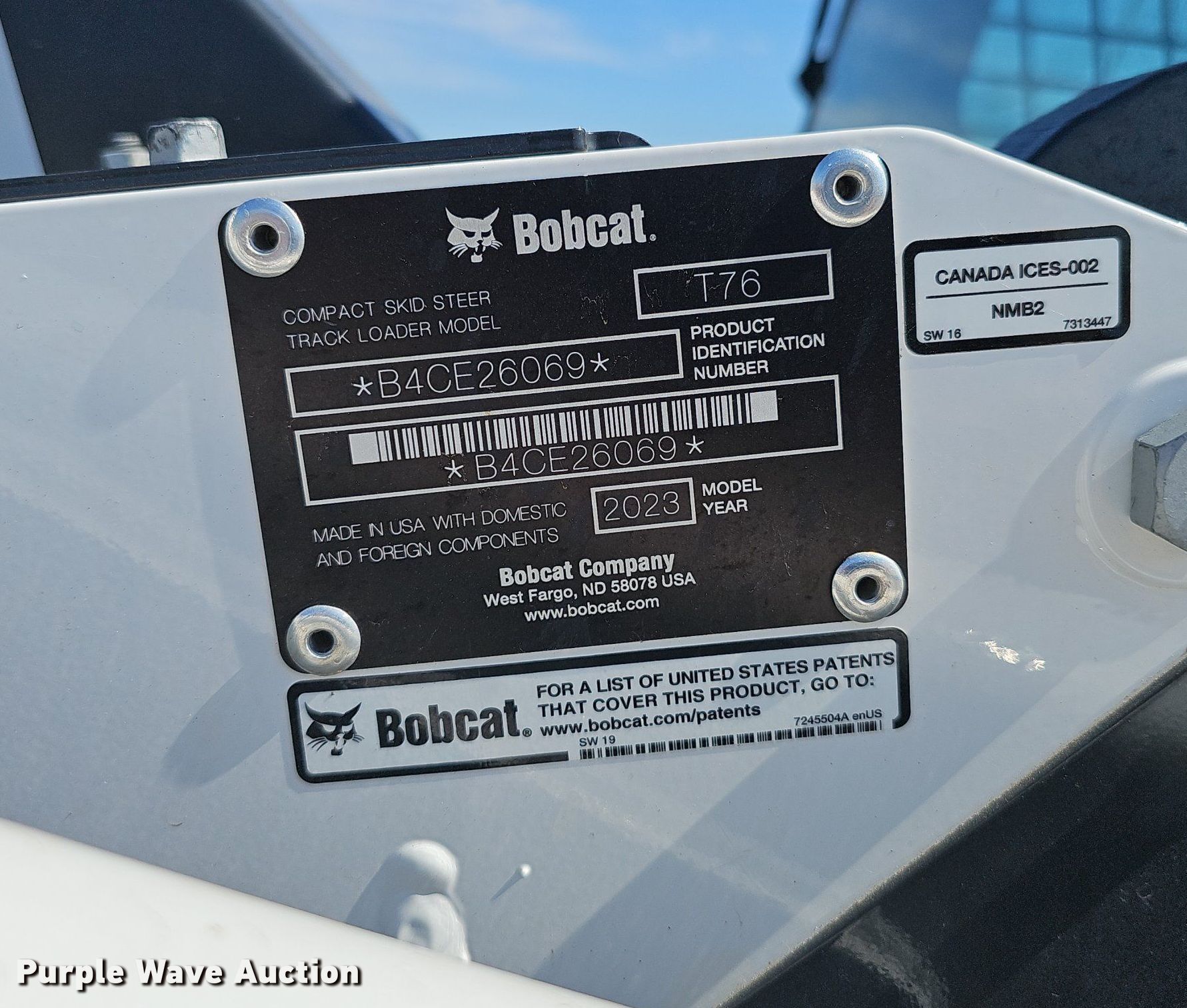 Purple Wave is selling a used Tracked Skid Steer Loader in Nebraska. This item is a 2023 Bobcat T76 tracked skid steer loader with the following: Hours: 1,346 on meter, Serial: B4CE26069