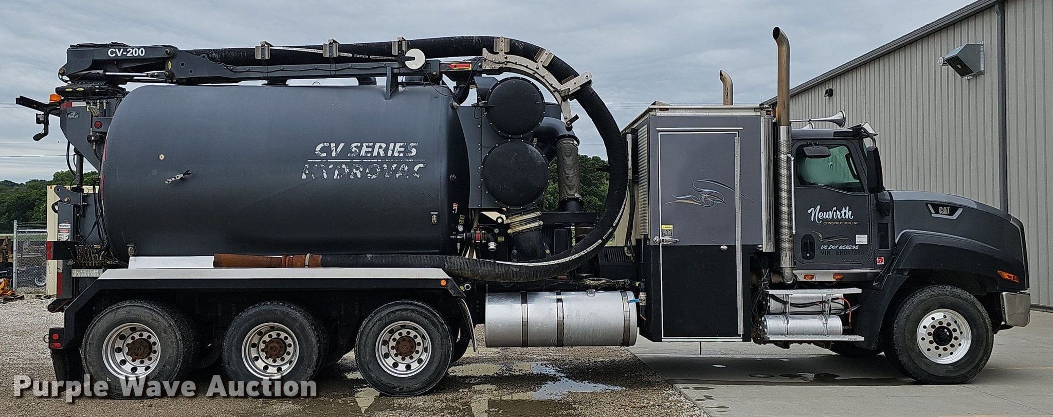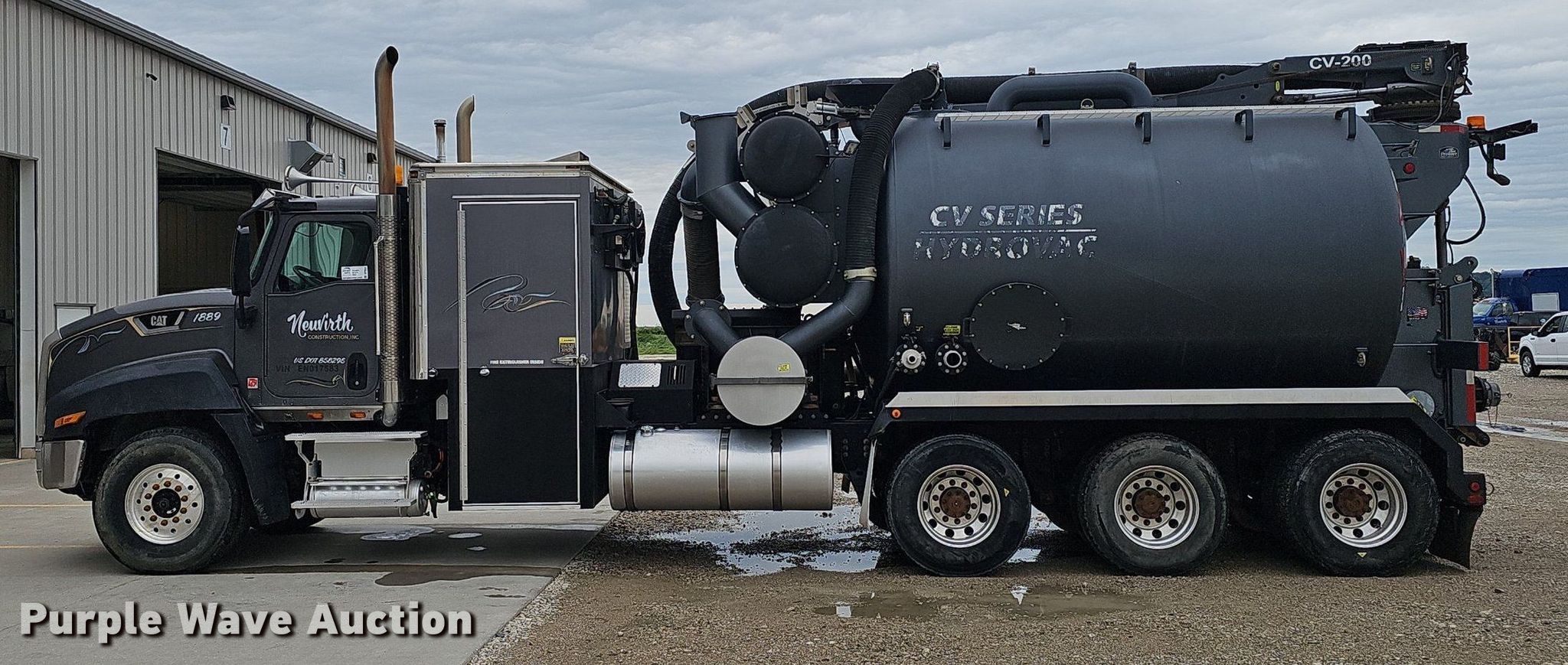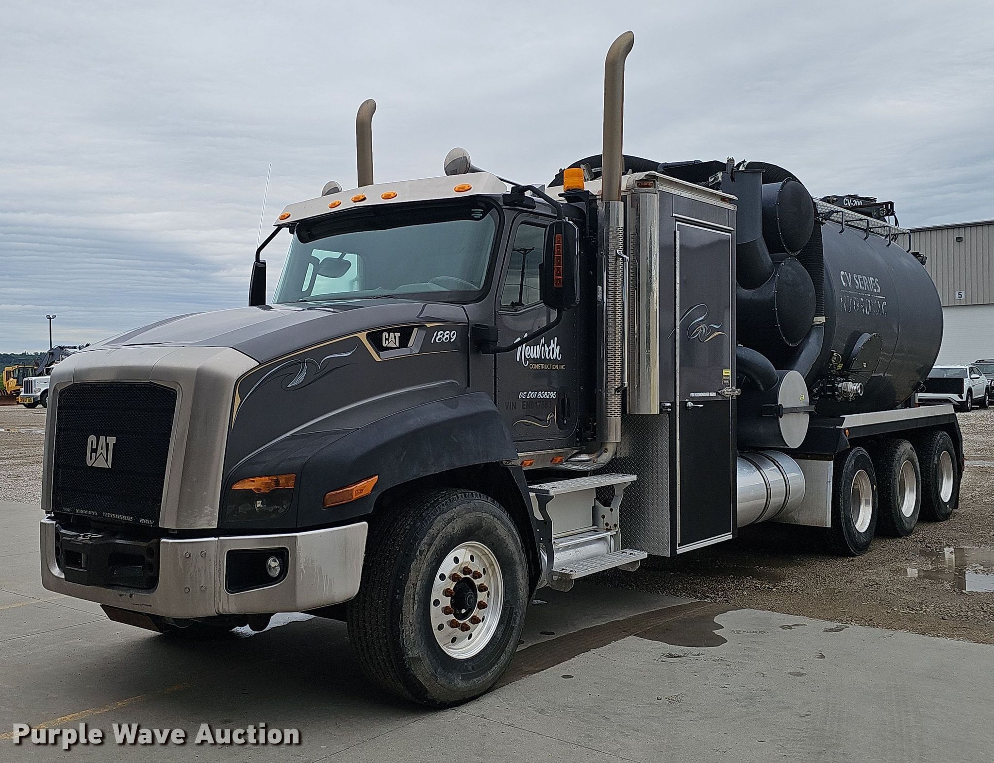 Purple Wave is selling a used Vacuum Truck in Iowa. This item is a 2014 Caterpillar CT660 tri-drive hydrovac truck with the following: Miles: 94,973 on odometer, Hours: 8,611 on meter, VIN: 3HTJLTKT4EN017583, Unit #: 1889