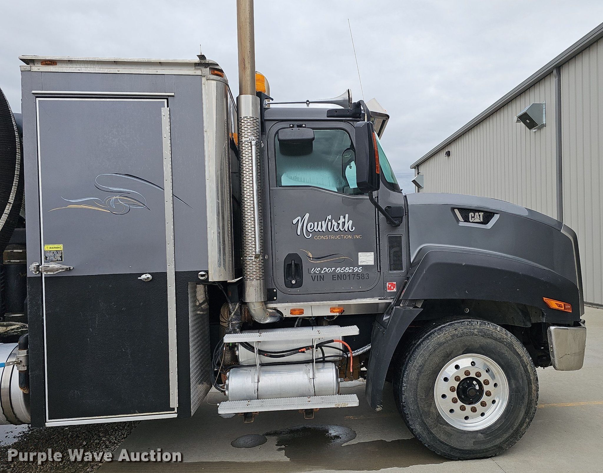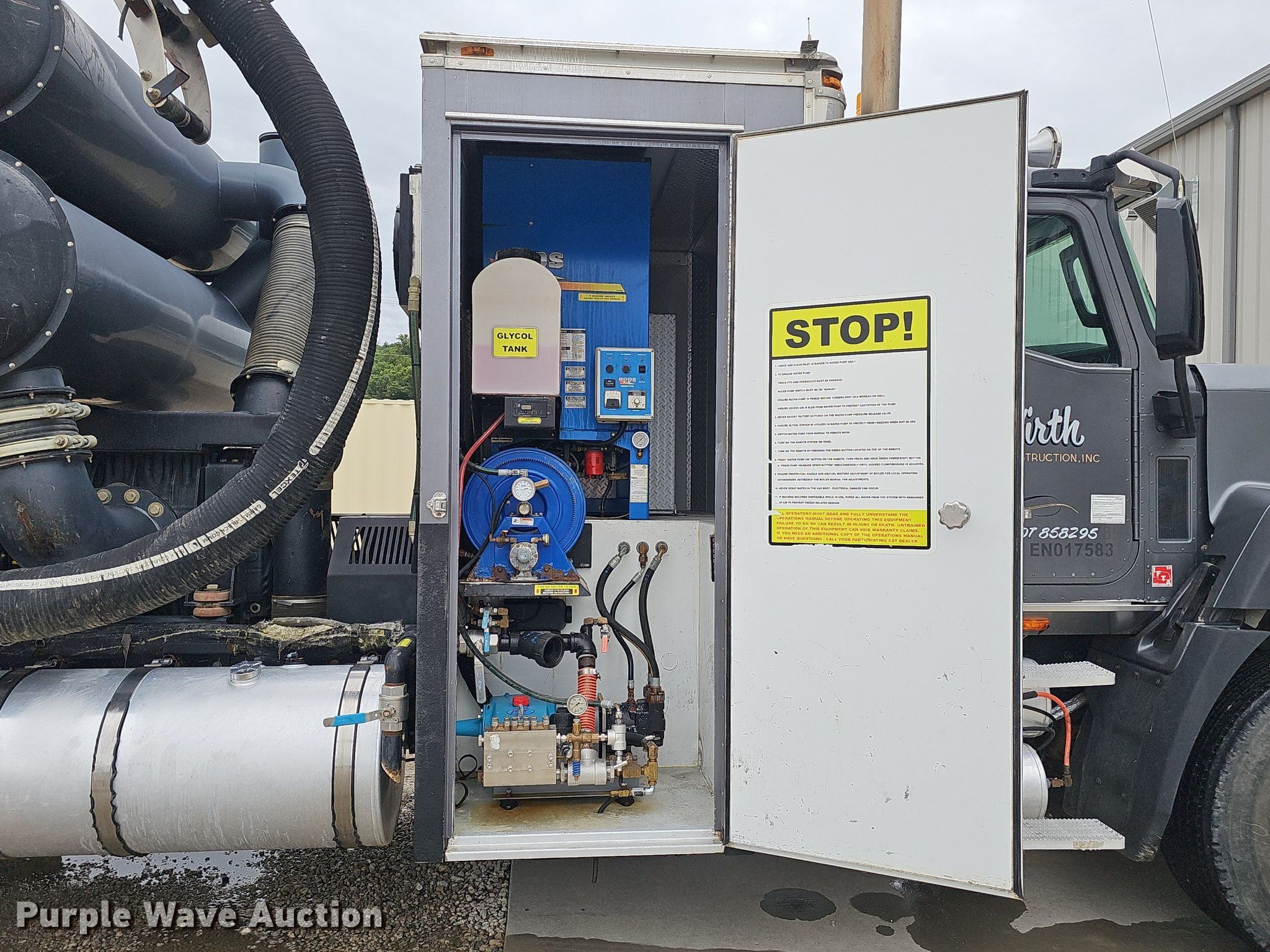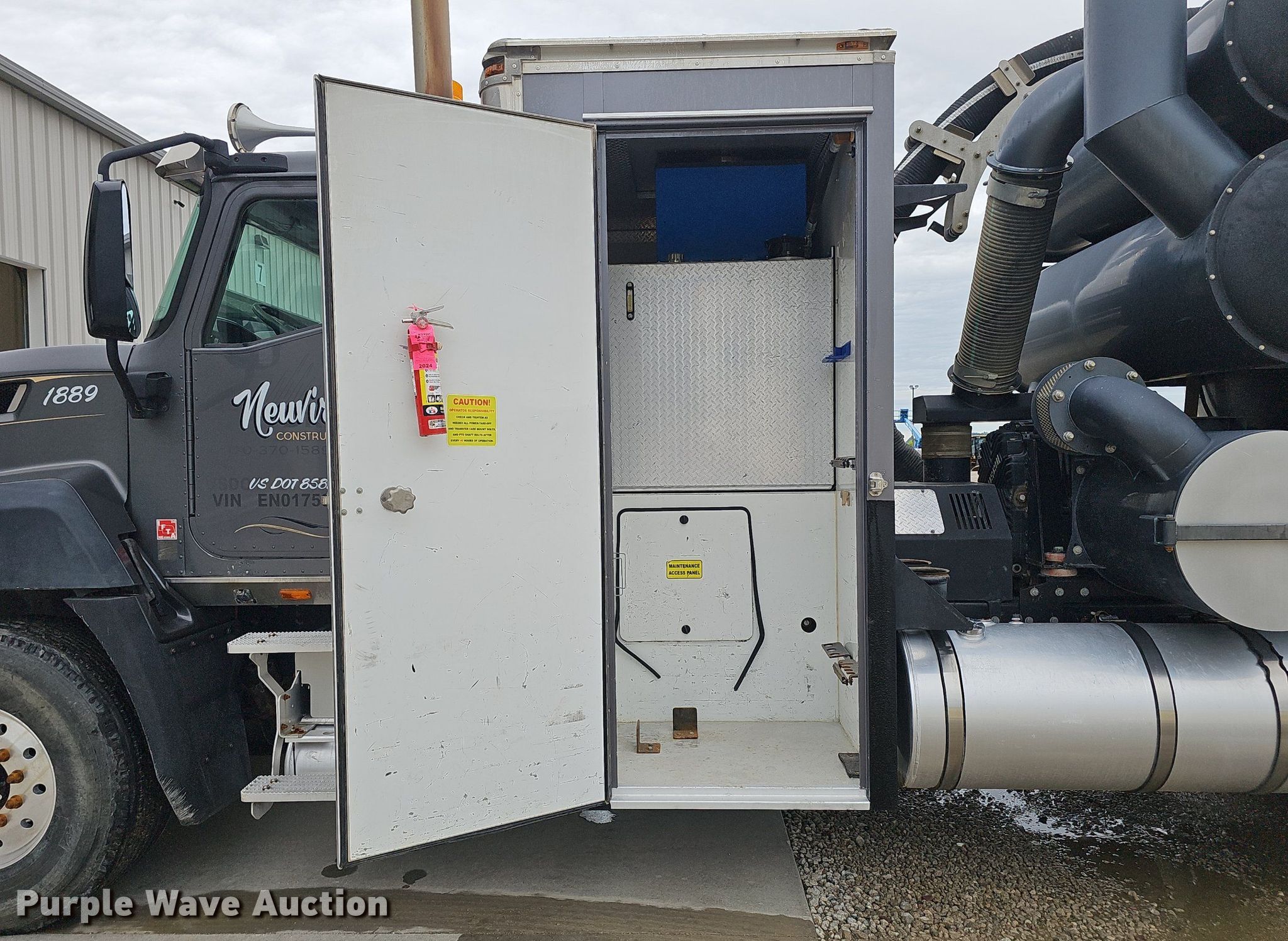 Purple Wave is selling a used Vacuum Truck in Iowa. This item is a 2014 Caterpillar CT660 tri-drive hydrovac truck with the following: Miles: 94,973 on odometer, Hours: 8,611 on meter, VIN: 3HTJLTKT4EN017583, Unit #: 1889