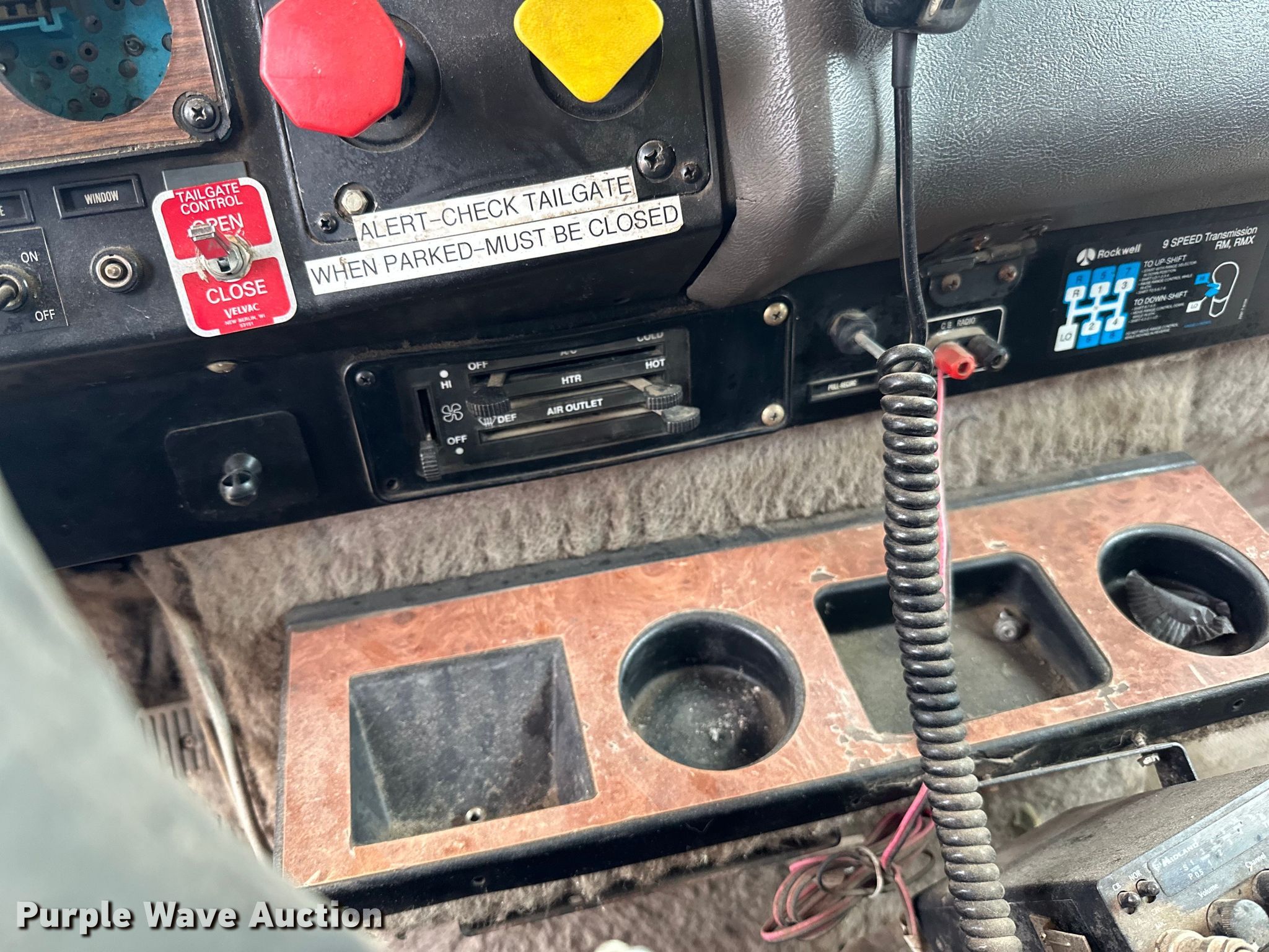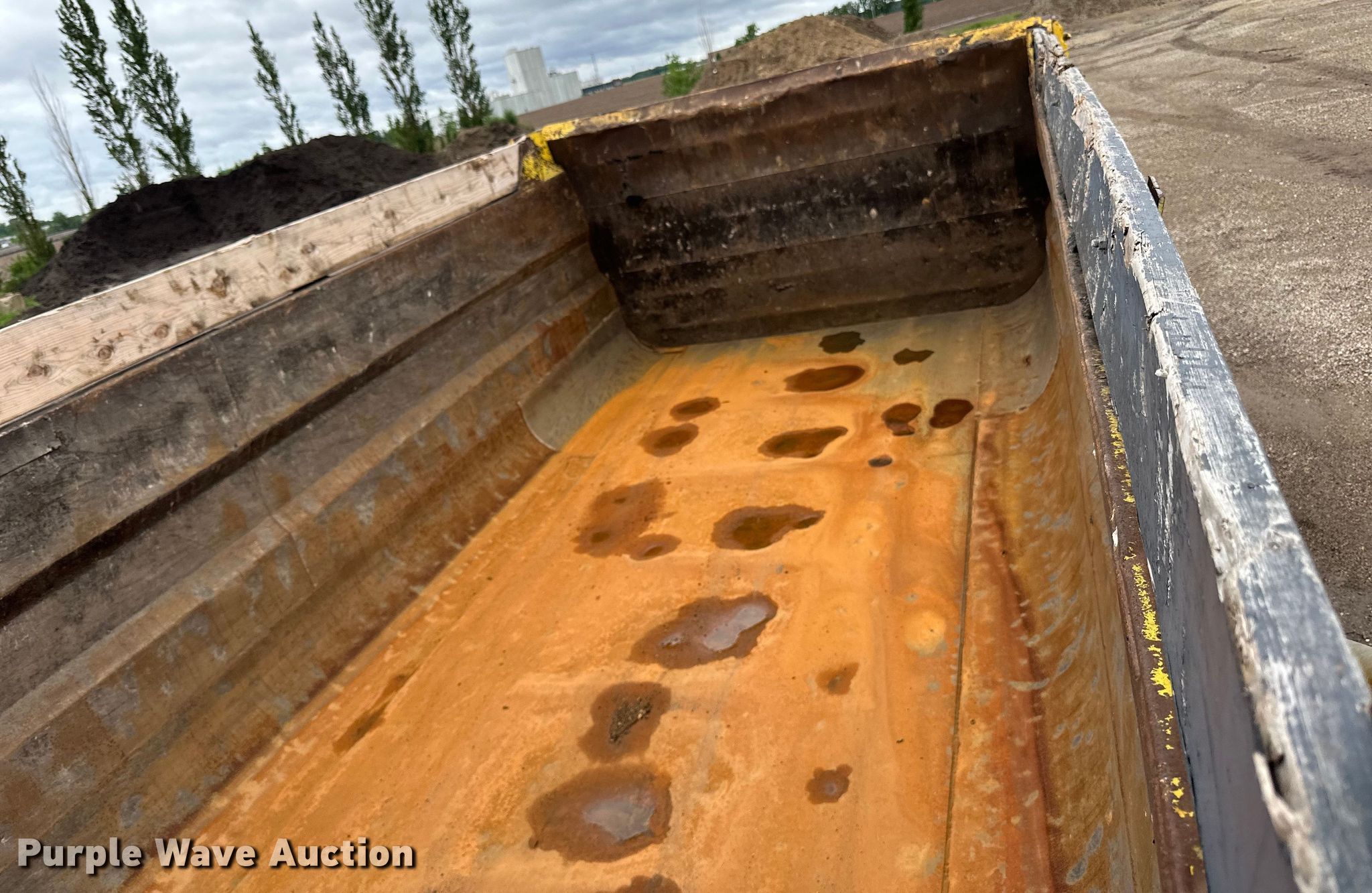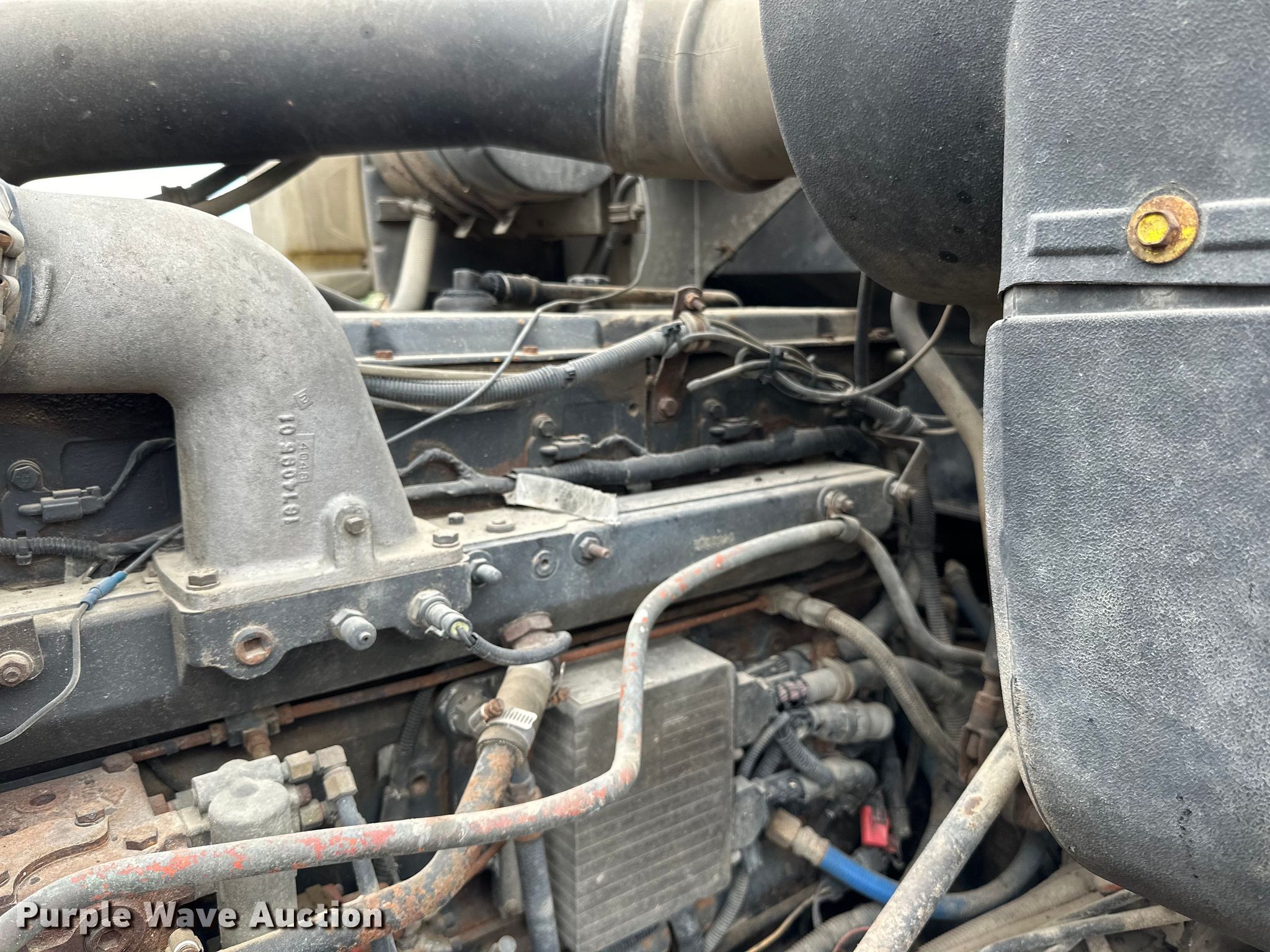 1994 International 9400 dump truck. Miles: 102 on odometer Actual mileage unknown, VIN: 2HSFHAER5RC012206. Engine Cummins, Displacement: 14.0L, Cylinders: 6, Fuel type: Diesel. Transmission Rockwell RM RMX, Manual, Speed: 9. Chassis Axles: Triple, Pusher axle, Differential lock: Inter-axle, Suspension: Air Dump valves, Brakes: Air, PTO, GVWR: 52,000 lbs FAWR: 12,000 lbs, RAWR: 20,000 lbs. Interior AC, Heat, Heated mirrors, Cruise control. Features Dump bed 16' 5" L x 8' W, Side height: 42", Side board height: 7.5", Bed type: Steel, Roll tarp, Ram: Single, End gate: Air operated. Tires Front: 315/80R22.5, Rear: 11R22.5, Lift axle: 255/70R22.5. Minnesota title. Mileage has not been verified. Exempt will be written in the odometer disclosure on the title. Roger & Sons. Austin, MN 55912