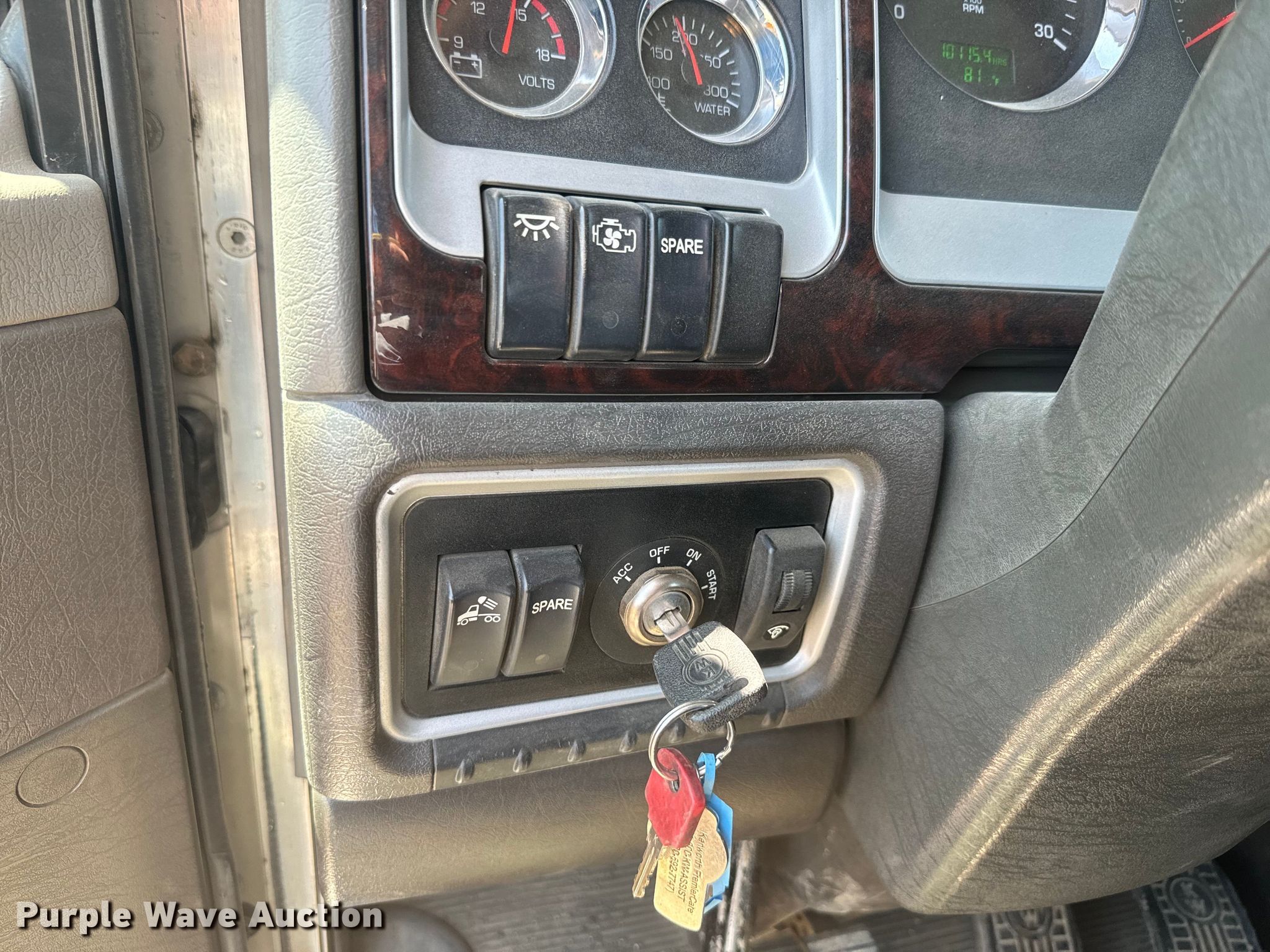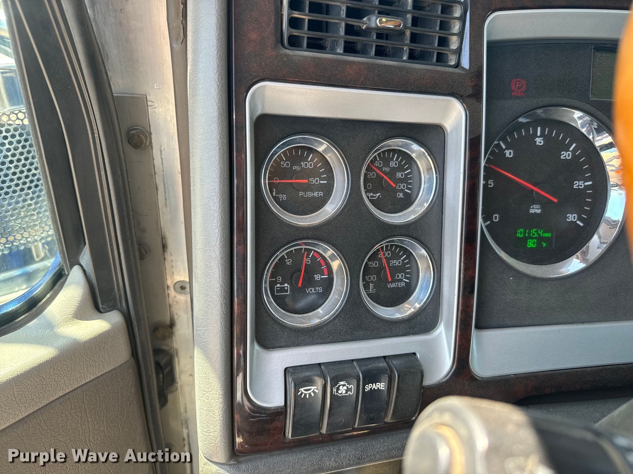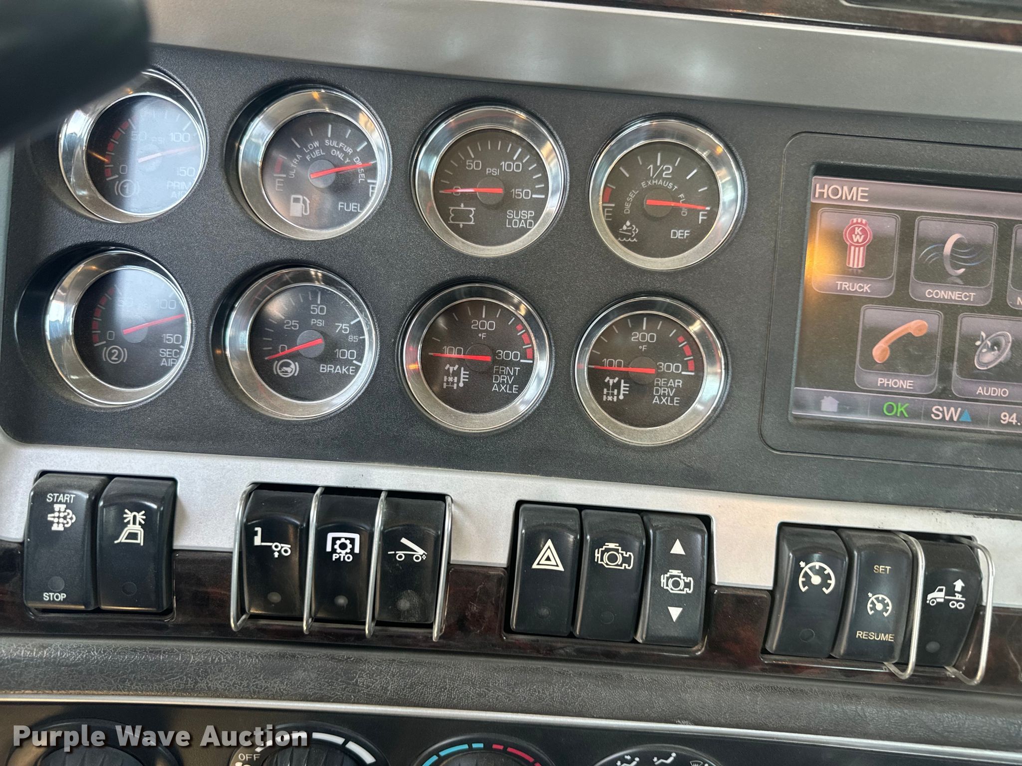 2013 Kenworth W900 semi truck. Miles: 396,378 on odometer, Hours: 10,116 on meter, VIN: 1XKWP4EX9DJ339539. Engine Cummins, Displacement: 14.9L, Cylinders: 6, Fuel type: Diesel, Engine brake. Transmission Manual, Speed: 18. Chassis Axles: Triple, Pusher axle Steerable, Differential lock: Inter-axle, Suspension: Air Dump valves, Brakes: Air, PTO, Wet kit, GVWR: 78,240 lbs FAWR: 15,700 lbs, IAWR: 23,000 lbs, RAWR: 23,000 lbs, Lift axle GAWR: 16,540 lbs. Interior AC, Heat, Power windows, Power locks, Cruise control, Air ride cab. Features Deck plate: Aluminum, Fifth wheel type: Air operated, Sliding, Fuel tank: Dual. Tires Front: 305/75R24.5, Rear: 11R24.5, Lift axle: 305/75R24.5. Kansas title. Title distribution may be delayed up to 14 days from verification of funds. Concrete Unlimited. Topeka, KS 66607
