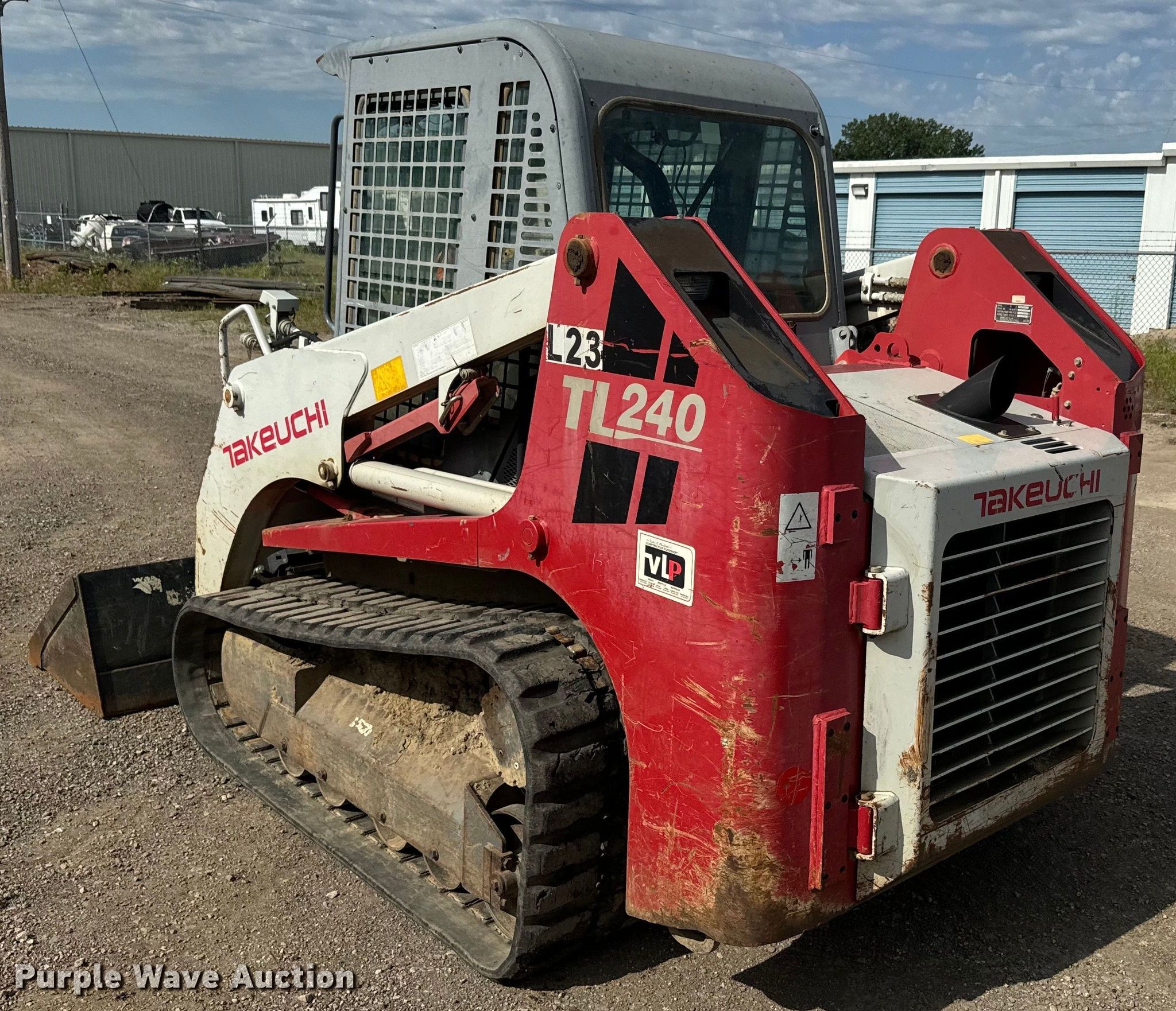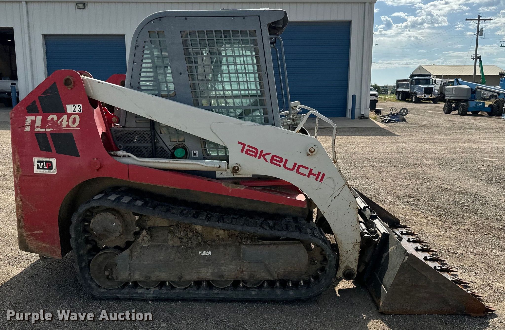 Purple Wave is selling a used Tracked Skid Steer Loader in Kansas. This item is a 2012 Takeuchi TL240 tracked skid steer loader with the following: Hours: 4,153 on meter, Serial: 224001879
