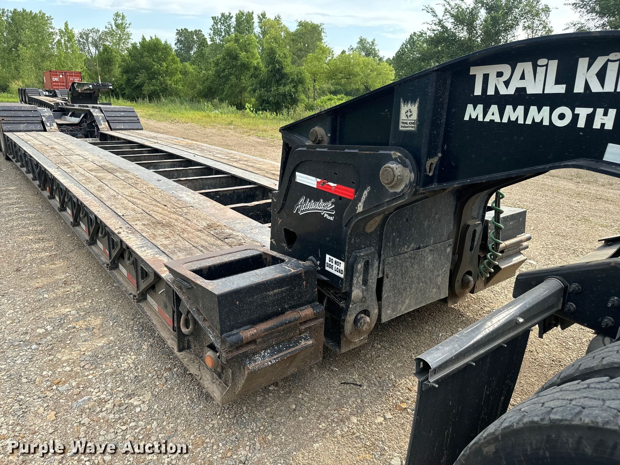 2018 Trail King lowboy equipment trailer. VIN: 1TKJ05333JM126444. Dimensions Overall: 53' L x 102" W, Deck: 26' L x 102 " W, Rear deck length: 14', Ramps: Manual Length: 24". Features Deck type: Wood, Outriggers: Swing-out Board size: 12", Neck type: Detachable, Hydraulic controls: Manual. Chassis Suspension: Air, Brakes: Air, Axles: Triple, GVWR: 110,000 lbs. Tires Aluminum wheels, Size: 275/70R22.5. Kansas title. Title distribution may be delayed up to 14 days from verification of funds. Mammoth Built/Mammoth Sports Construction. Meriden, KS 66512