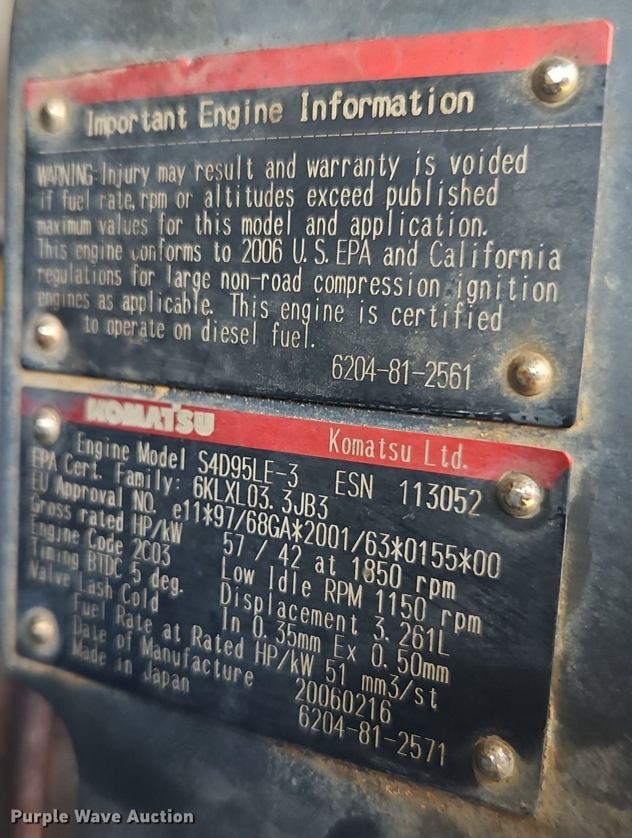 2006 Komatsu PC78MR-6 mini excavator. Hours: 8,086 on meter, Serial: KMTPC029P01002467. Engine Komatsu S4D95LE-3, Displacement: 3.261L, Cylinders: 4, Fuel type: Diesel. Transmission Hydrostatic, Two speed travel. Operators station Enclosed cab, AC, Heat, Pattern changer. Features Auxiliary hydraulics Standard, Two-way, Counter weights, Removable, Backfill blade Width: 91", Boom Swing, Stick Stick length: 7' 6", Quick coupler: Mechanical Werk Brau, Bucket Werk Brau, Width: 18", Teeth: 4. Tracks Width: 17.5", Steel, Track pads: Rubber. Notes Glass cracked, Front lower glass missing, Cab door missing, Unknown operating condition of AC compressor, missing belt. Heartland Midwest LLC. Olathe, KS 66062