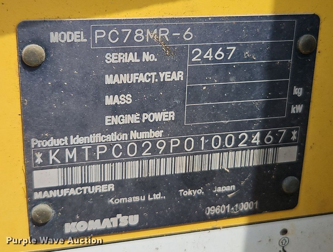 Purple Wave is selling a used Mini Excavator in Kansas. This item is a 2006 Komatsu PC78MR-6 mini excavator with the following: Hours: 8,086 on meter, Serial: KMTPC029P01002467