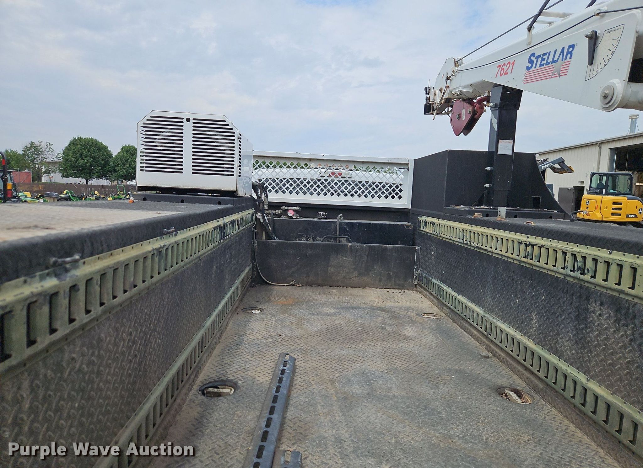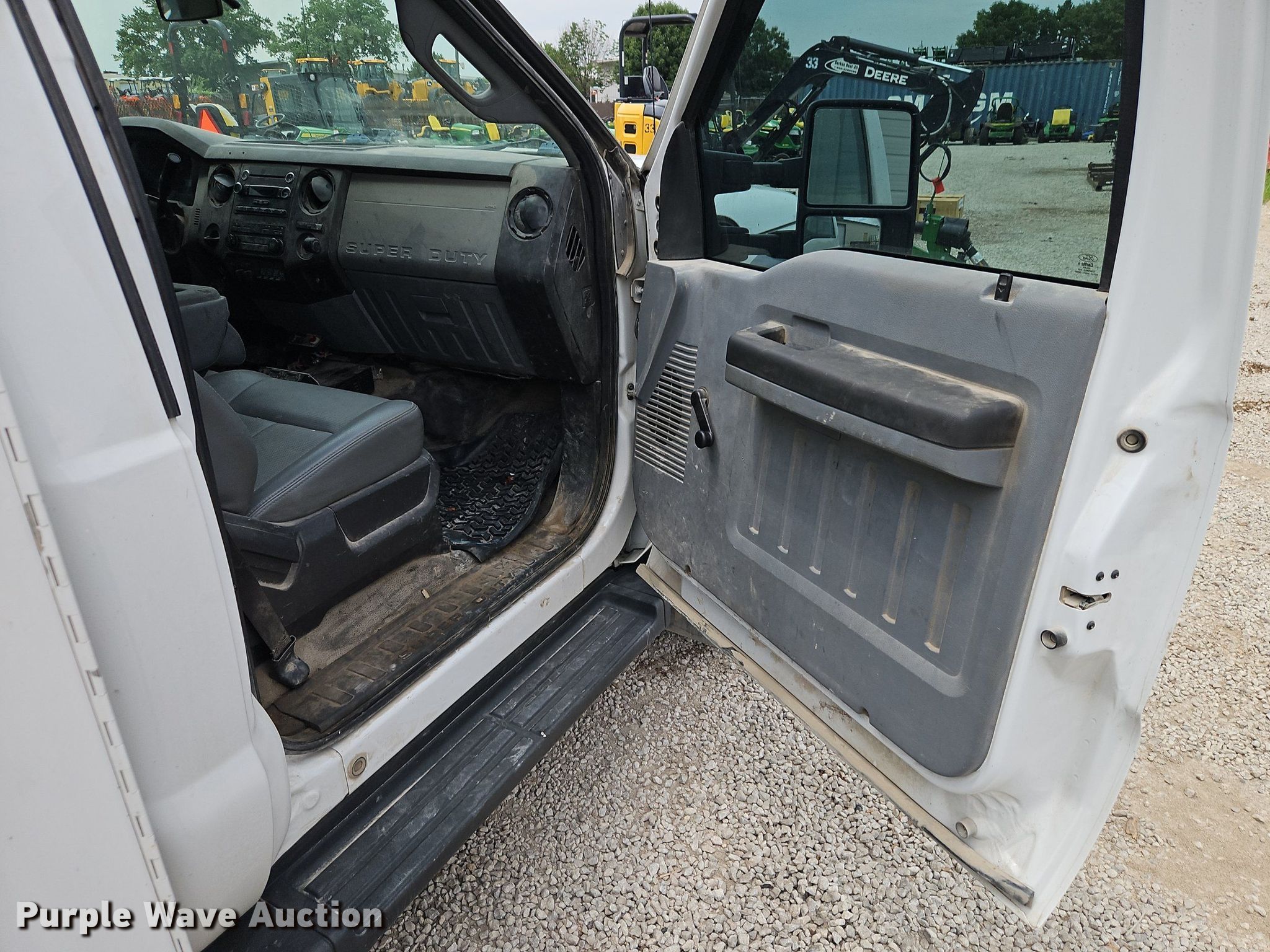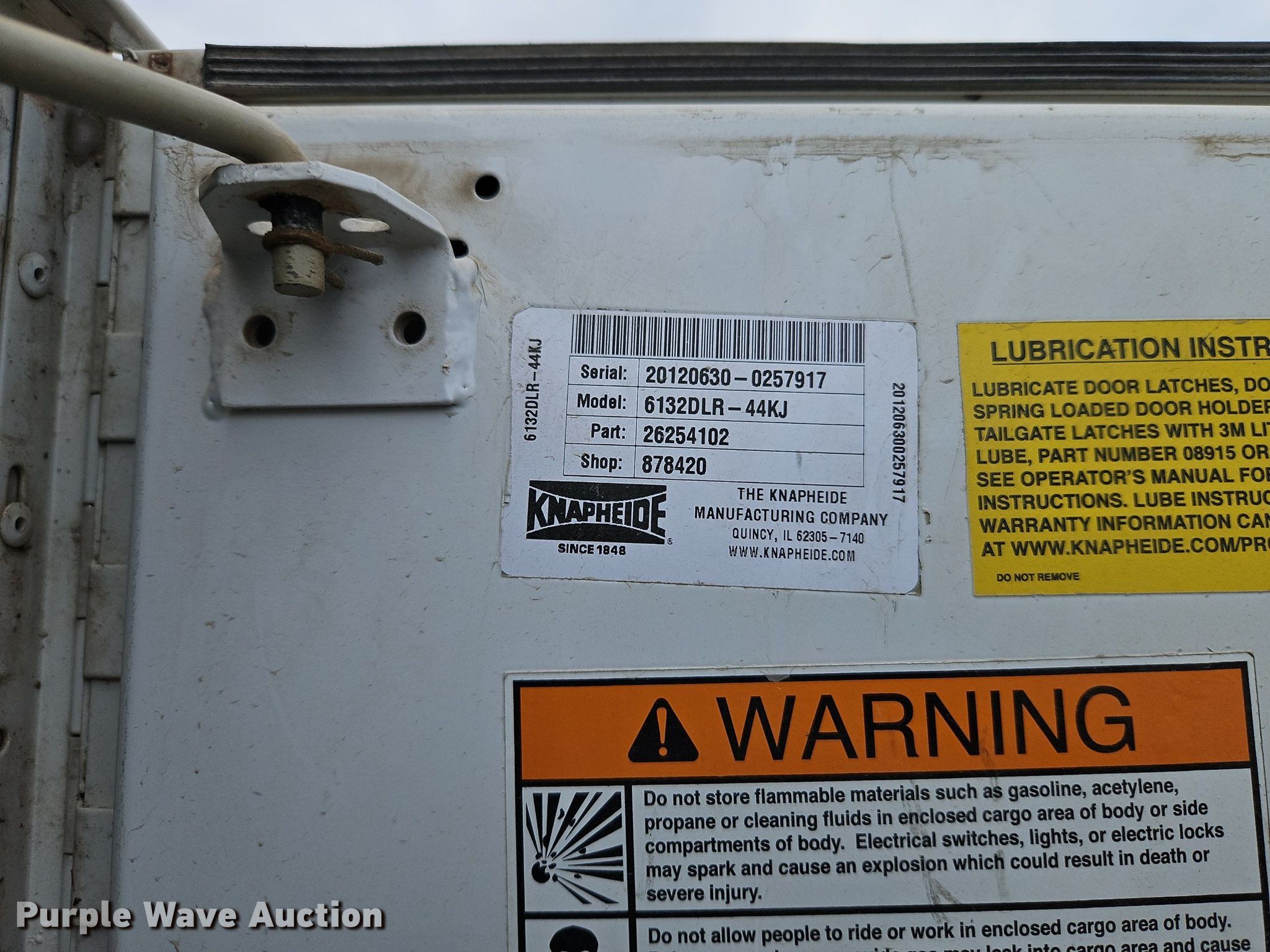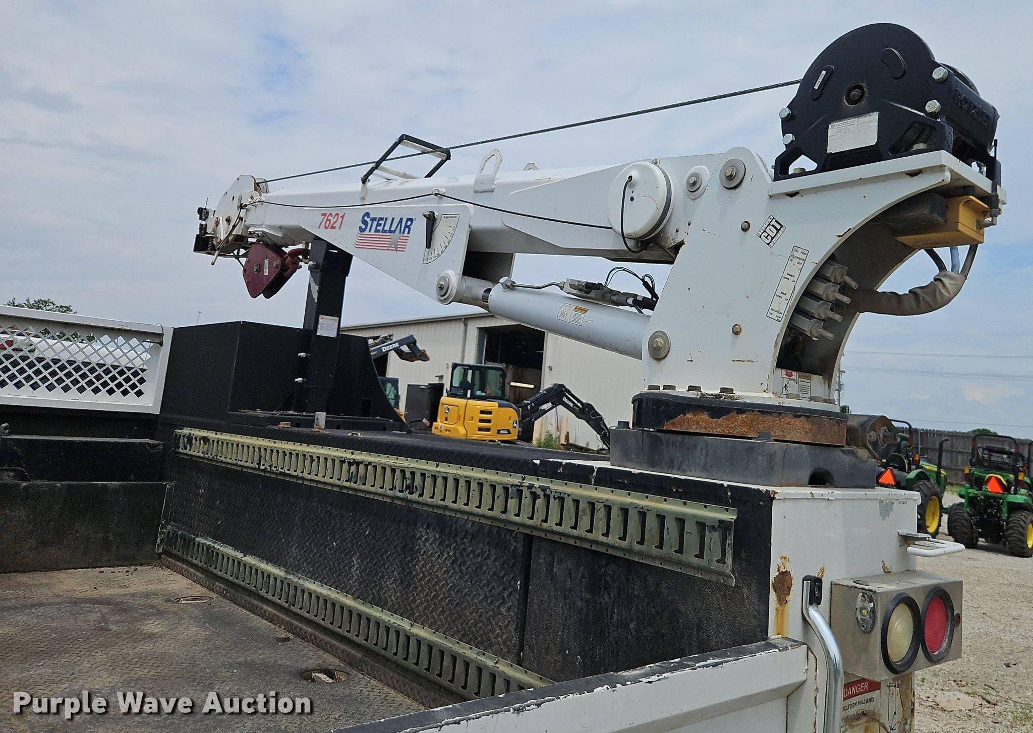 2012 Ford F550 XL Super Duty utility / service truck. Miles: 144,278 on odometer, VIN: 1FDUF5HT0CEC46660. Engine Displacement: 6.7L, Cylinders: 8, Fuel type: Diesel. Transmission Automatic. Chassis Four wheel drive, Axles: Single, Suspension: Spring, Brakes: Hydraulic, PTO, Wet kit, GVWR: 19,500 lbs. Interior AC, Heat, Power windows, Power locks, Cruise control, Auxiliary controls. Features Bed Knapheide 6132DLR-44KJ, 13'L x 96" W, Torch bottle rack, Air compressor Boss, Crane Stellar 7621, Maximum boom length: 21' Maximum lift capacity: 7,500 lbs.. Tires Size: 225/70R19.5. Notes Dash warning indicator: Check engine. Kansas title. Heritage Tractor. Olathe, KS 66062