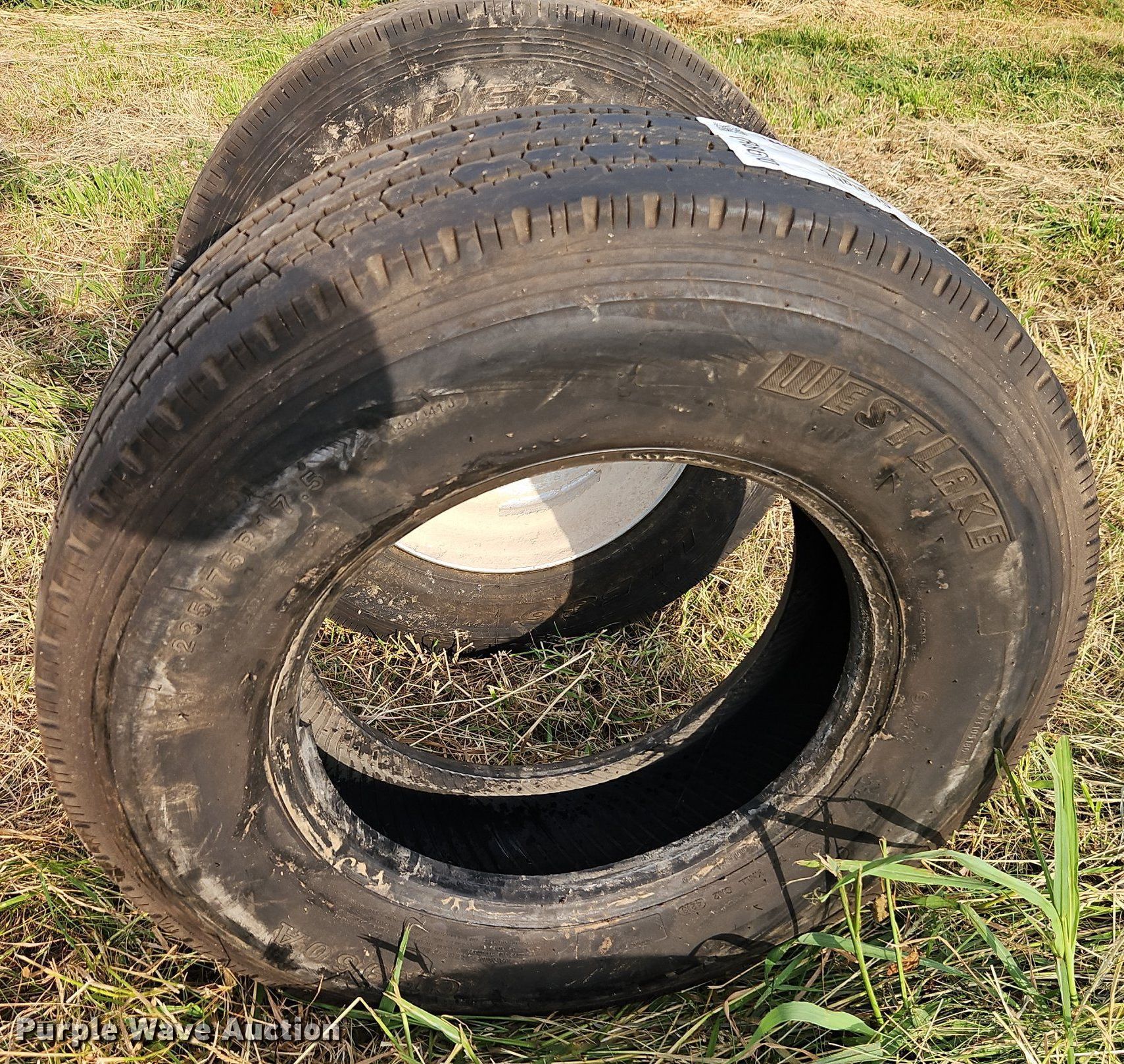 Purple Wave is selling a used Fleet Tires in Missouri. This item is a 235/75R17.5 tires with the following: (5) West Lake CR960A, Provider, Tire and aluminum wheel