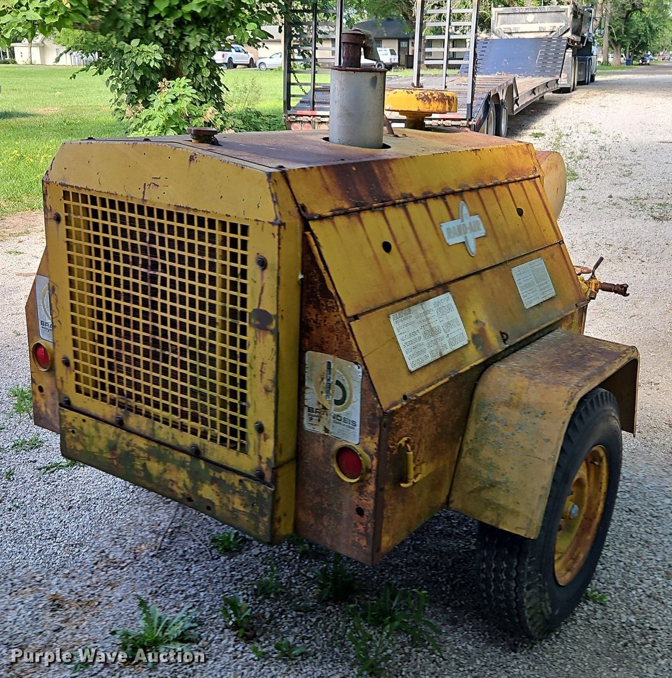 Rand-Air GRR-85 air compressor. Hours: 394 on meter, Serial: 6278871102. Engine International Harvester UC-135, Cylinders: 4, Fuel type: Gas. Features Air compressor Rand-Air GRR-85, CFM: 85, PSI: 100. Trailer 10' L x 66" W, Hitch: Pintle, Suspension: Spring, Axles: Single, Tire size: 7.00-15. Marks Excavation, LLC. Drexel, MO 64742