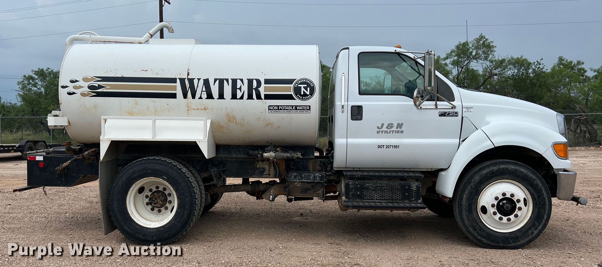 Purple Wave is selling a used Tank Truck or Water Truck in Texas. This item is a 2012 Ford F750 water truck with the following: Miles: 21,494 on odometer, VIN: 3FRXF7FA7CV199505, Unit #: 47