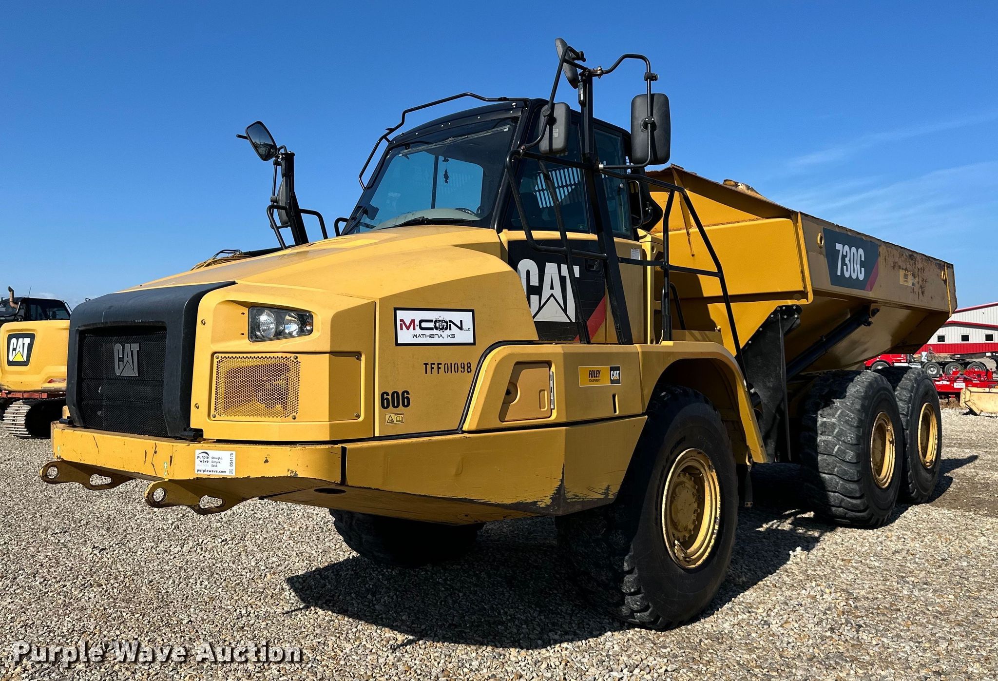 Purple Wave is selling a used Articulated Haul Truck in Kansas. This item is a 2015 Caterpillar 730C haul truck with the following: Hours: 7,442 on meter, Serial: CAT0730CLTFF01098