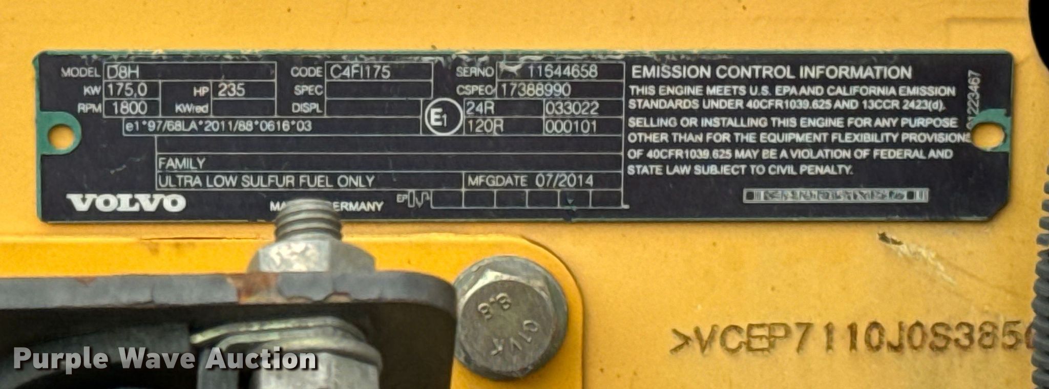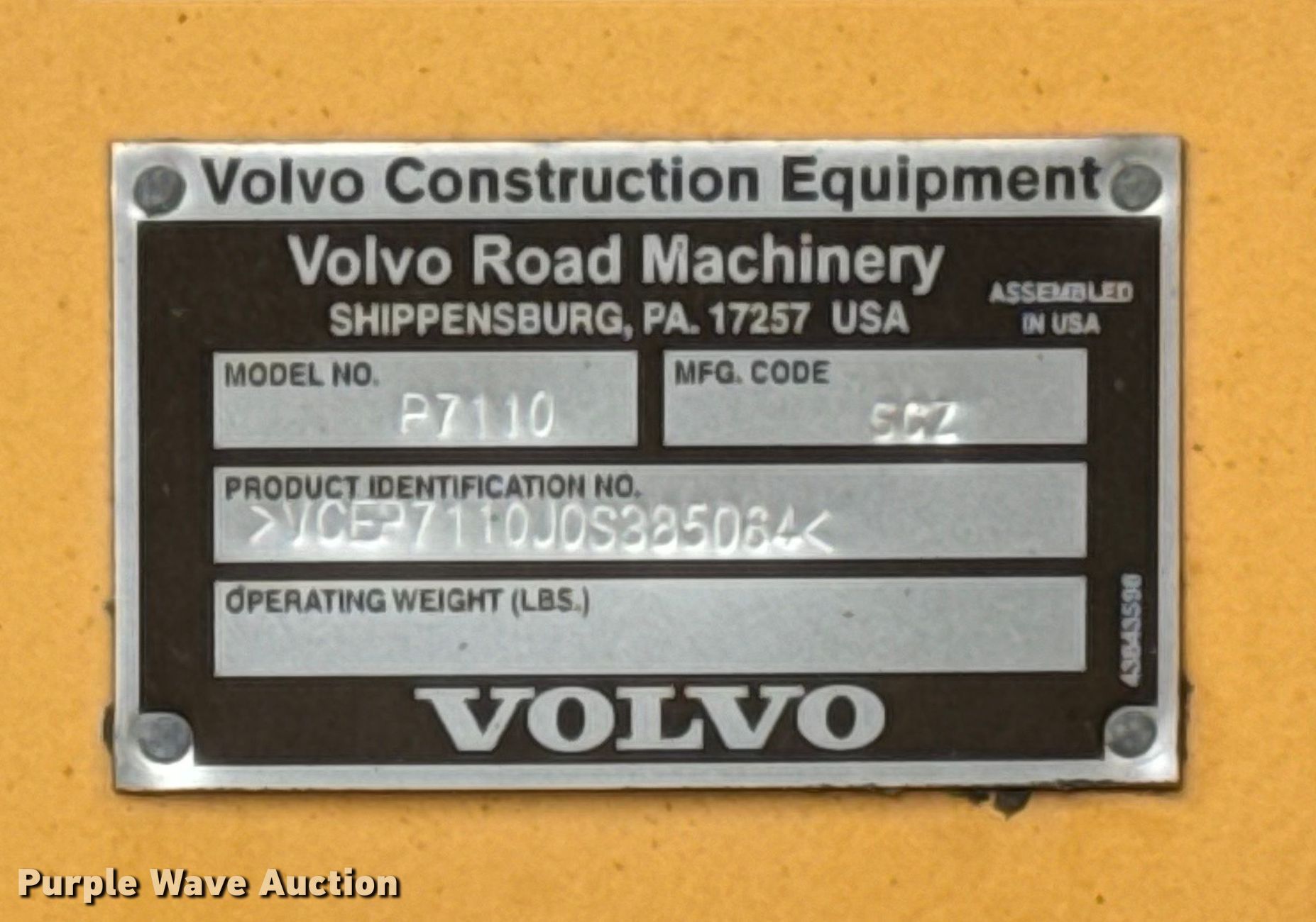 Purple Wave is selling a used Paver or Screed in Indiana. This item is a 2015 Volvo P7110 paver with the following: Hours: 6,847 on meter, Serial: VCEP7110J0S385064