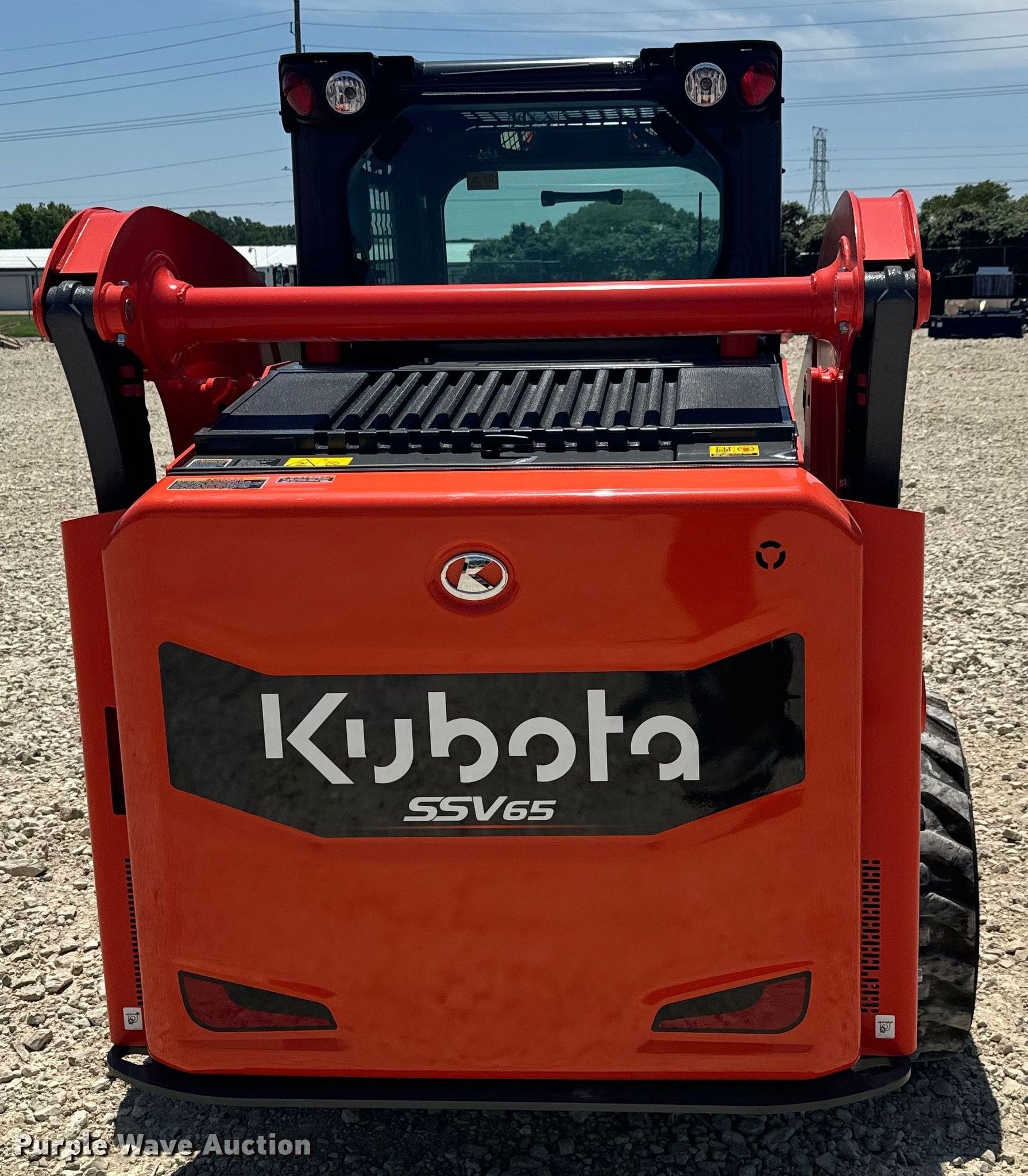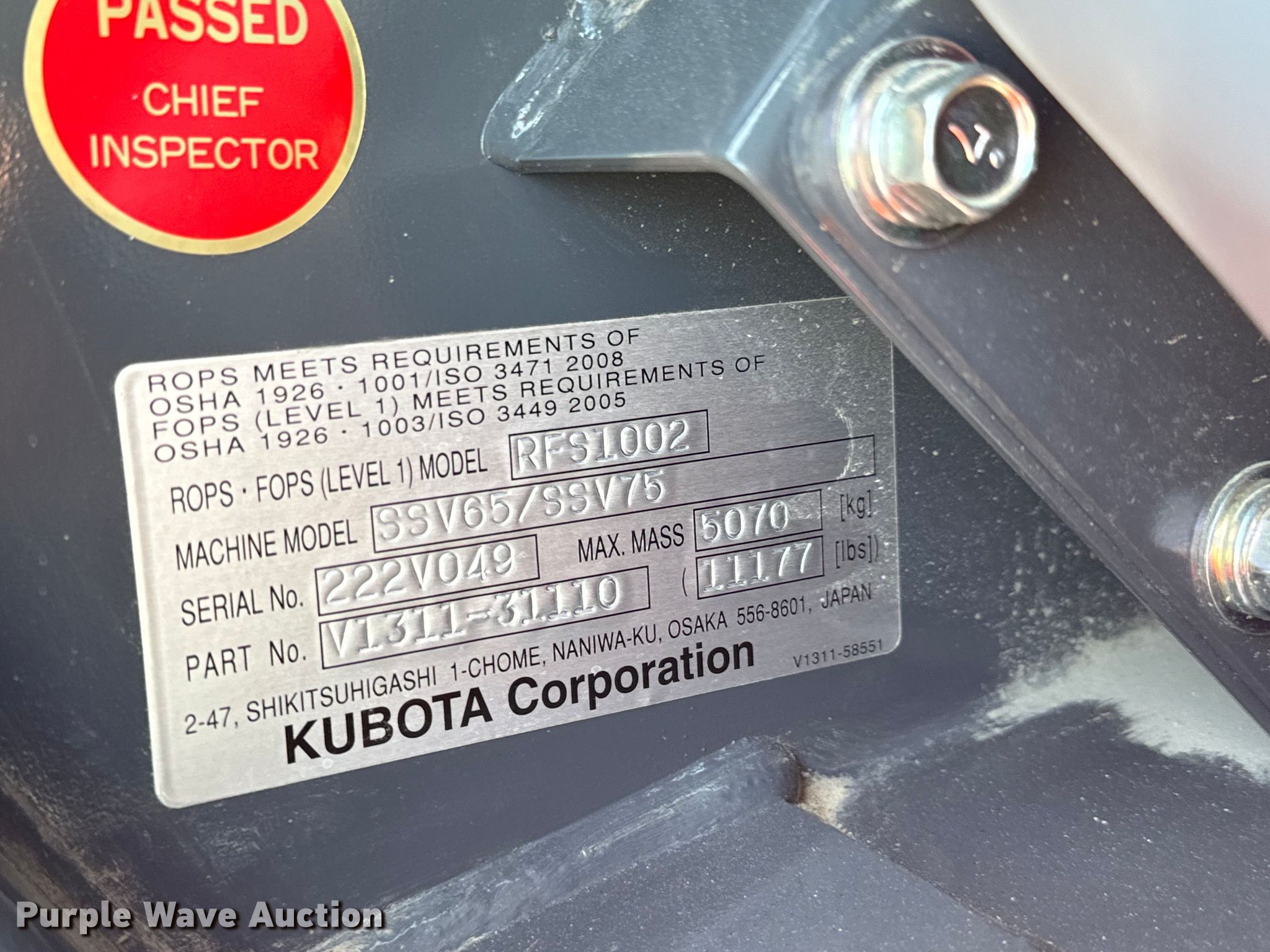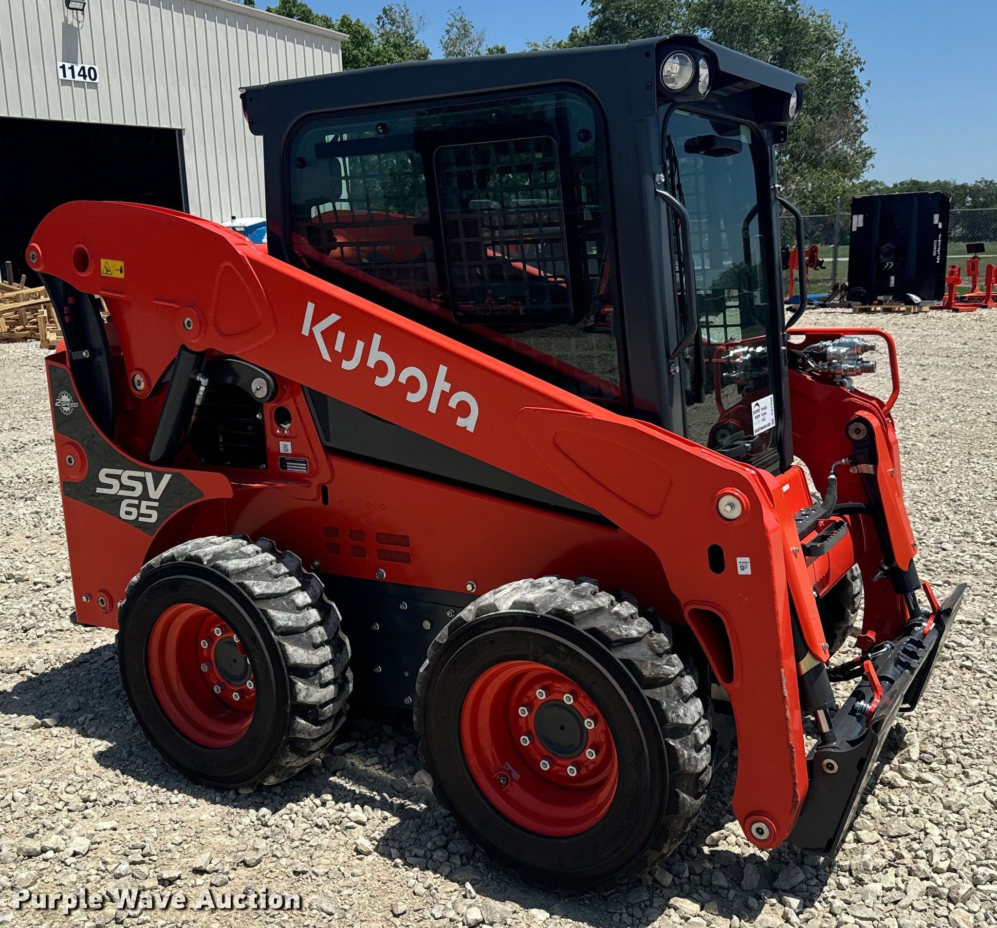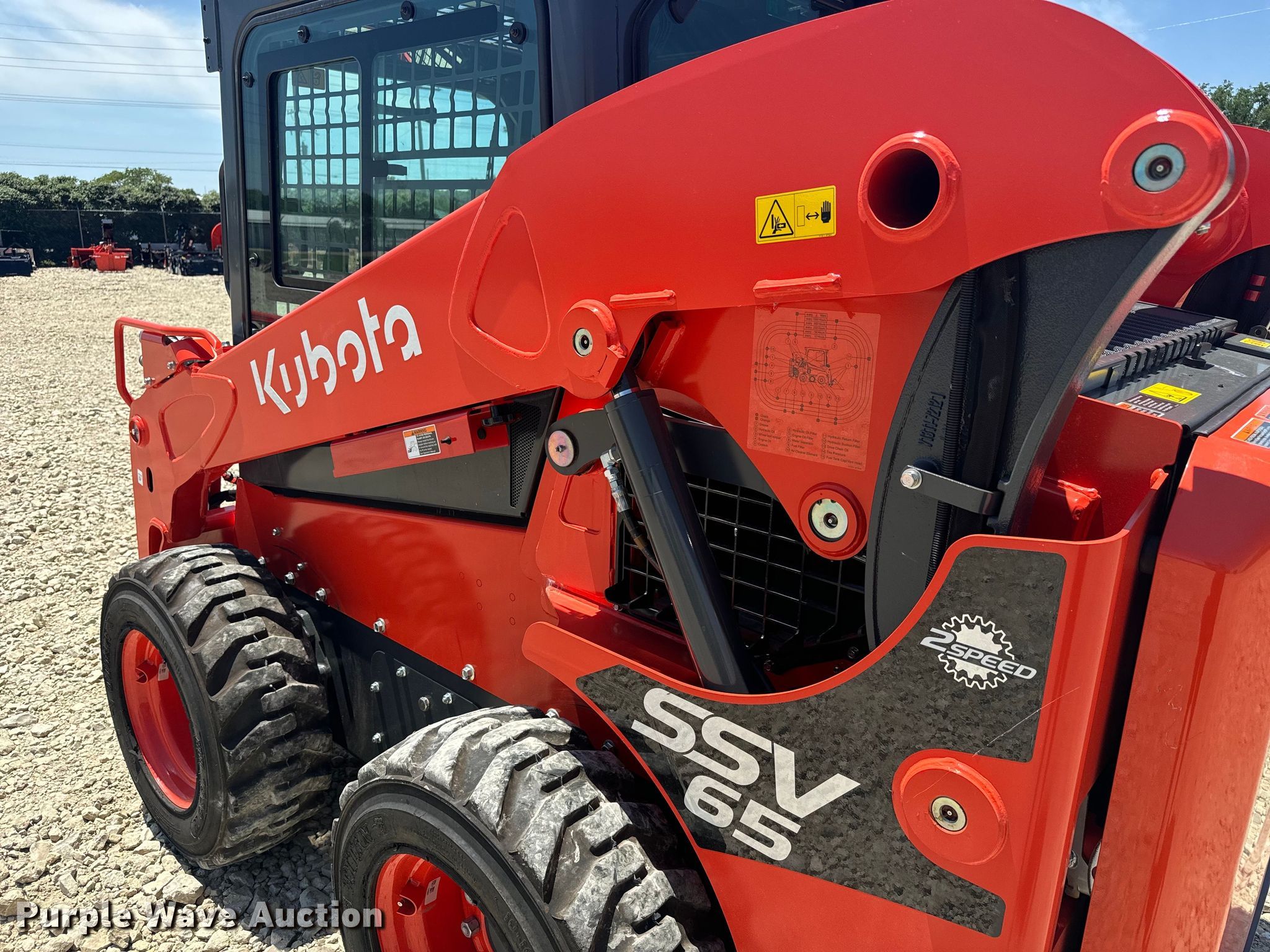 Purple Wave is selling a used Skid Steer Loader in Kansas. This item is a 2022 Kubota SSV65 skid steer loader with the following: Hours: 43 on meter, Serial: KBCZ131CTN3B55869