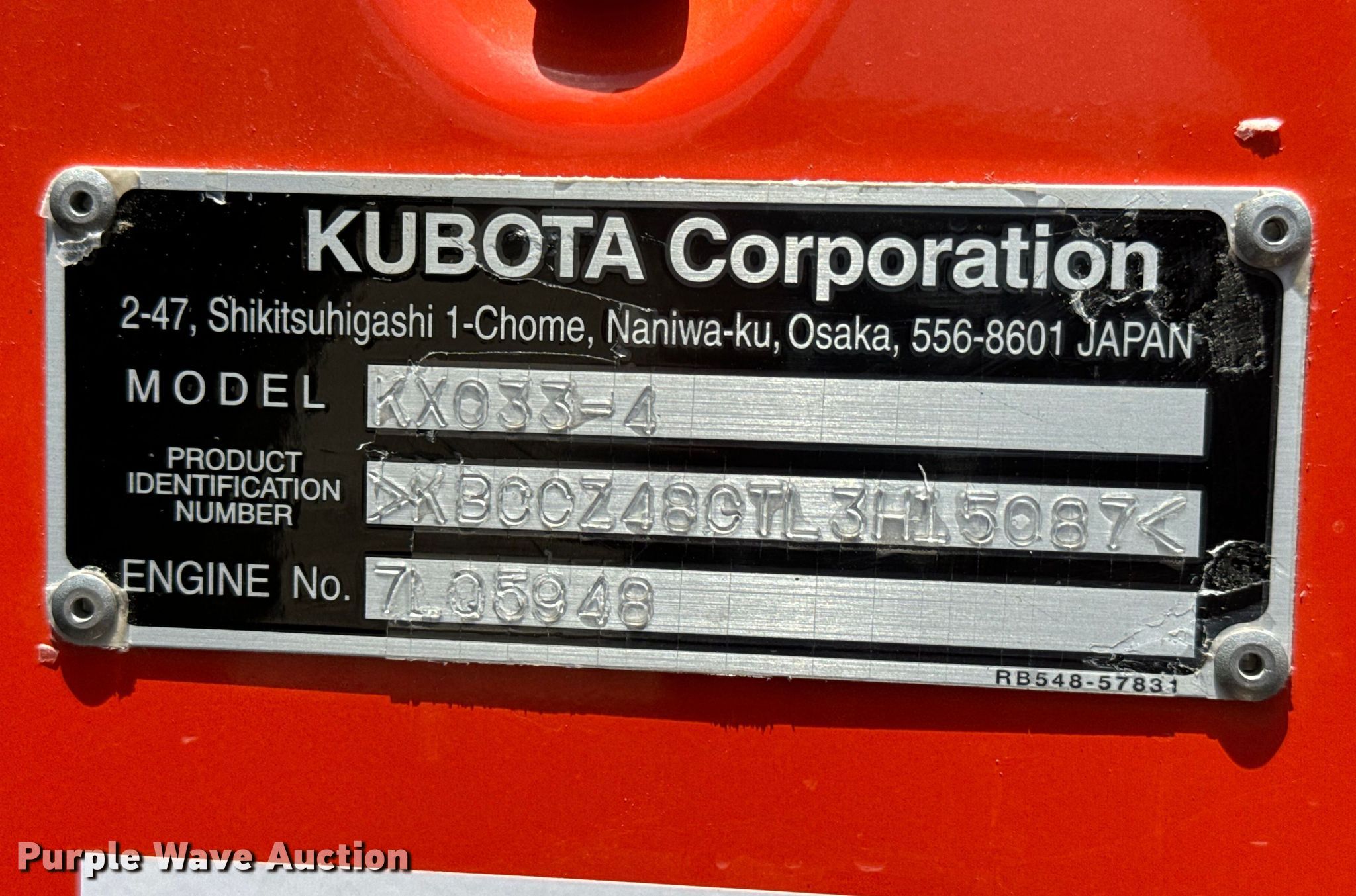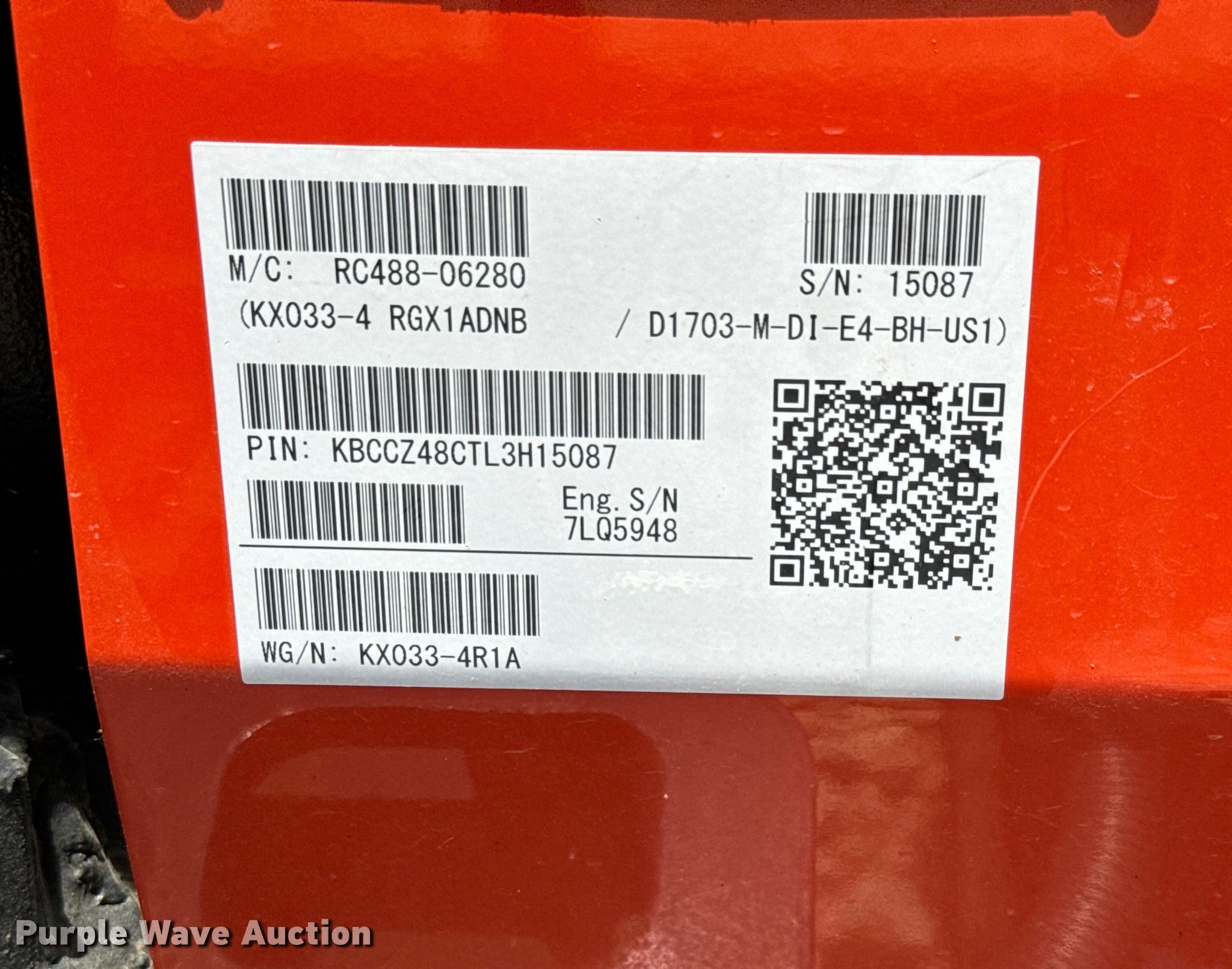 Purple Wave is selling a used Mini Excavator in Kansas. This item is a 2020 Kubota KX033-4 mini excavator with the following: Hours: 58 on meter, Serial: KBCCZ48GTL3H15087
