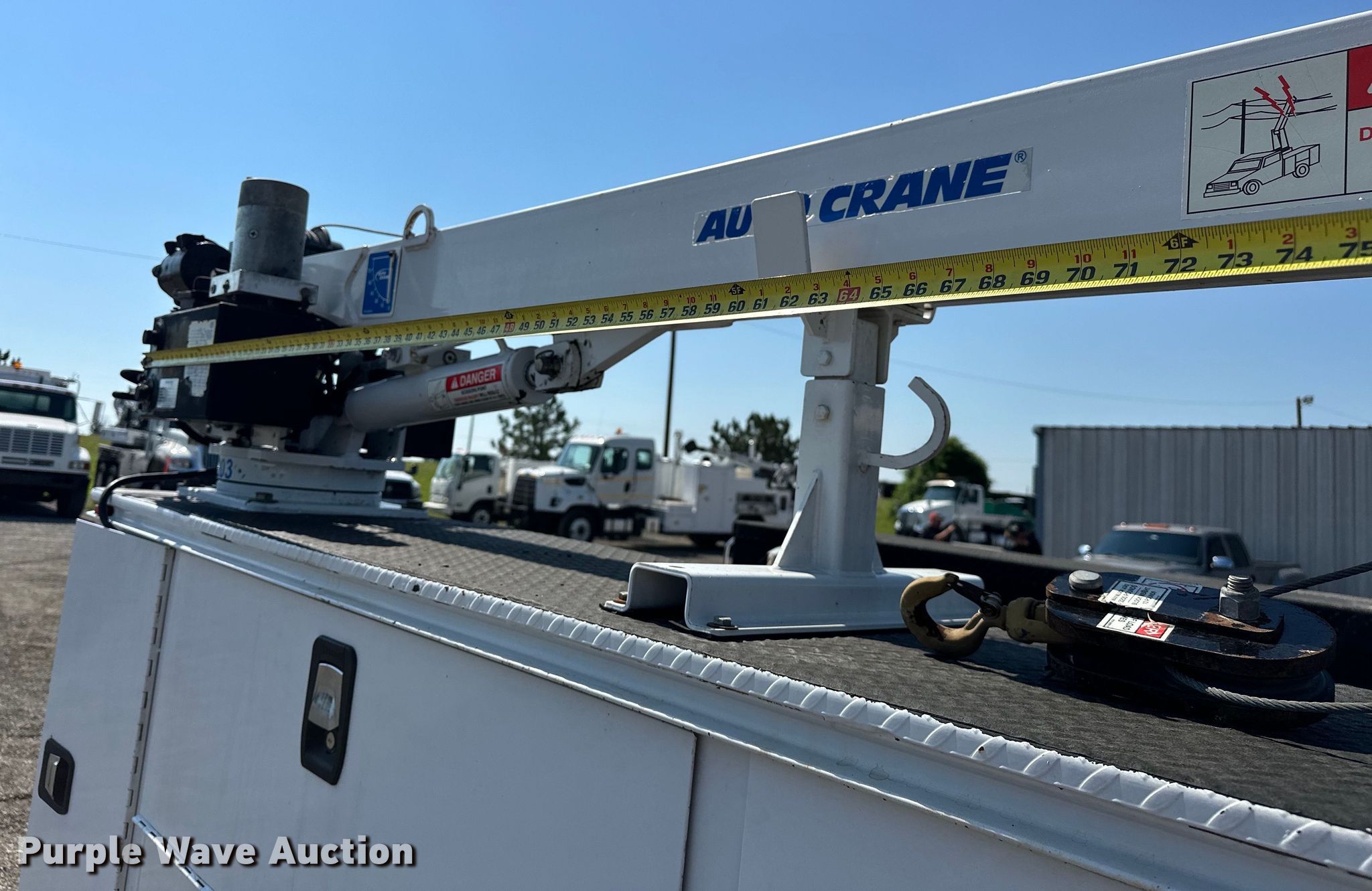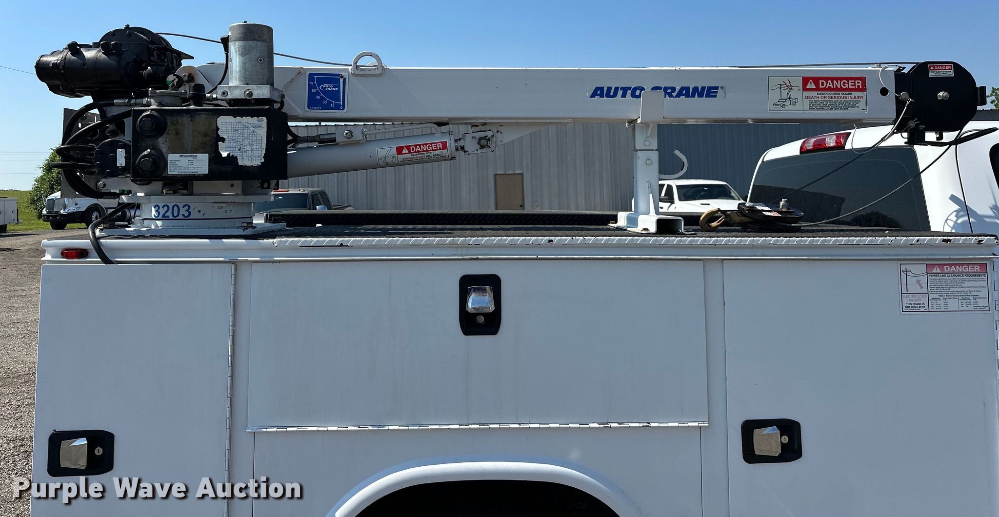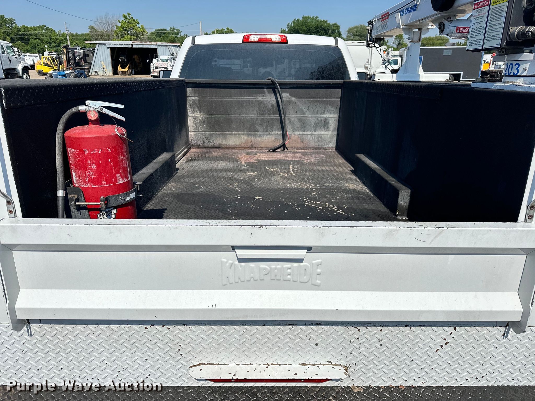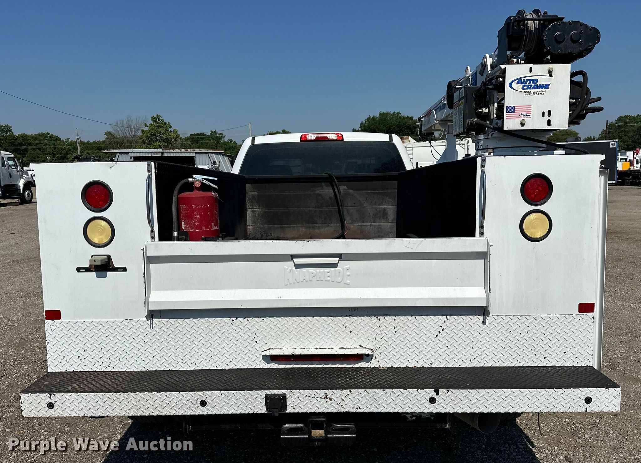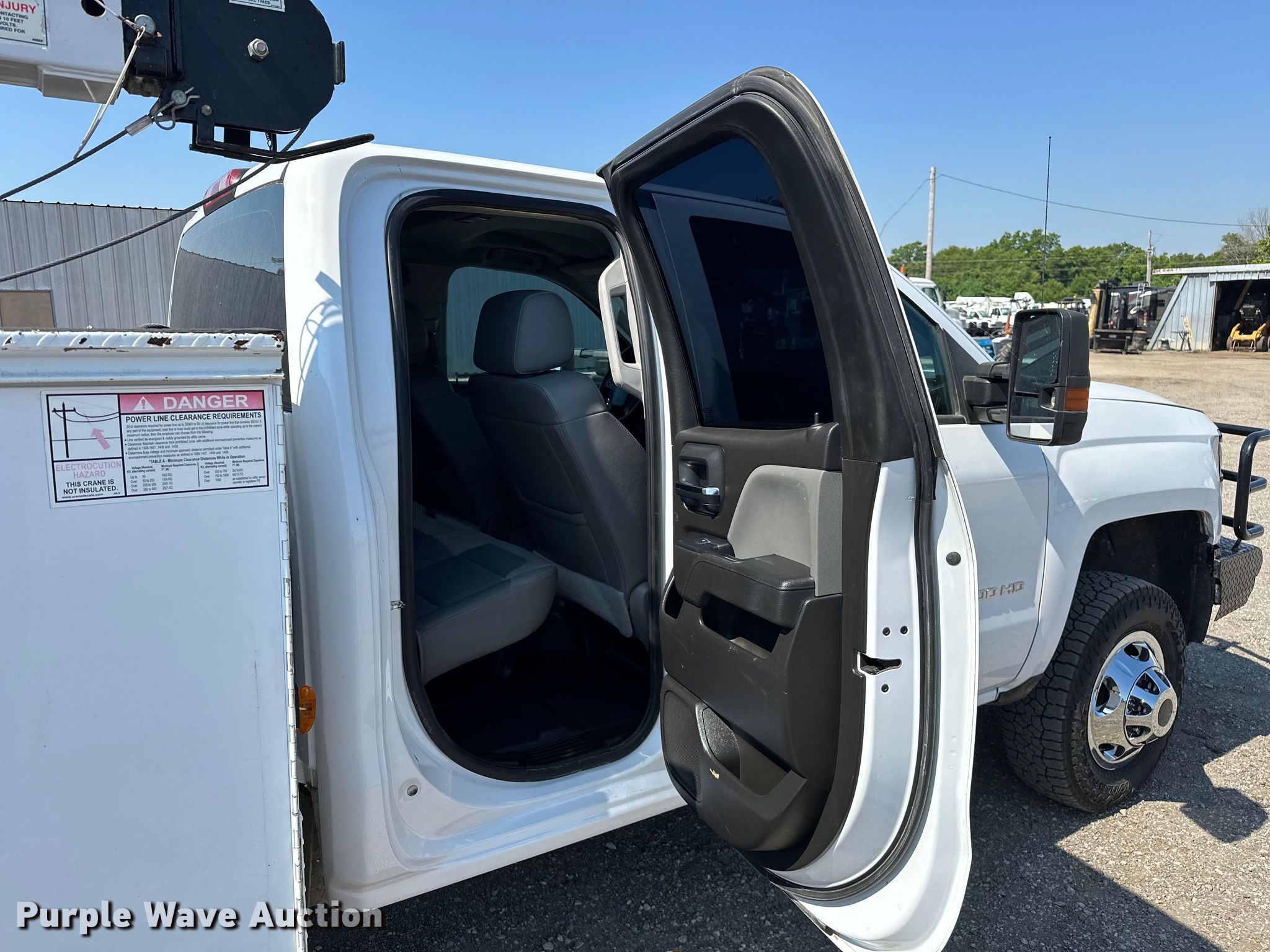 2016 Chevrolet Silverado 3500HD Double Cab utility bed pickup truck. Miles: 174,726 on odometer, VIN: 1GB5KYC89GZ207822. Engine Displacement: 6.6L V8 OHV, Cylinders: 8, Fuel type: Diesel. Transmission Automatic, Four wheel drive. Interior AC, Heat, Heated mirrors, Power windows, Power locks, Cruise control. Features Utility bed Knapheide 696D54J1, 9' L x 96" W, Crane AutoCrane 3203ORX, Maximum boom length: 7' Maximum lift capacity: 3,200 lbs, Remote control, Lift chart. Tires Front: LT245/75R17, Rear: LT265/70R17. Notes Windshield chipped or cracked. Oklahoma title. 15107 North 137th East Avenue. Collinsville, OK 74021