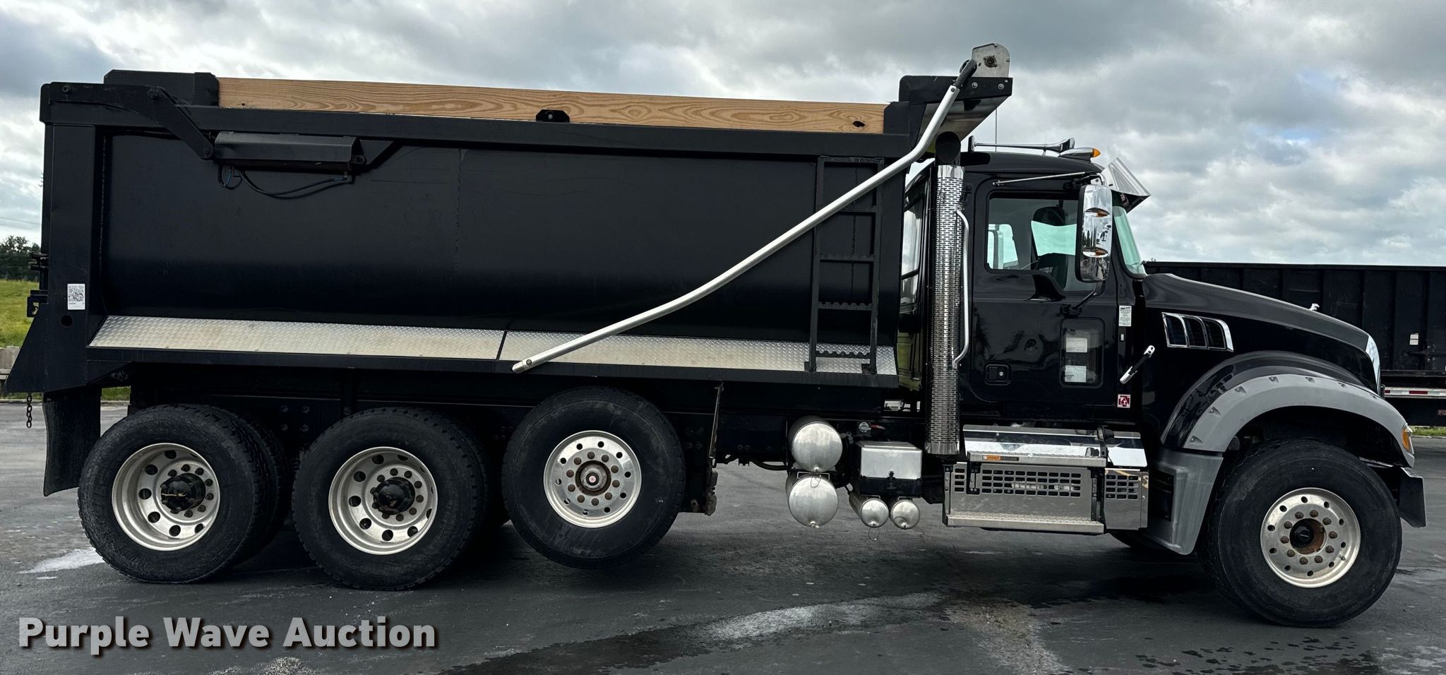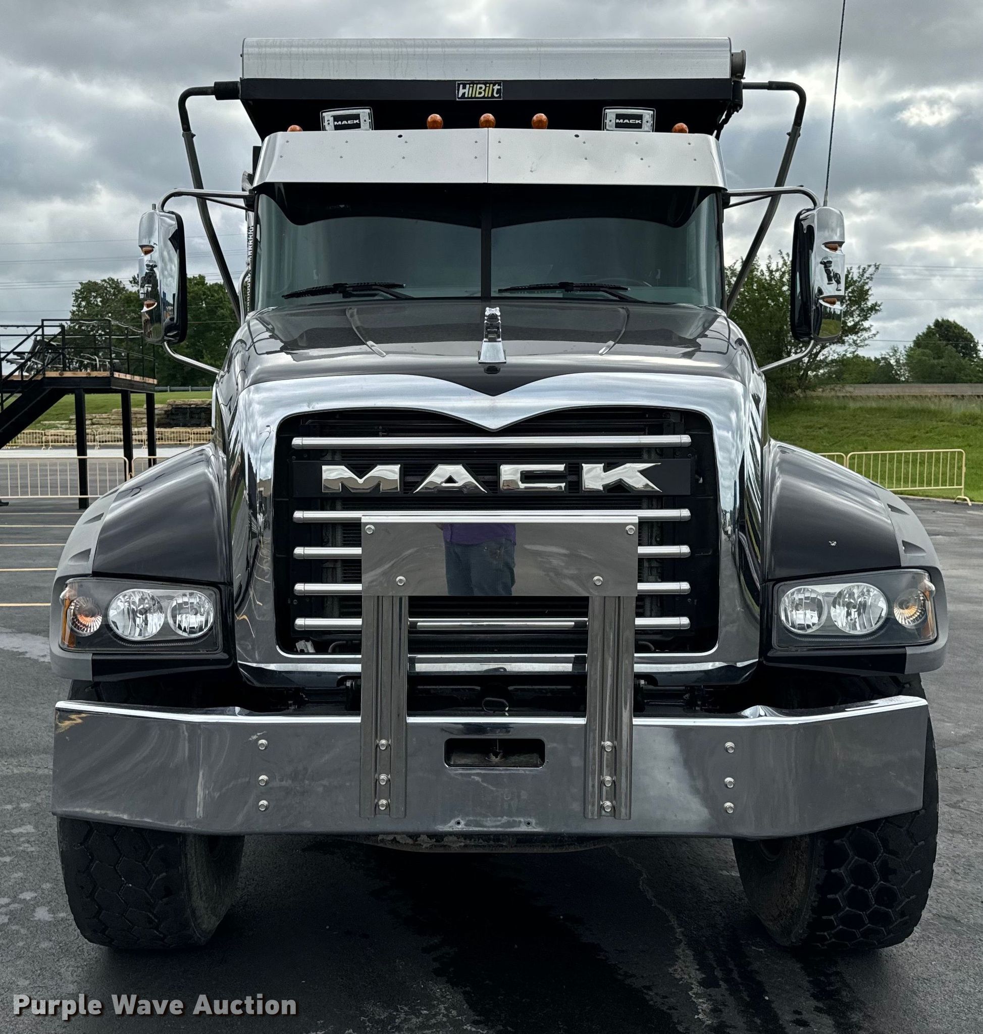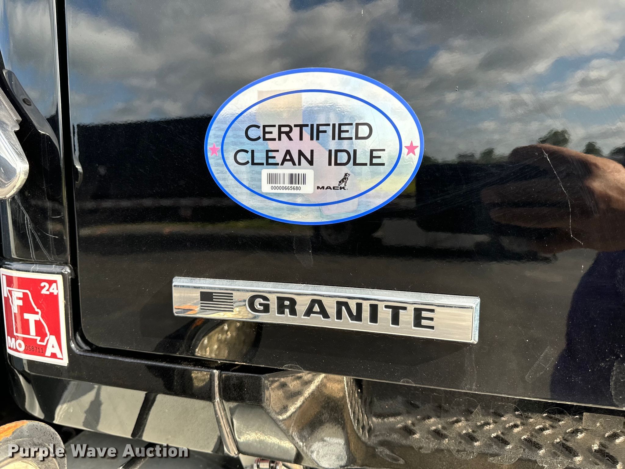 2019 Mack Granite dump truck. Miles: 27,584 on odometer, Hours: 1,219 on meter, VIN: 1M2GR4GCXKM003698. Engine Mack MP8-455M, Serial: 1217352, Displacement: 12.8L, Cylinders: 6, Fuel type: Diesel, HP: 455. Transmission Allison, Automatic. Chassis Axles: Triple, Pusher axle, Differential lock: Full, Suspension: Camelback, Brakes: Air, PTO, GVWR: 70,000 lbs FAWR: 20,000 lbs, IAWR: 23,000 lbs, RAWR: 23,000 lbs, Lift axle GAWR: 20,000 lbs. Interior AC, Heat, Heated mirrors, Power windows, Cruise control. Features Dump bed Hilark 175/16MG, 16' 10" L x 96" W, Side height: 60", Side board height: 8", Bed type: Steel, Barrel, Roll tarp, Ram: Single, End gate: Air operated. Tires Front: 425/65R22.5, Rear: 11R24.5, Lift axle: 425/65R22.5. Missouri title. Title distribution may be delayed up to 14 days from verification of funds. Midwest MO Contractors. Richmond, MO 64085
