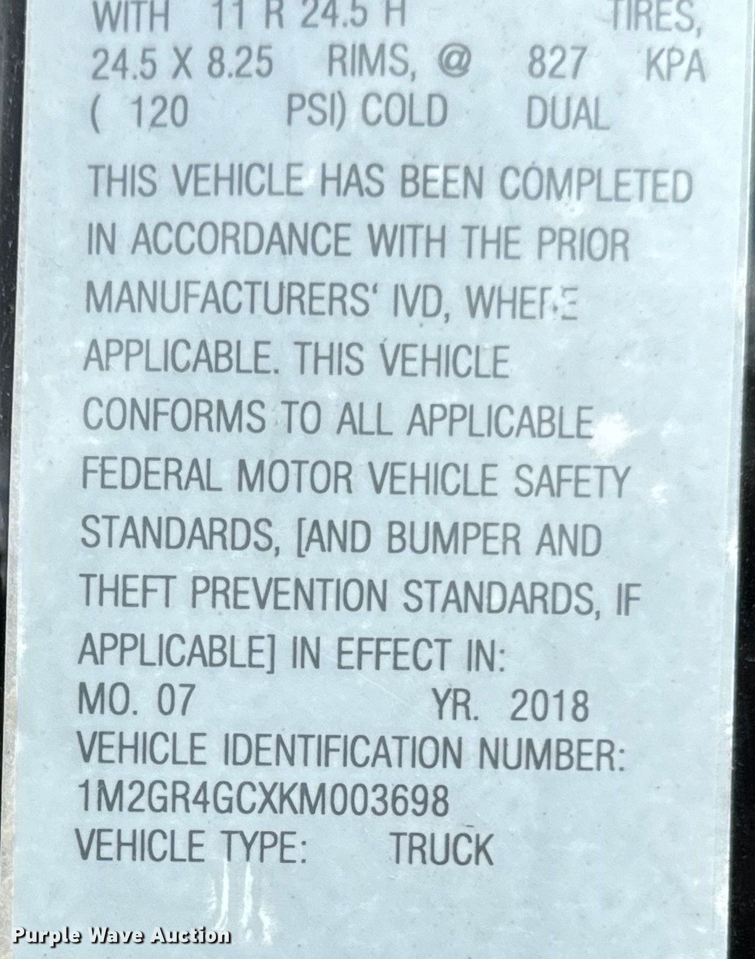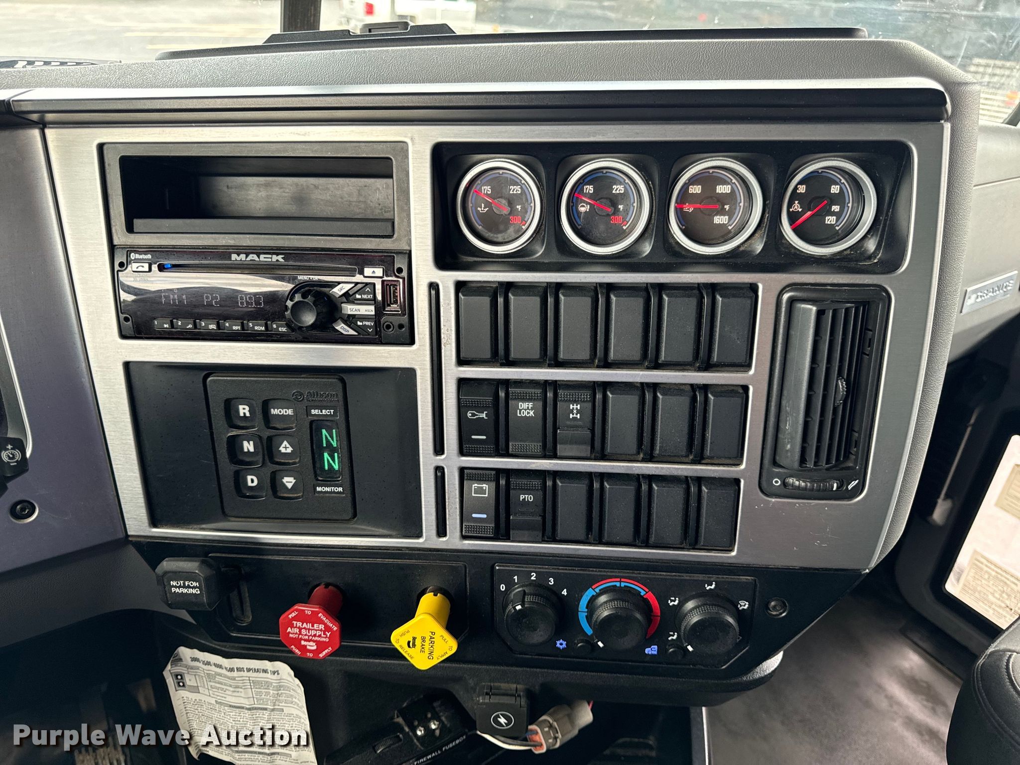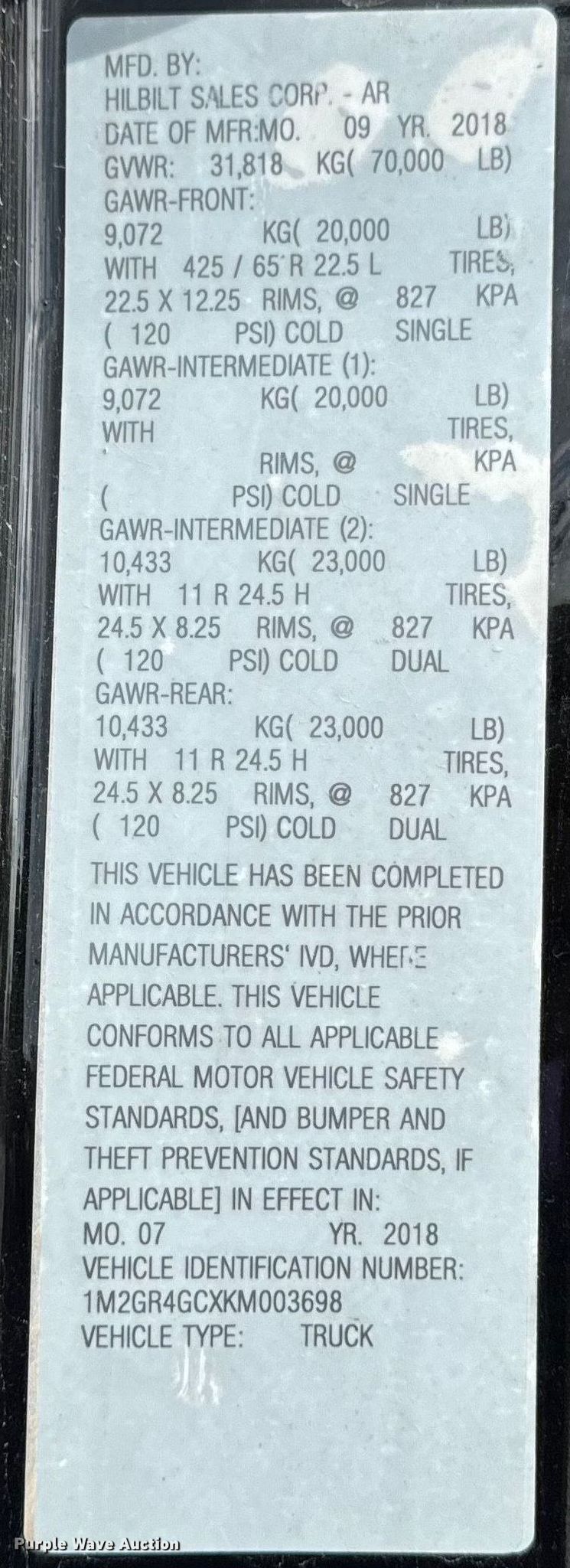 2019 Mack Granite dump truck. Miles: 27,584 on odometer, Hours: 1,219 on meter, VIN: 1M2GR4GCXKM003698. Engine Mack MP8-455M, Serial: 1217352, Displacement: 12.8L, Cylinders: 6, Fuel type: Diesel, HP: 455. Transmission Allison, Automatic. Chassis Axles: Triple, Pusher axle, Differential lock: Full, Suspension: Camelback, Brakes: Air, PTO, GVWR: 70,000 lbs FAWR: 20,000 lbs, IAWR: 23,000 lbs, RAWR: 23,000 lbs, Lift axle GAWR: 20,000 lbs. Interior AC, Heat, Heated mirrors, Power windows, Cruise control. Features Dump bed Hilark 175/16MG, 16' 10" L x 96" W, Side height: 60", Side board height: 8", Bed type: Steel, Barrel, Roll tarp, Ram: Single, End gate: Air operated. Tires Front: 425/65R22.5, Rear: 11R24.5, Lift axle: 425/65R22.5. Missouri title. Title distribution may be delayed up to 14 days from verification of funds. Midwest MO Contractors. Richmond, MO 64085