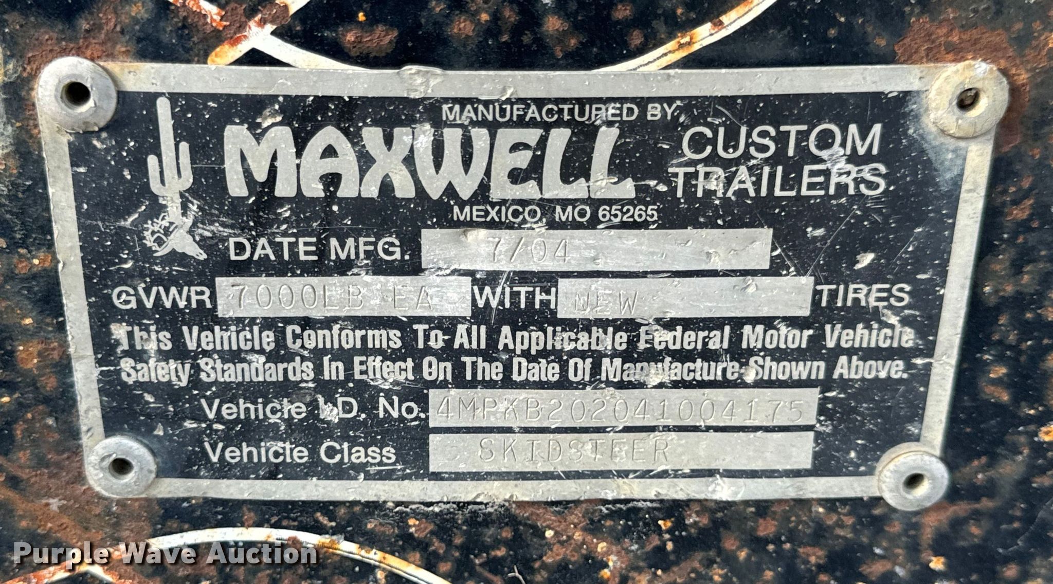 Purple Wave is selling a used Equip. Trailer in Missouri. This item is a 2004 Maxwell equipment trailer with the following: VIN: 4MPKB202041004175