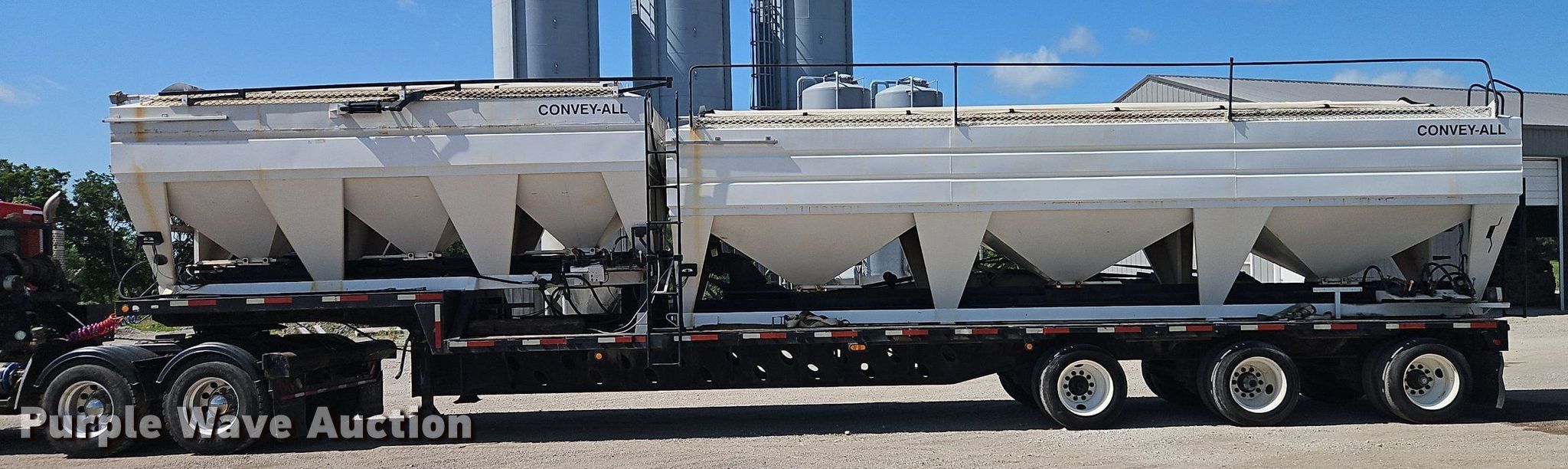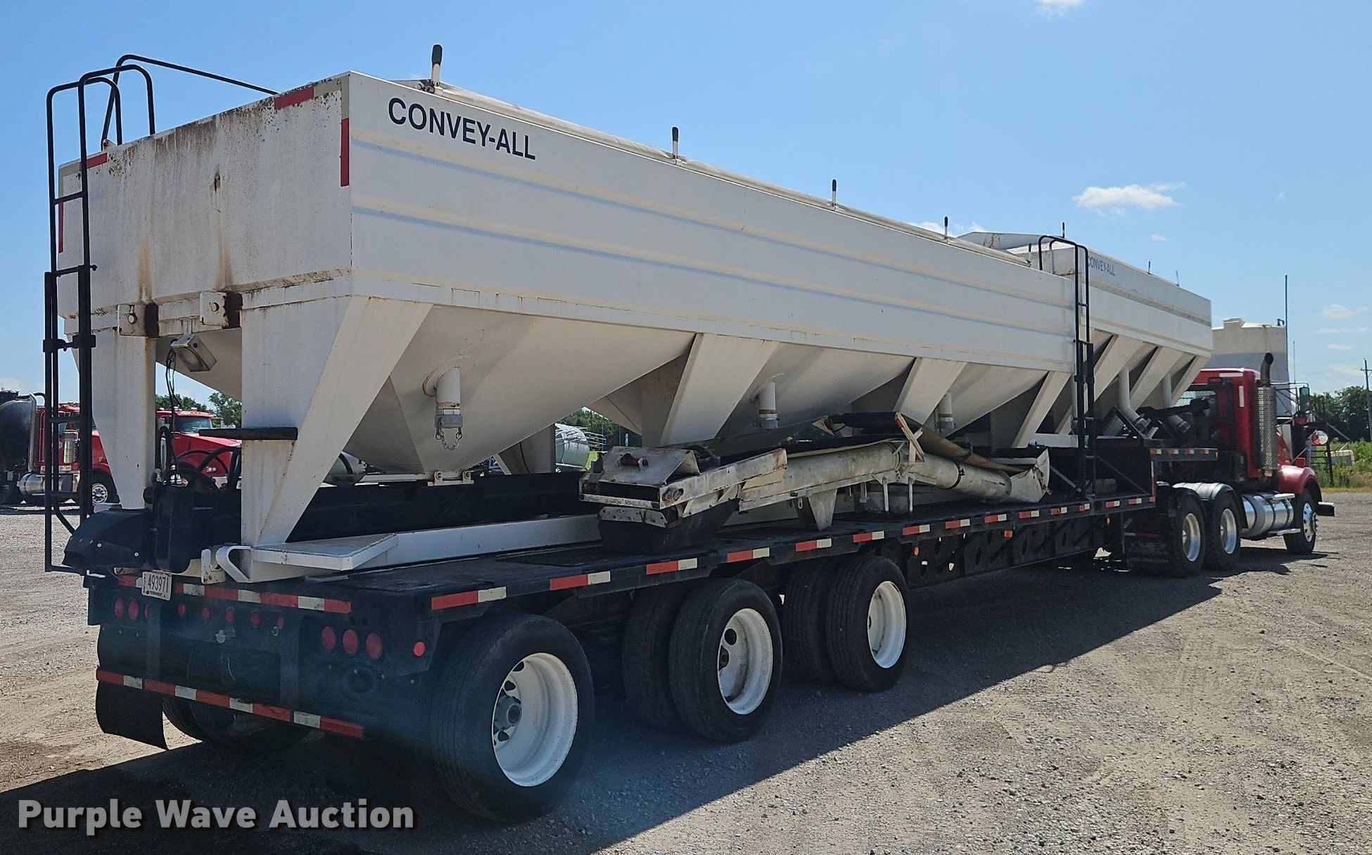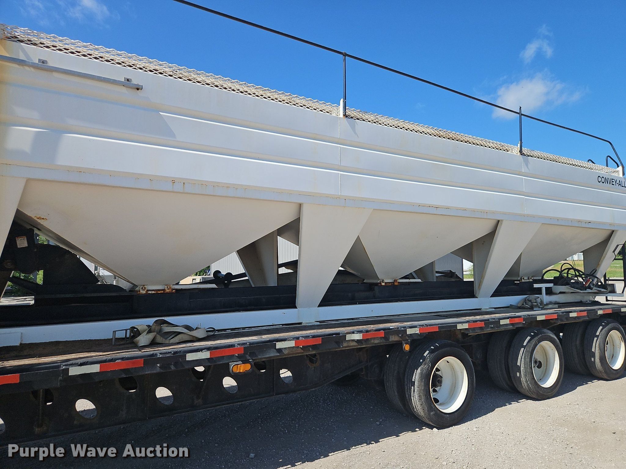 1996 Talbert seed tender trailer. VIN: 40FL04833T1014473. Operational Convey-All seed tender 50' L x 10" W conveyer, Shut-off gate: Hydraulic, Compartments: 6, Roll tarp. Trailer 50' L x 102" W, Landing gear: Dual, Suspension: Air, Axles: Triple, Tire size: 255/70R22.5. Notes Previously used to haul sand, Semi truck not included. Kansas title. Title distribution may be delayed up to 14 days from verification of funds. Garnett, KS 66032