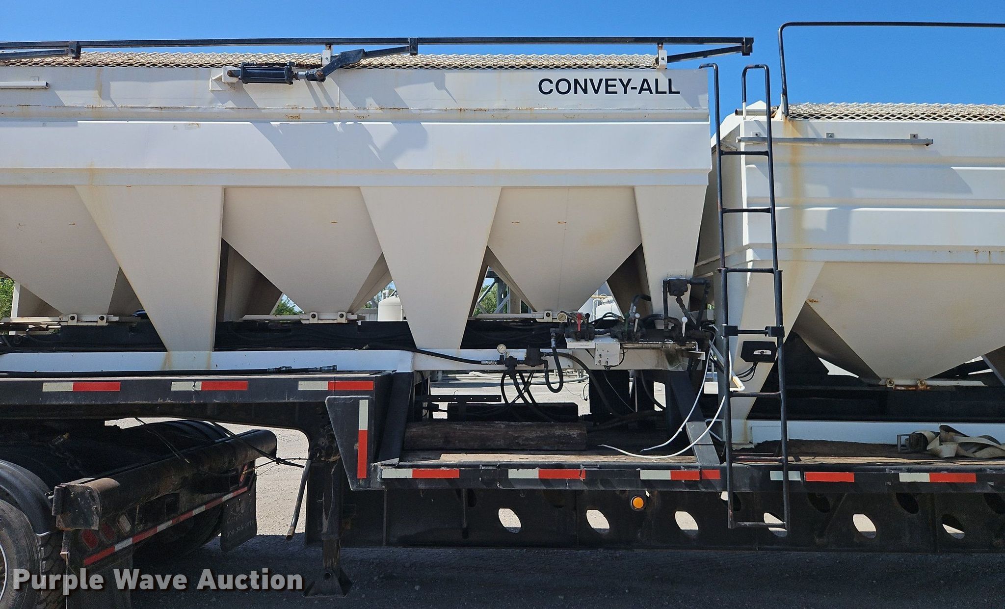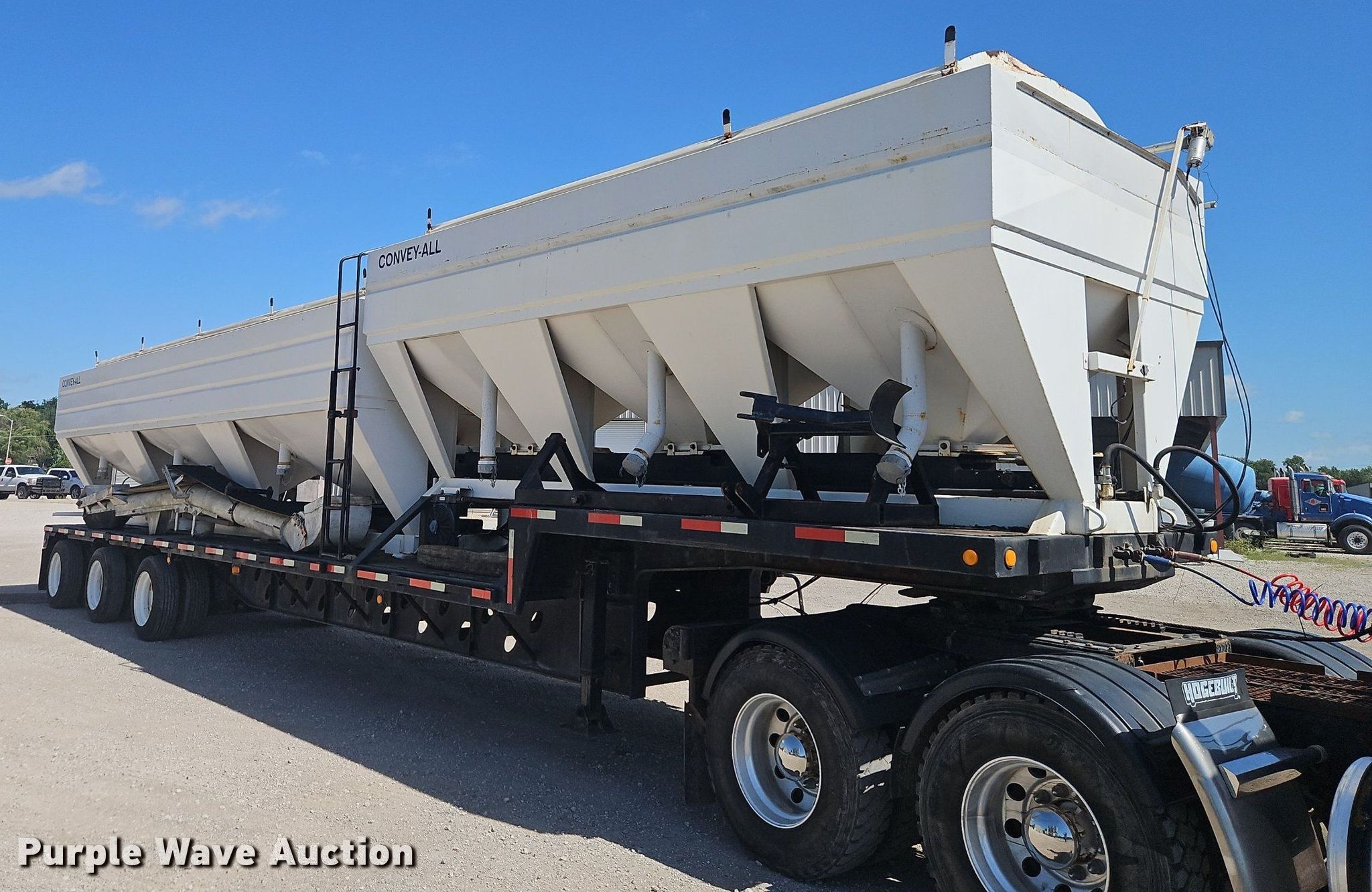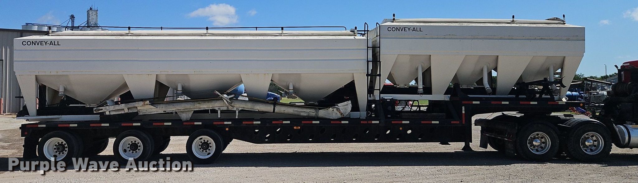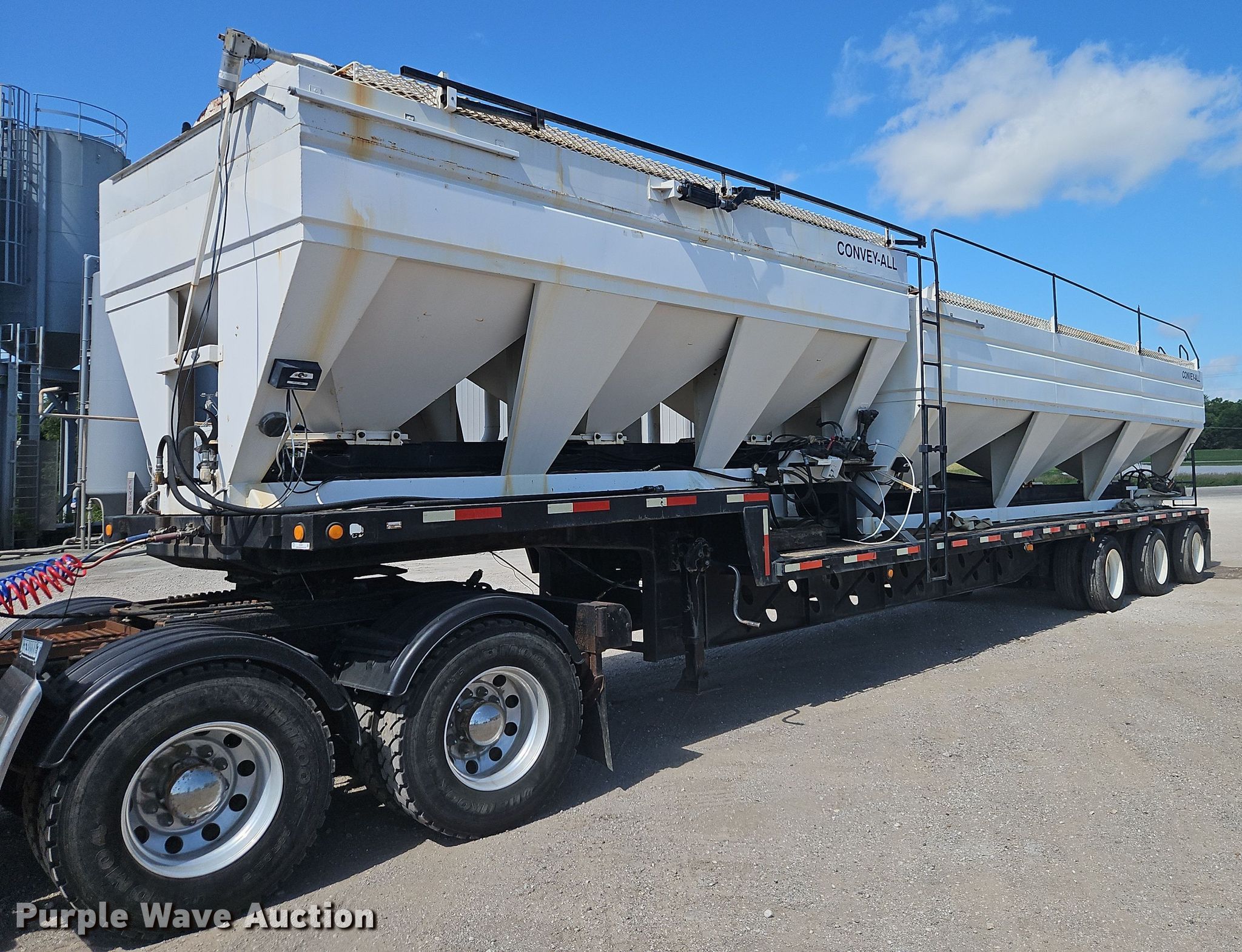 1996 Talbert seed tender trailer. VIN: 40FL04833T1014473. Operational Convey-All seed tender 50' L x 10" W conveyer, Shut-off gate: Hydraulic, Compartments: 6, Roll tarp. Trailer 50' L x 102" W, Landing gear: Dual, Suspension: Air, Axles: Triple, Tire size: 255/70R22.5. Notes Previously used to haul sand, Semi truck not included. Kansas title. Title distribution may be delayed up to 14 days from verification of funds. Garnett, KS 66032